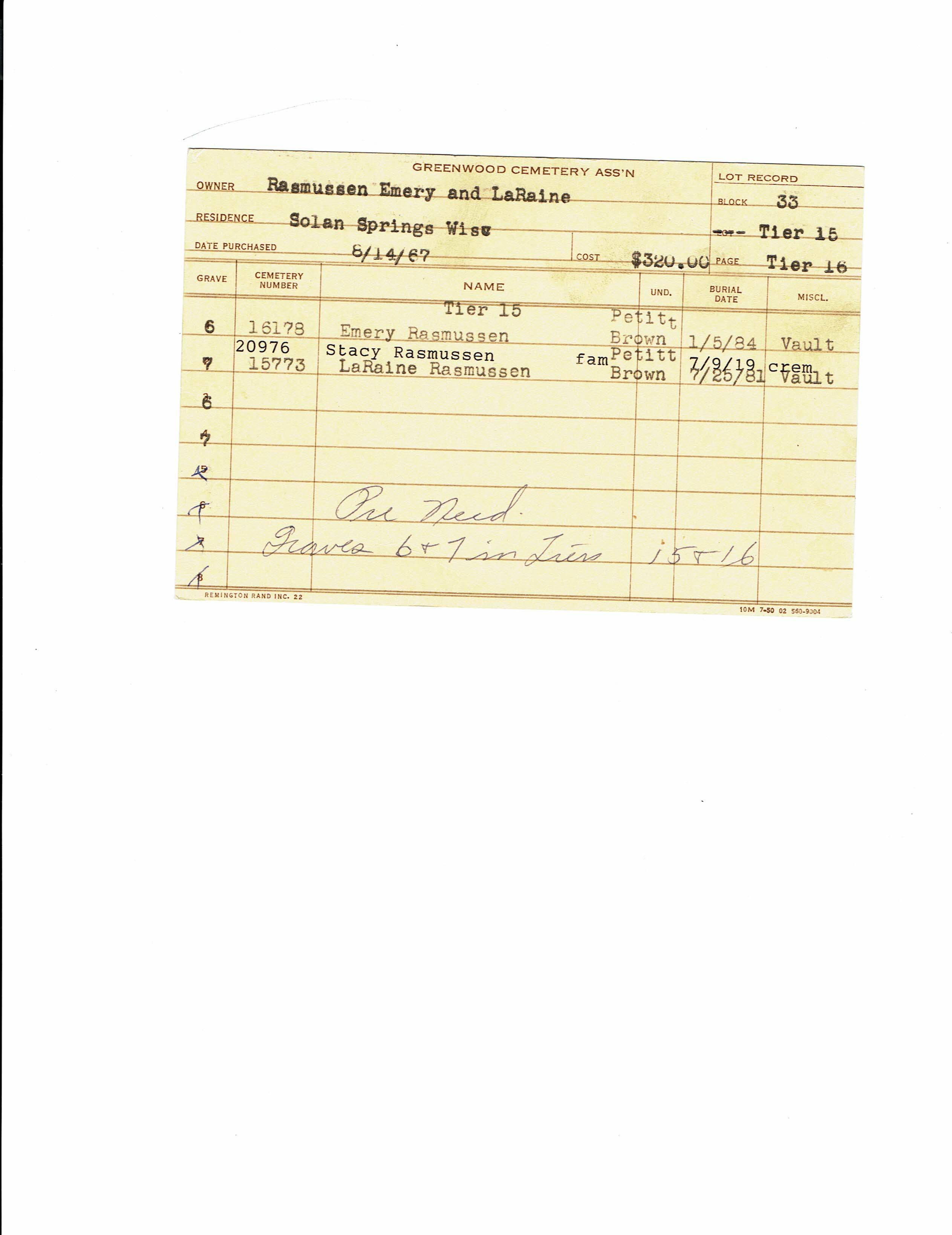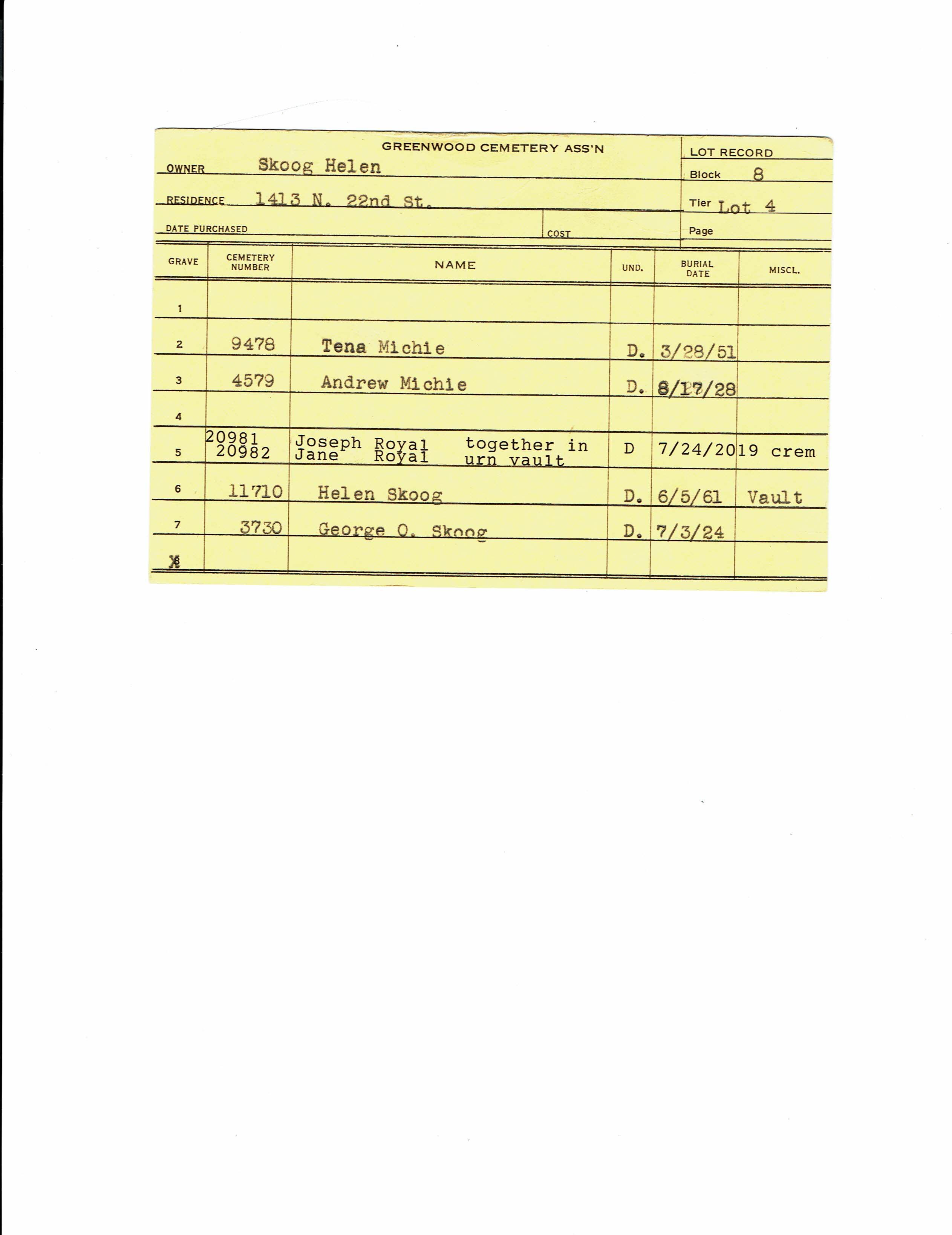 Block 25A, Tier Row D, Lot Unit 3, Grave 4