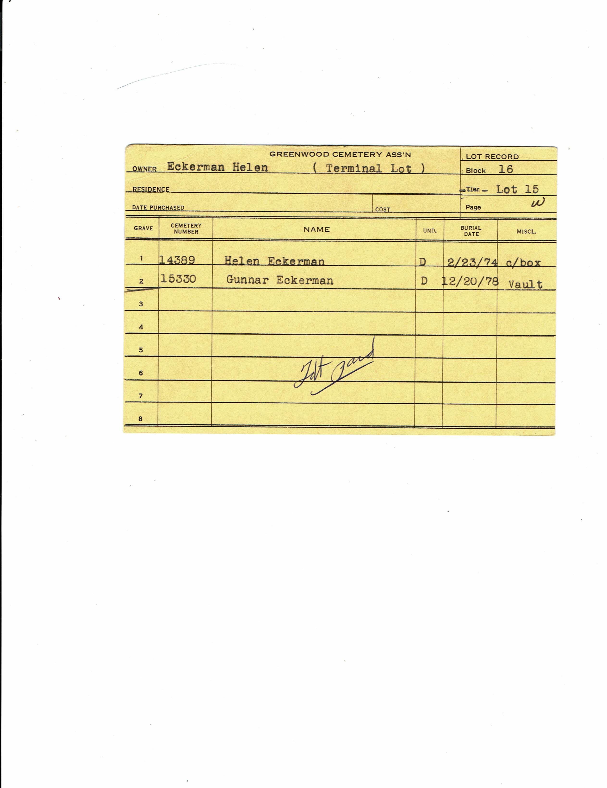 Greenwood Cemetery Association Online Records