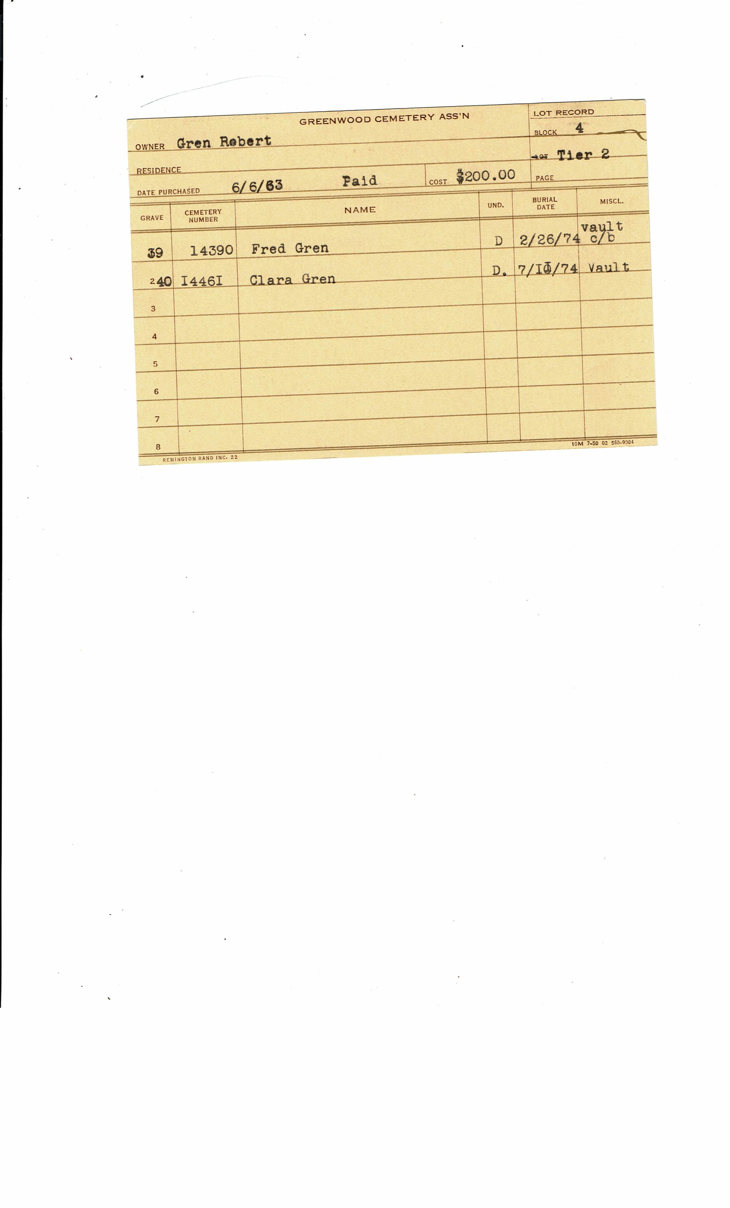 Block 22, Tier 1, Lot 049, Grave 2