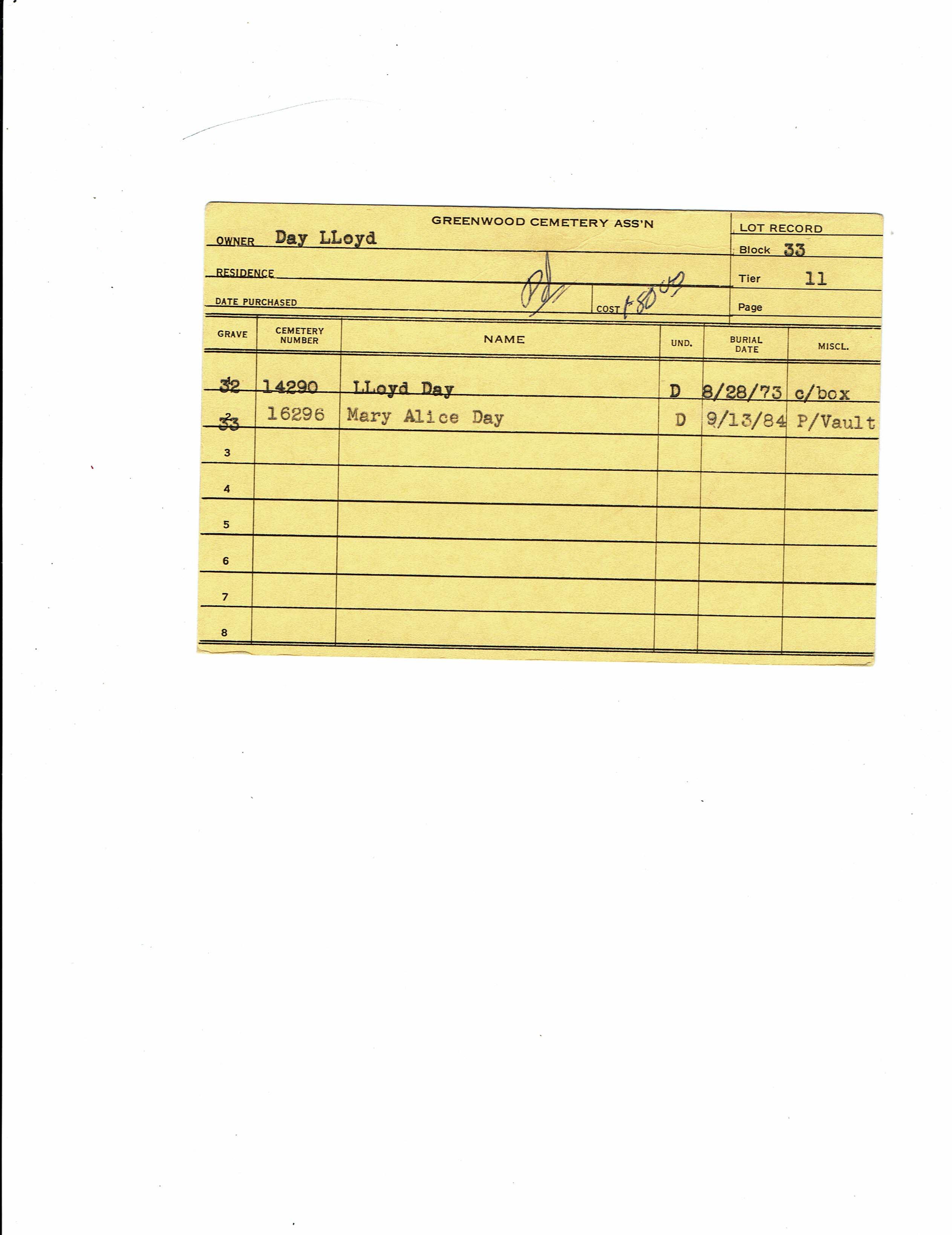Block 33, Tier 10, Lot 1, Grave 48