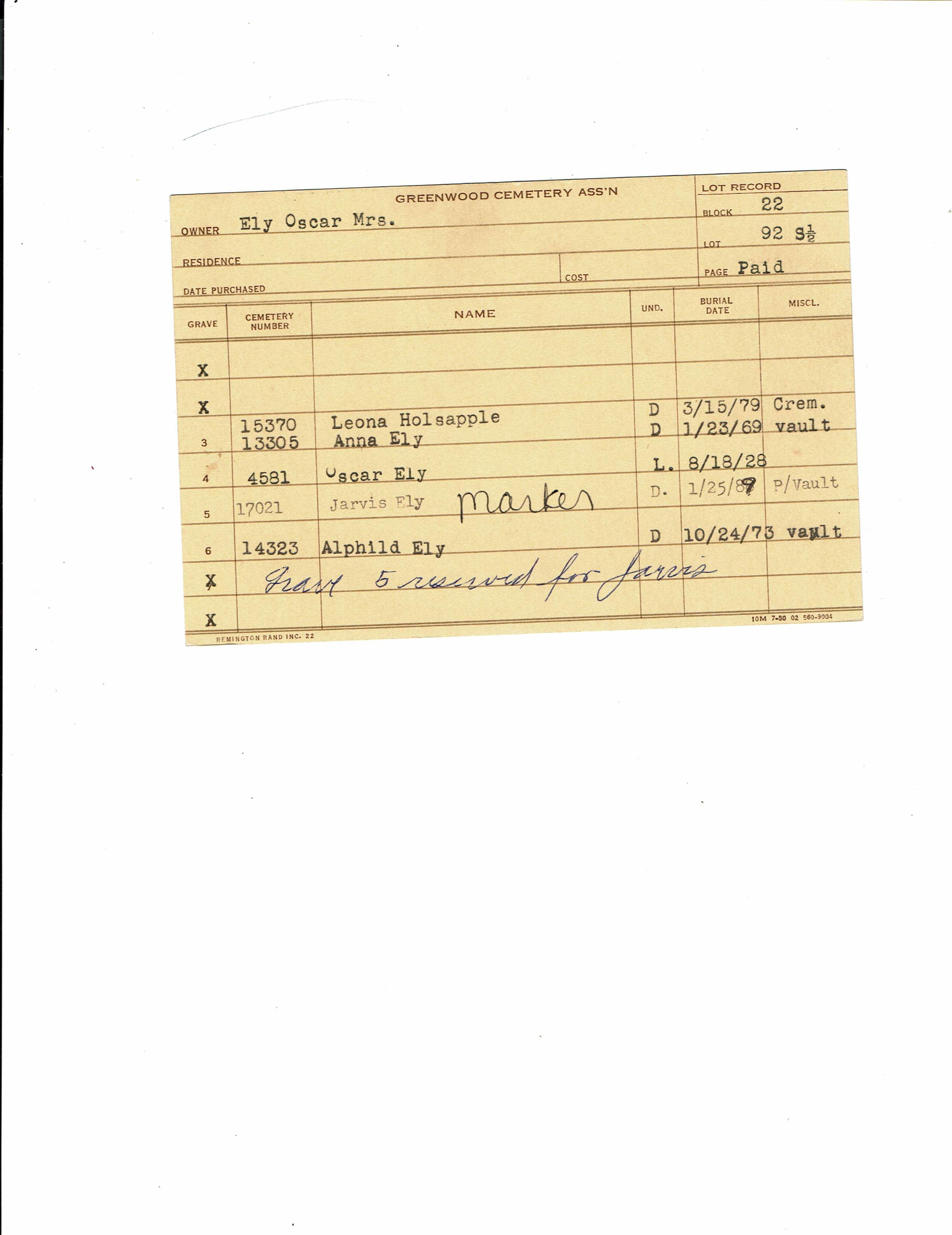 Block 23, Tier 50, Lot 1, Grave 7