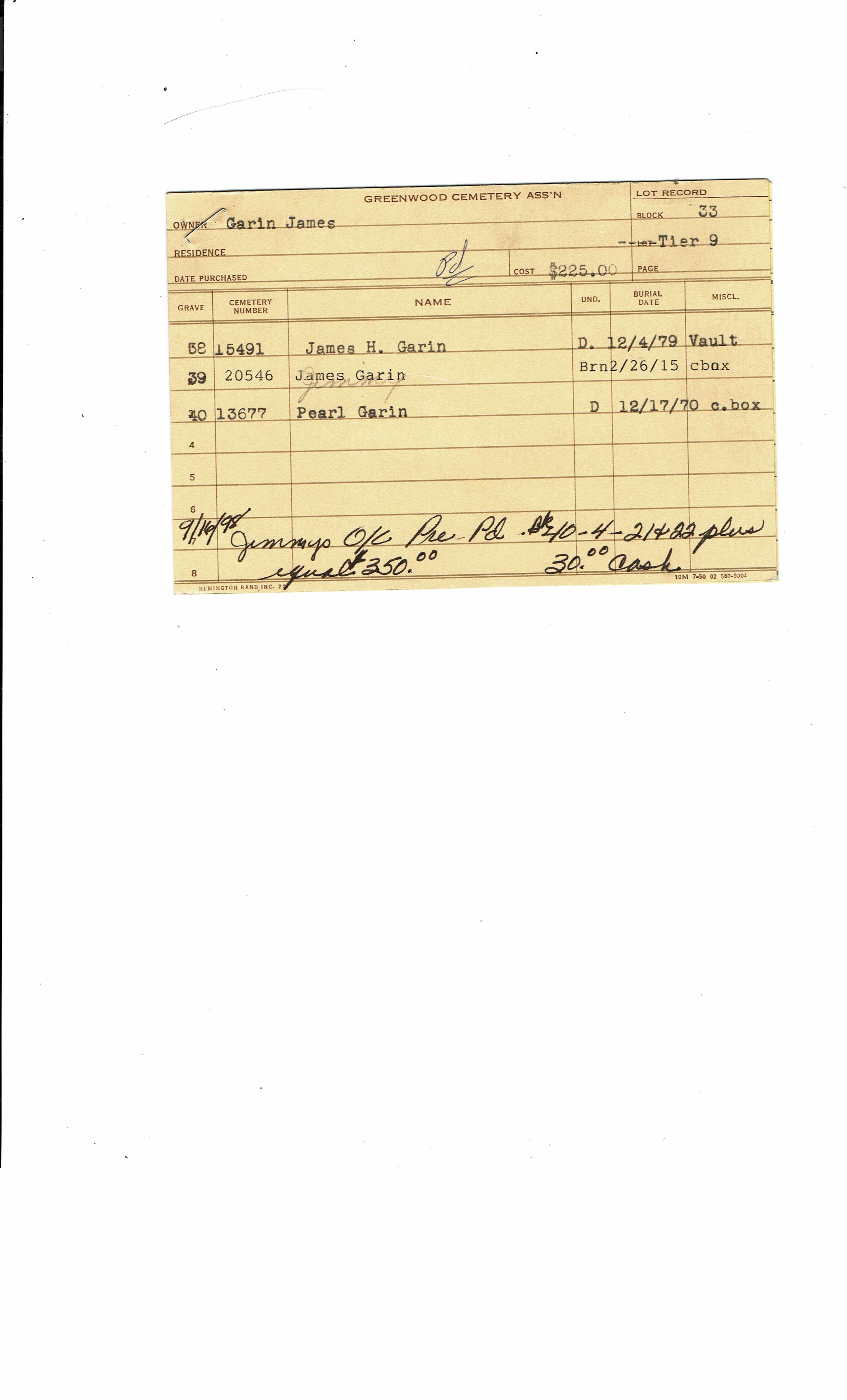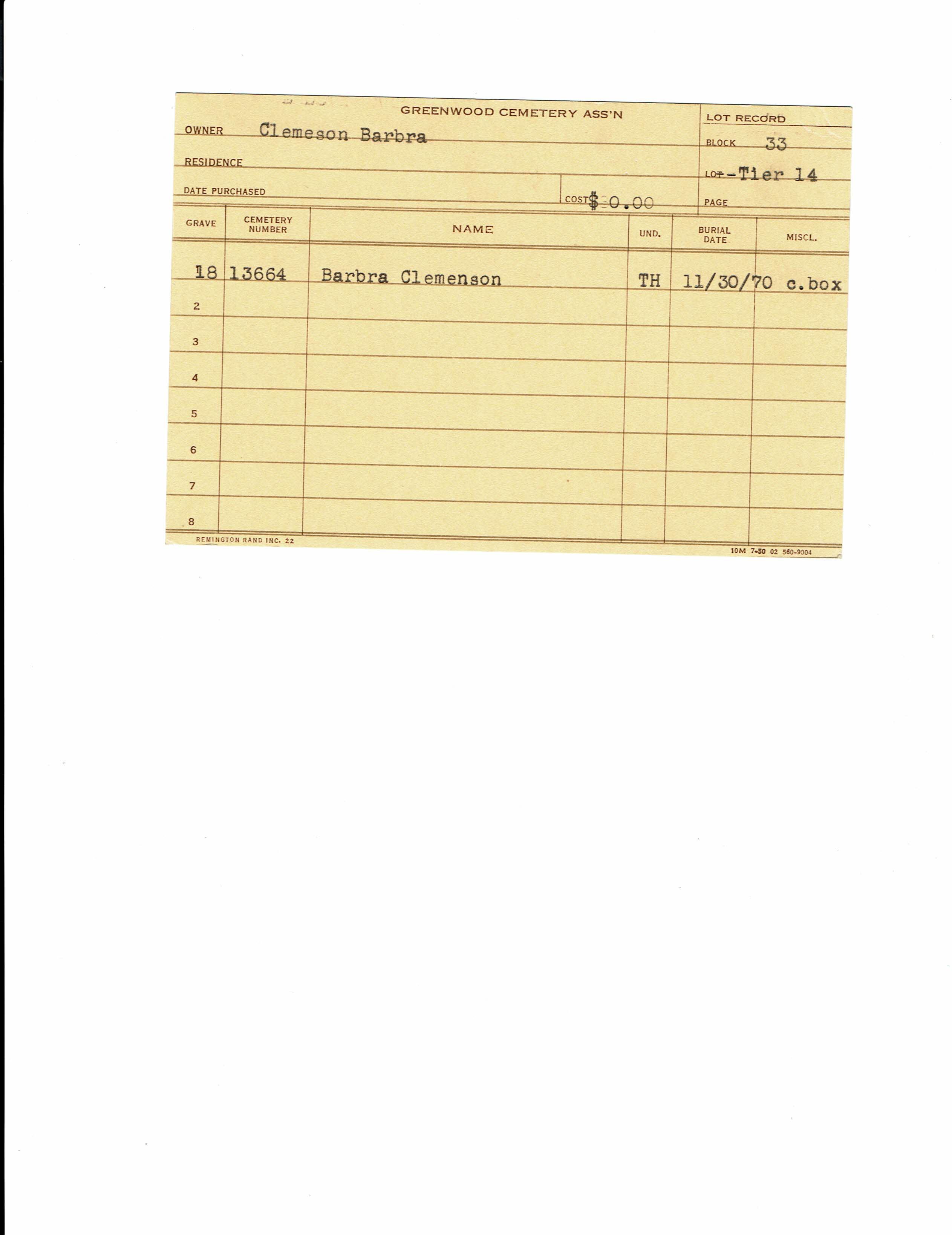 Block 27, Tier 1, Lot 93, Grave 2