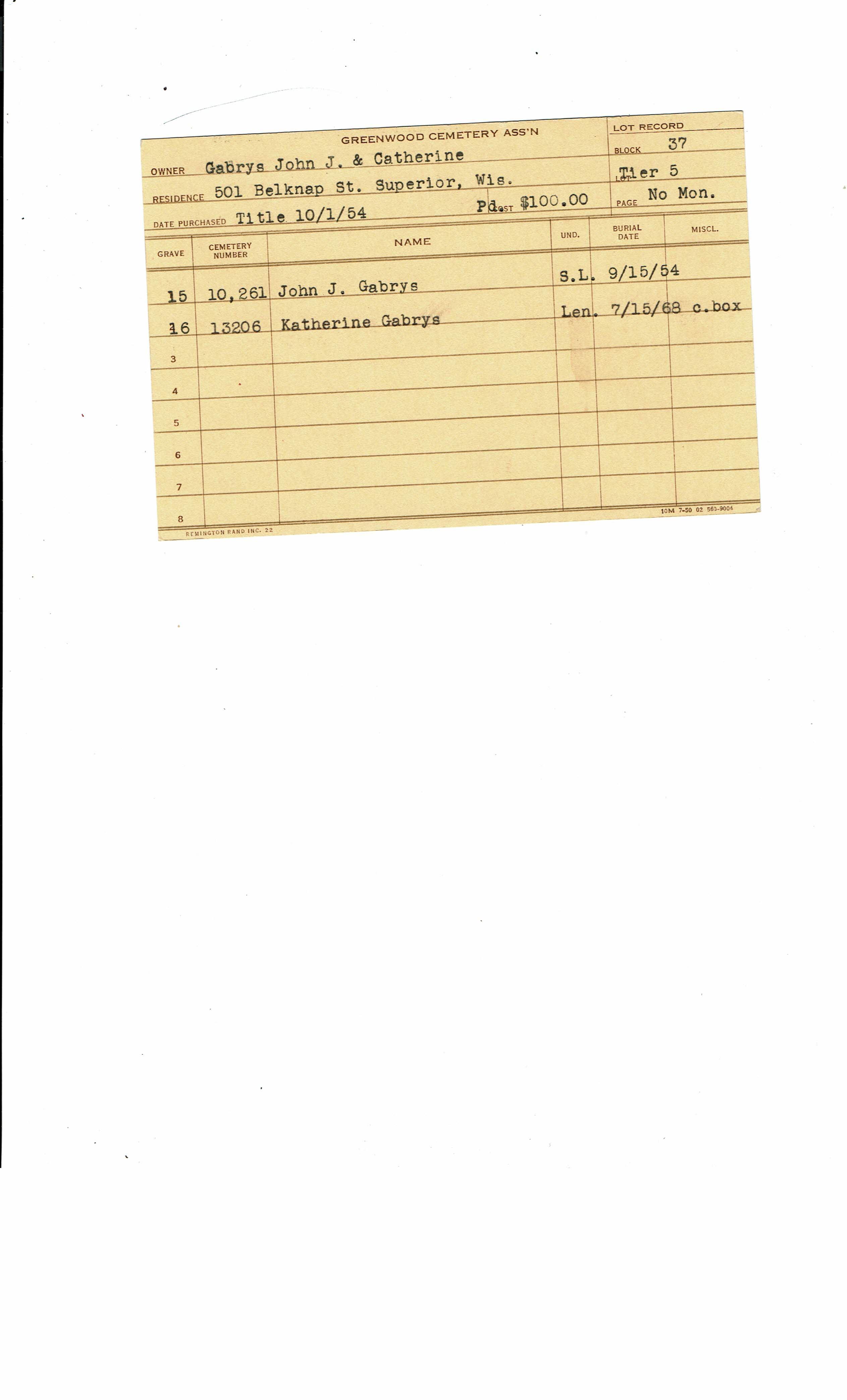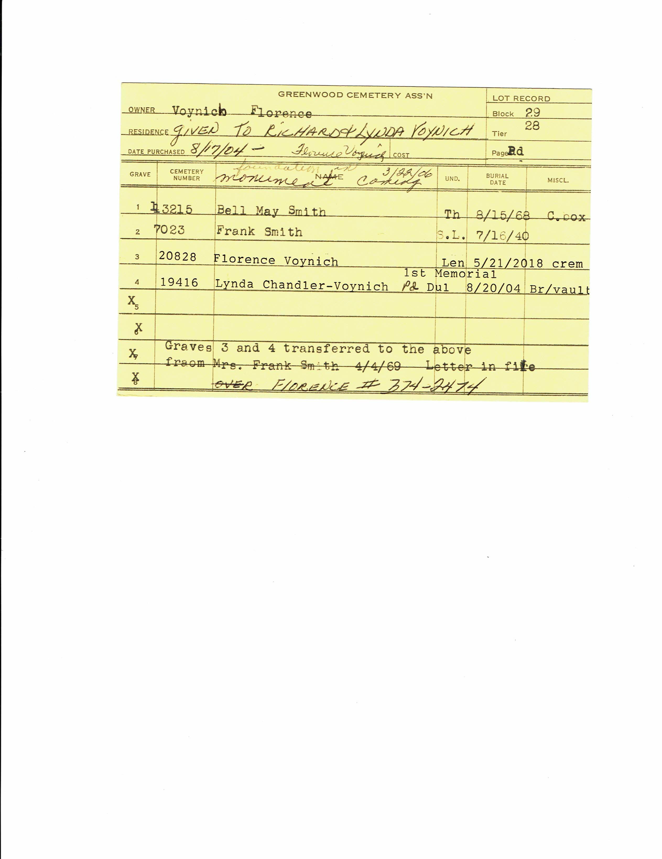 Block 29, Tier 1, Lot 94, Grave 1