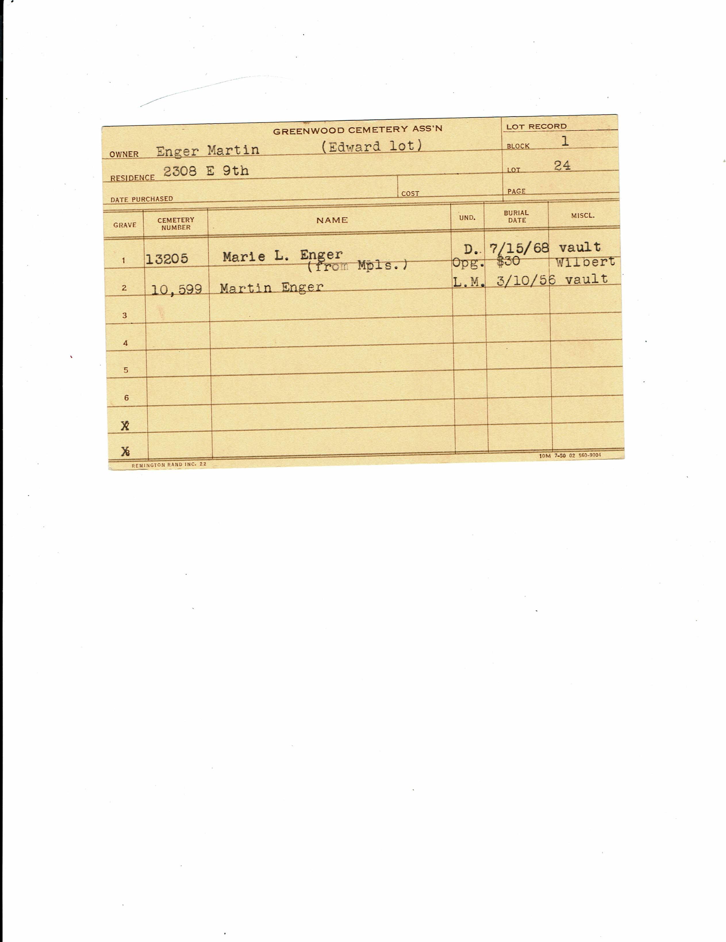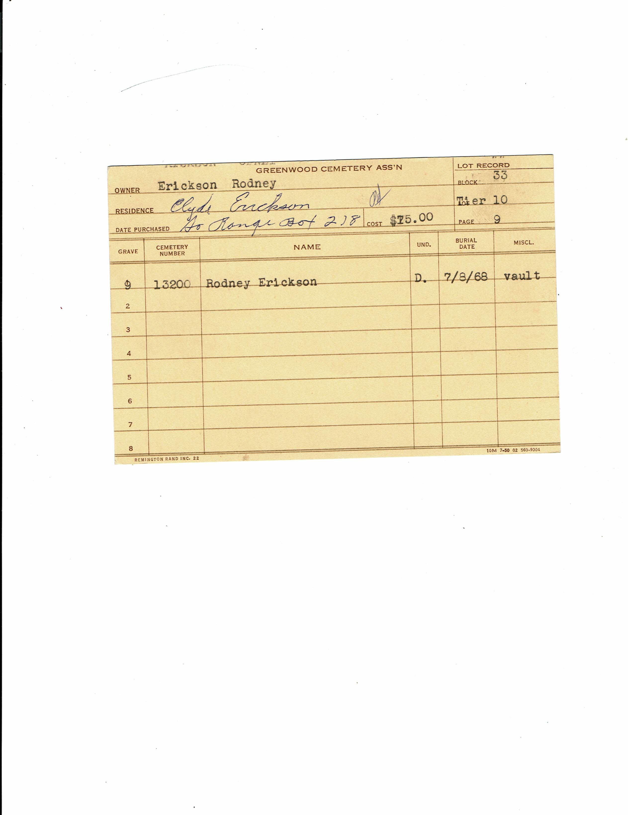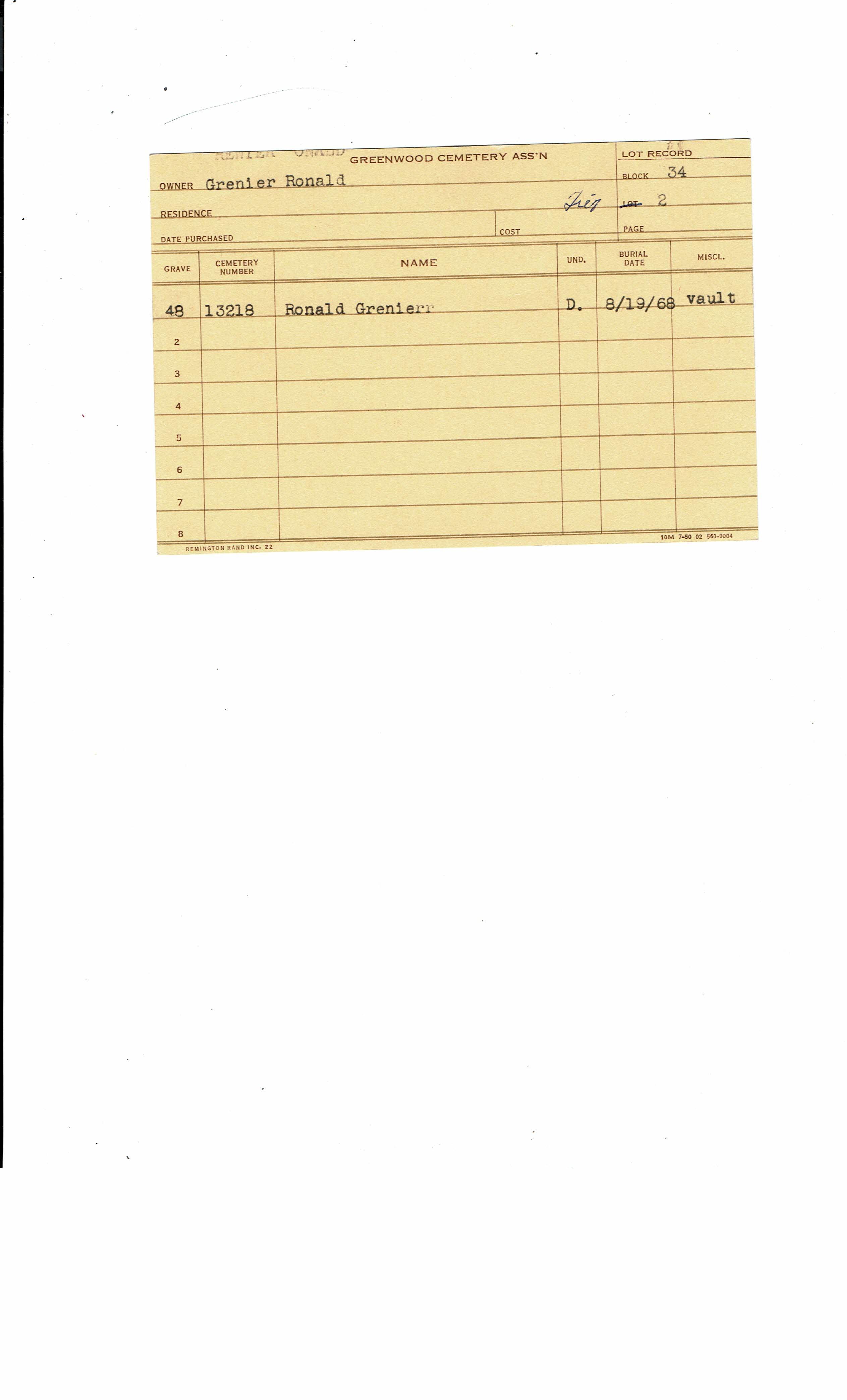 Greenwood Cemetery Association Online Records
