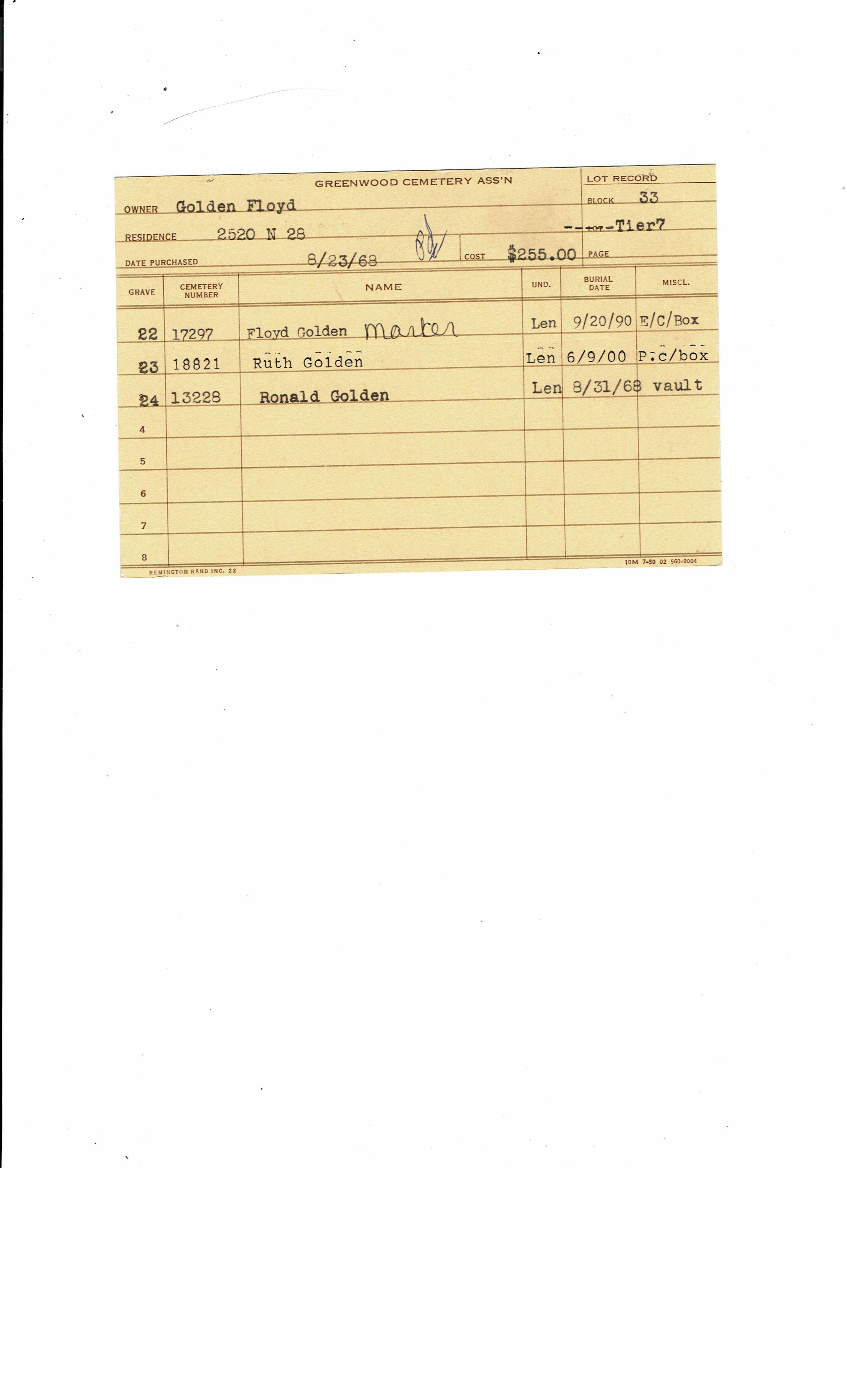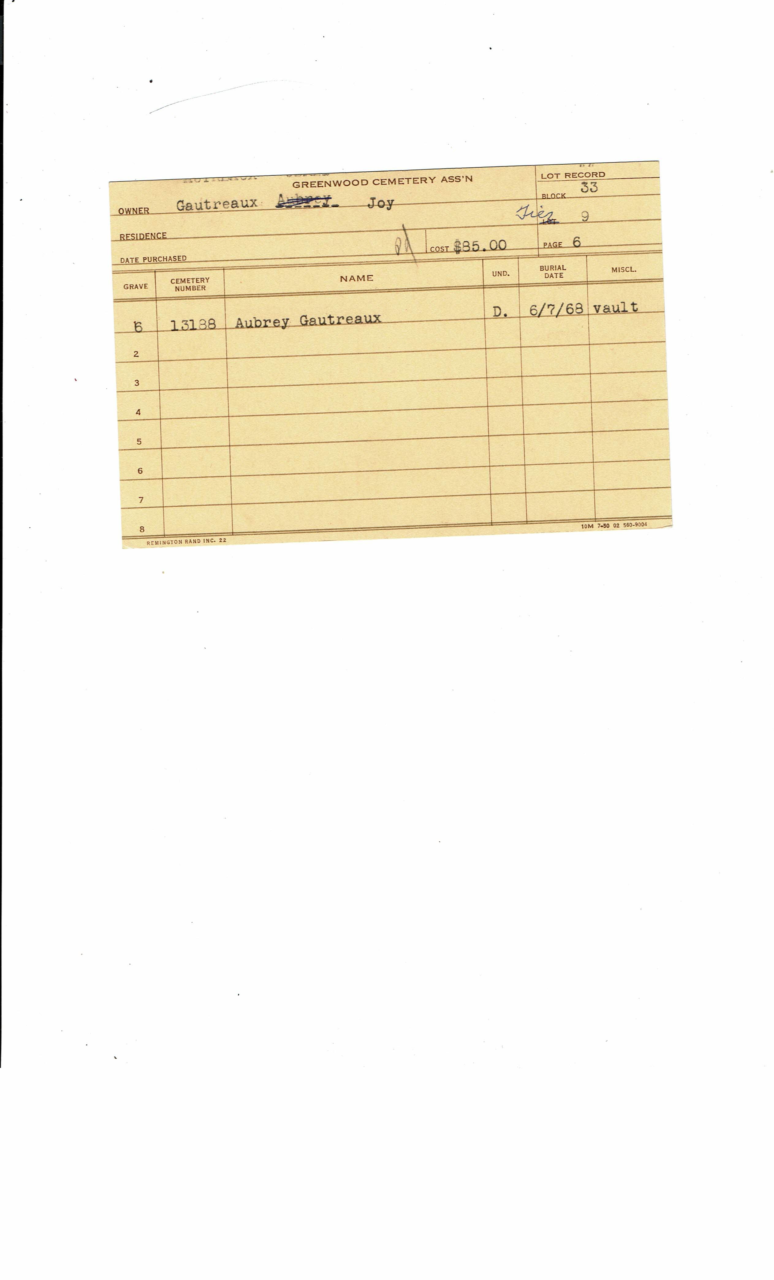 Block 33, Tier 05, Lot 1, Grave 24