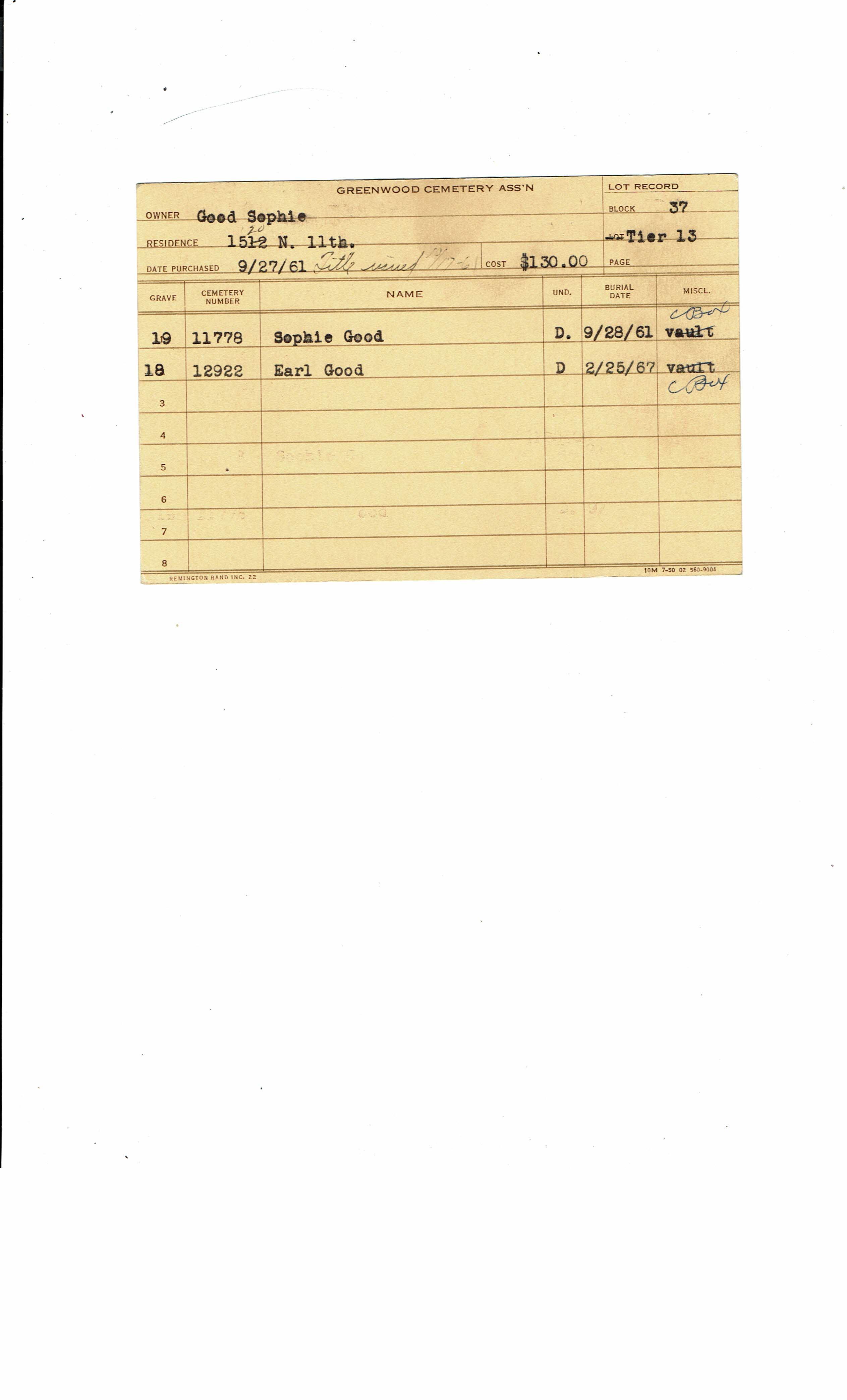 Greenwood Cemetery Association Online Records