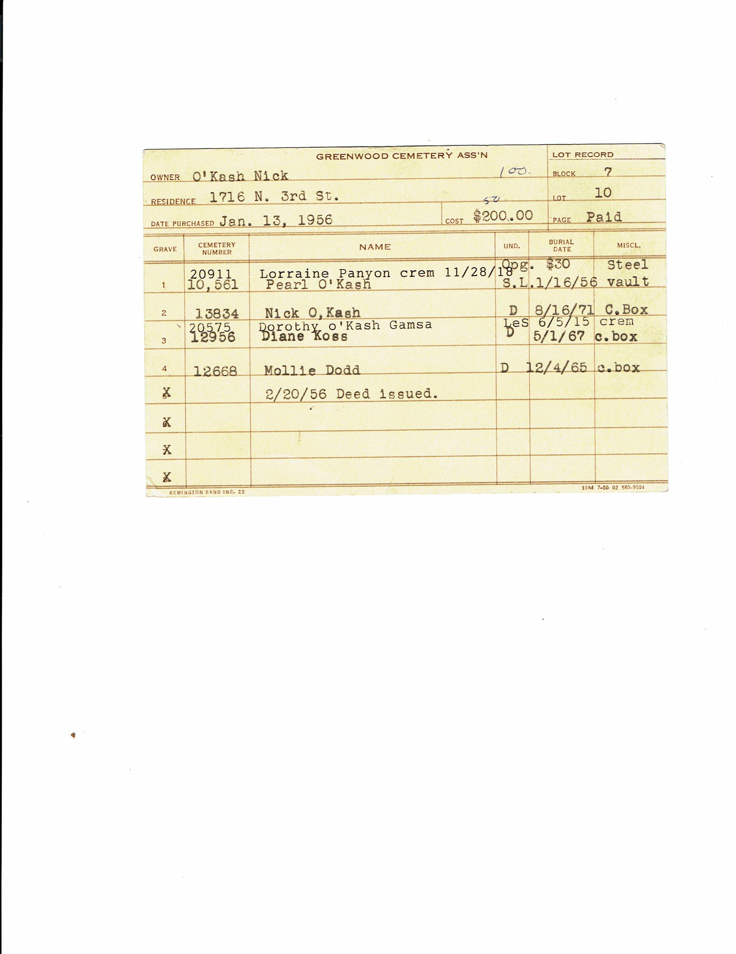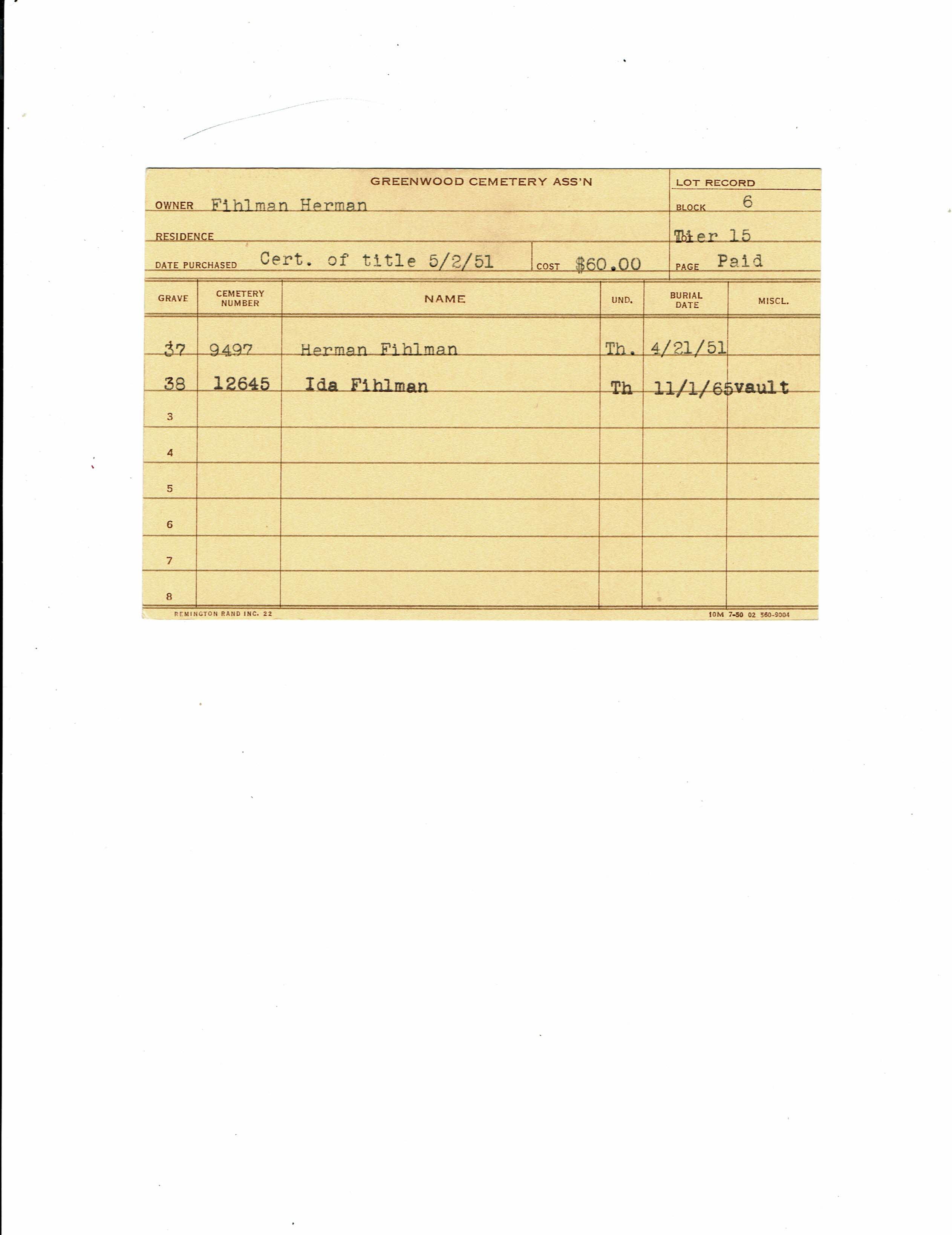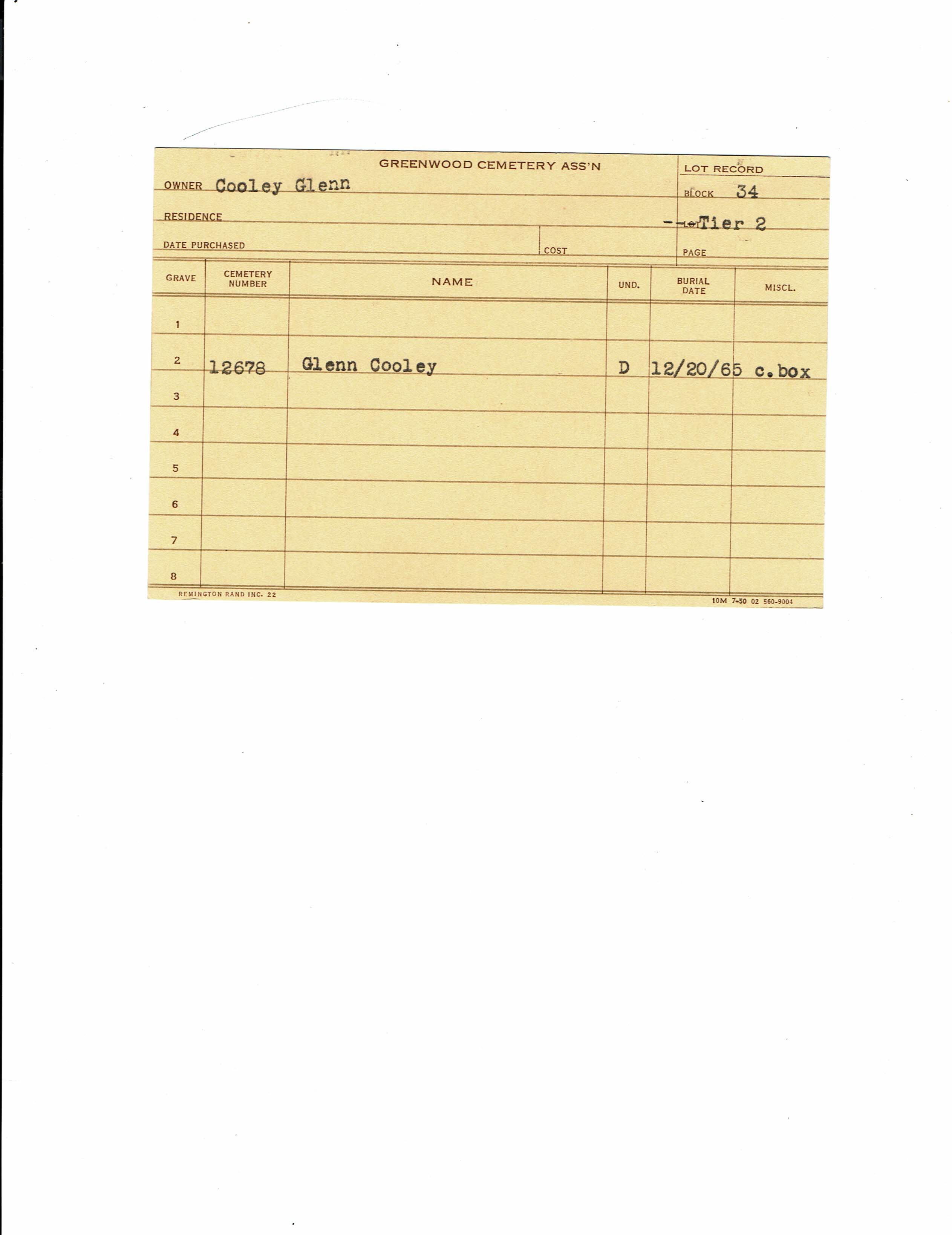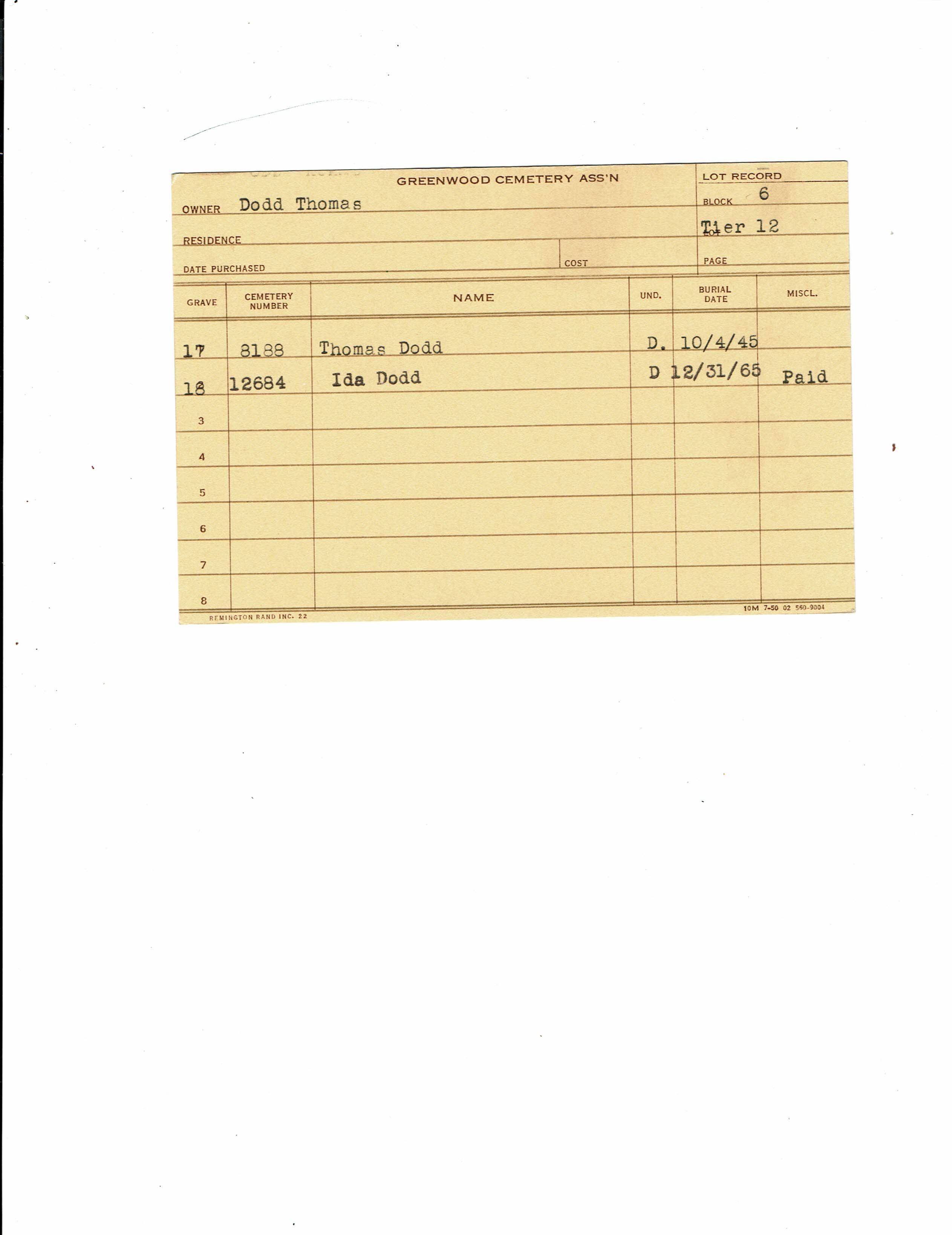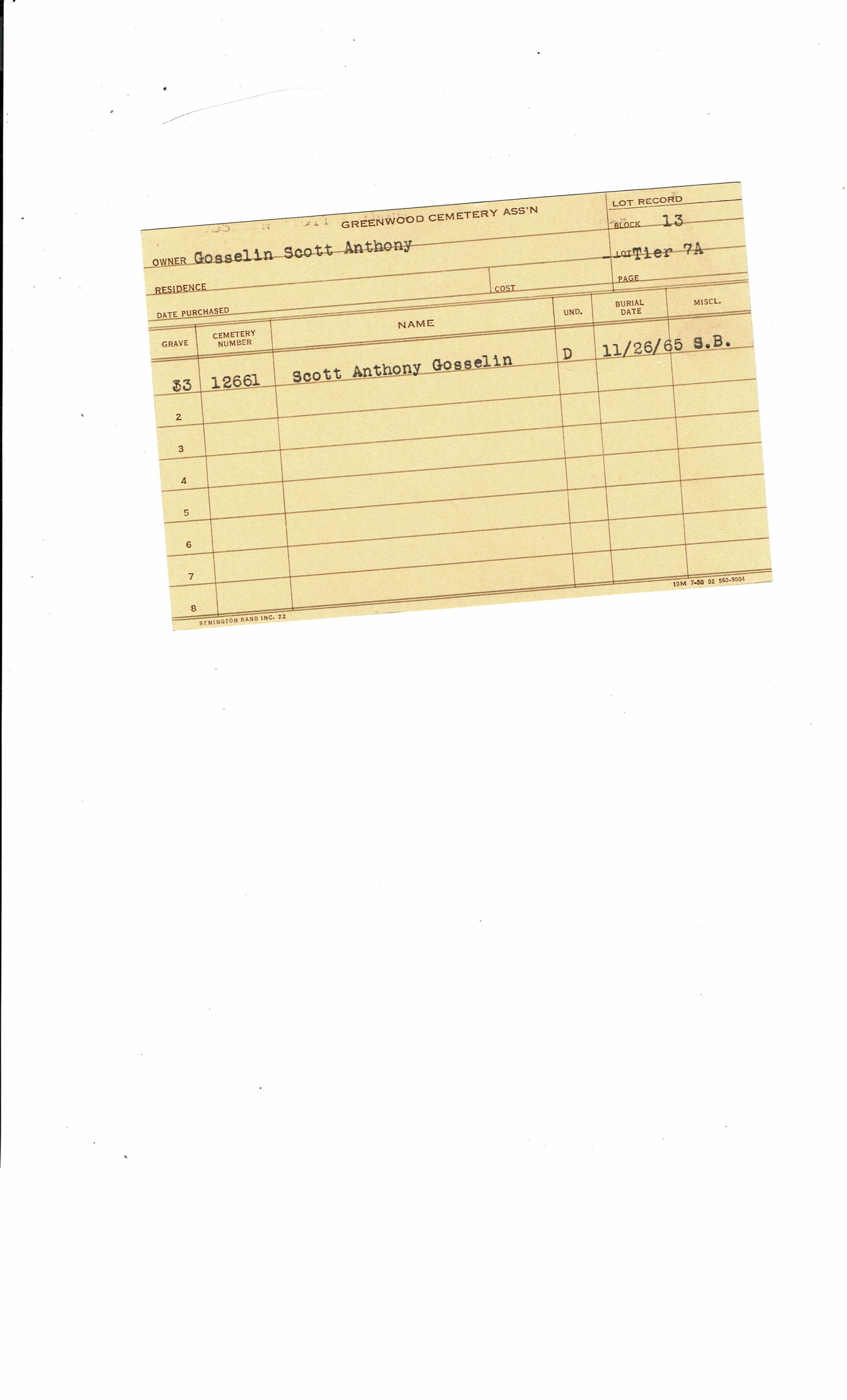 Block 7 Lo, Tier 1, Lot 58, Grave 1