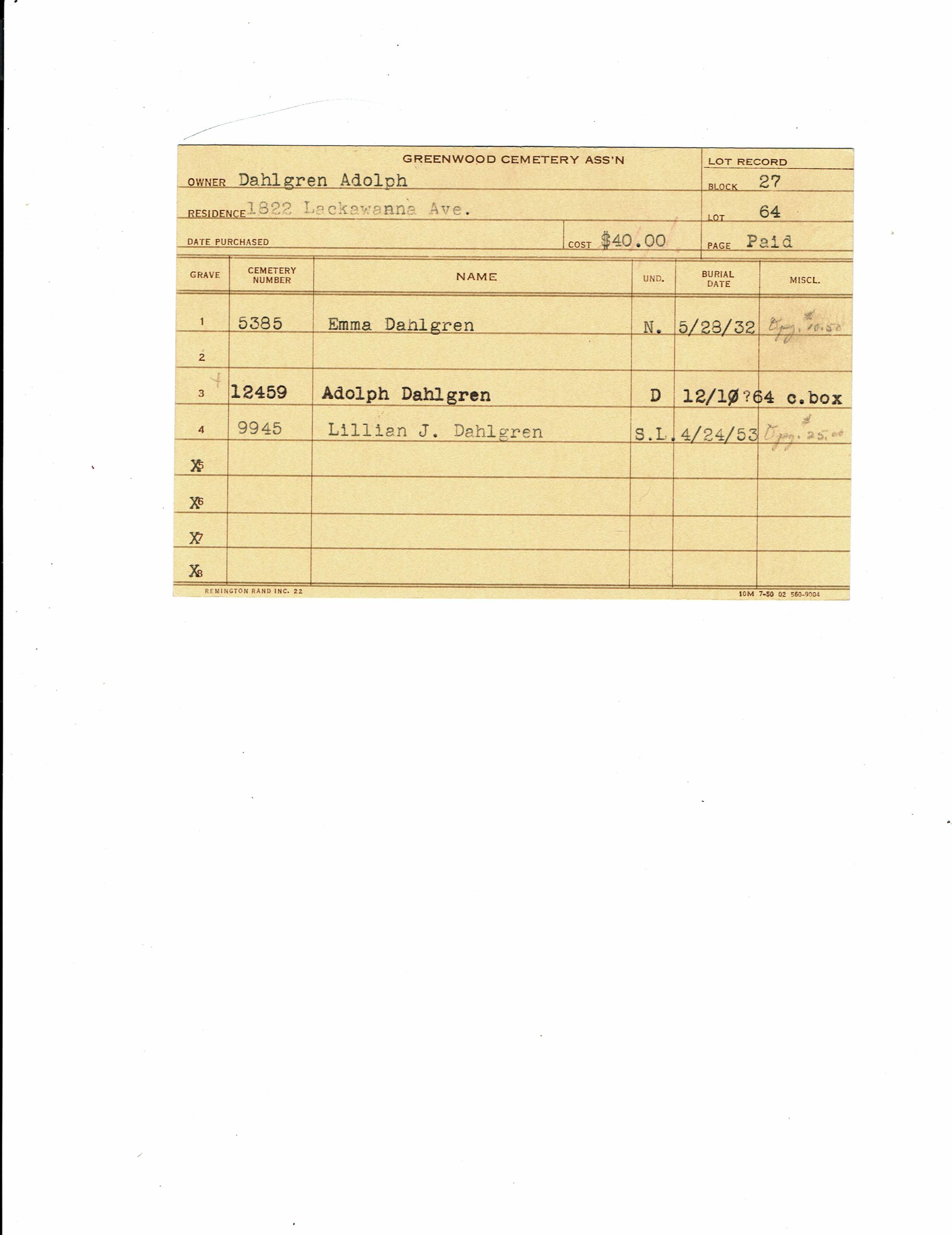 Greenwood Cemetery Association Online Records