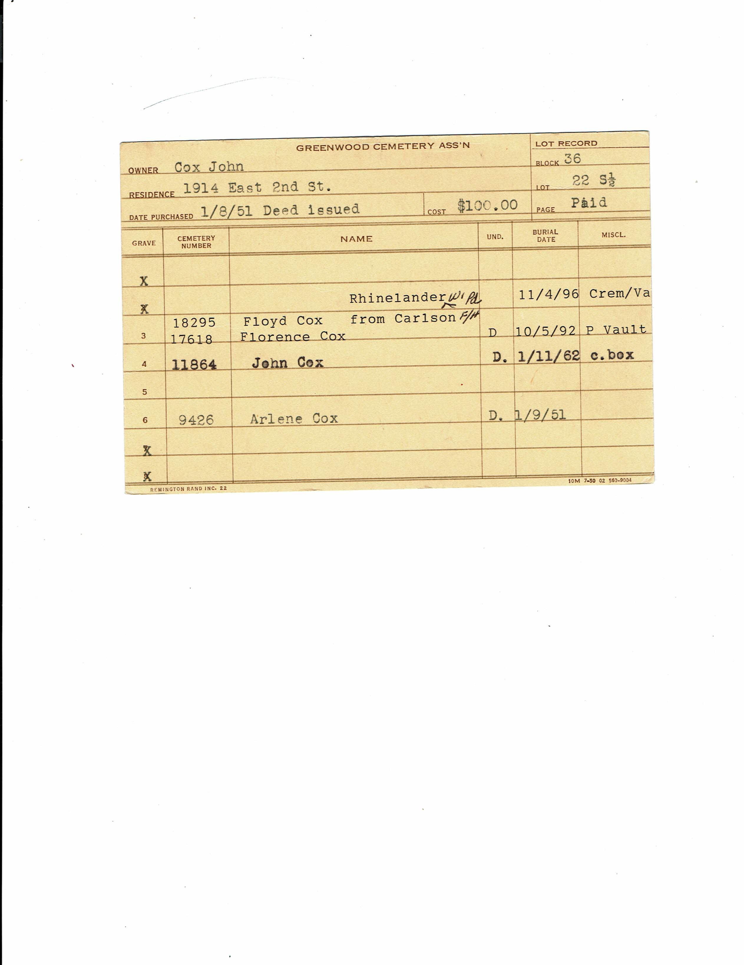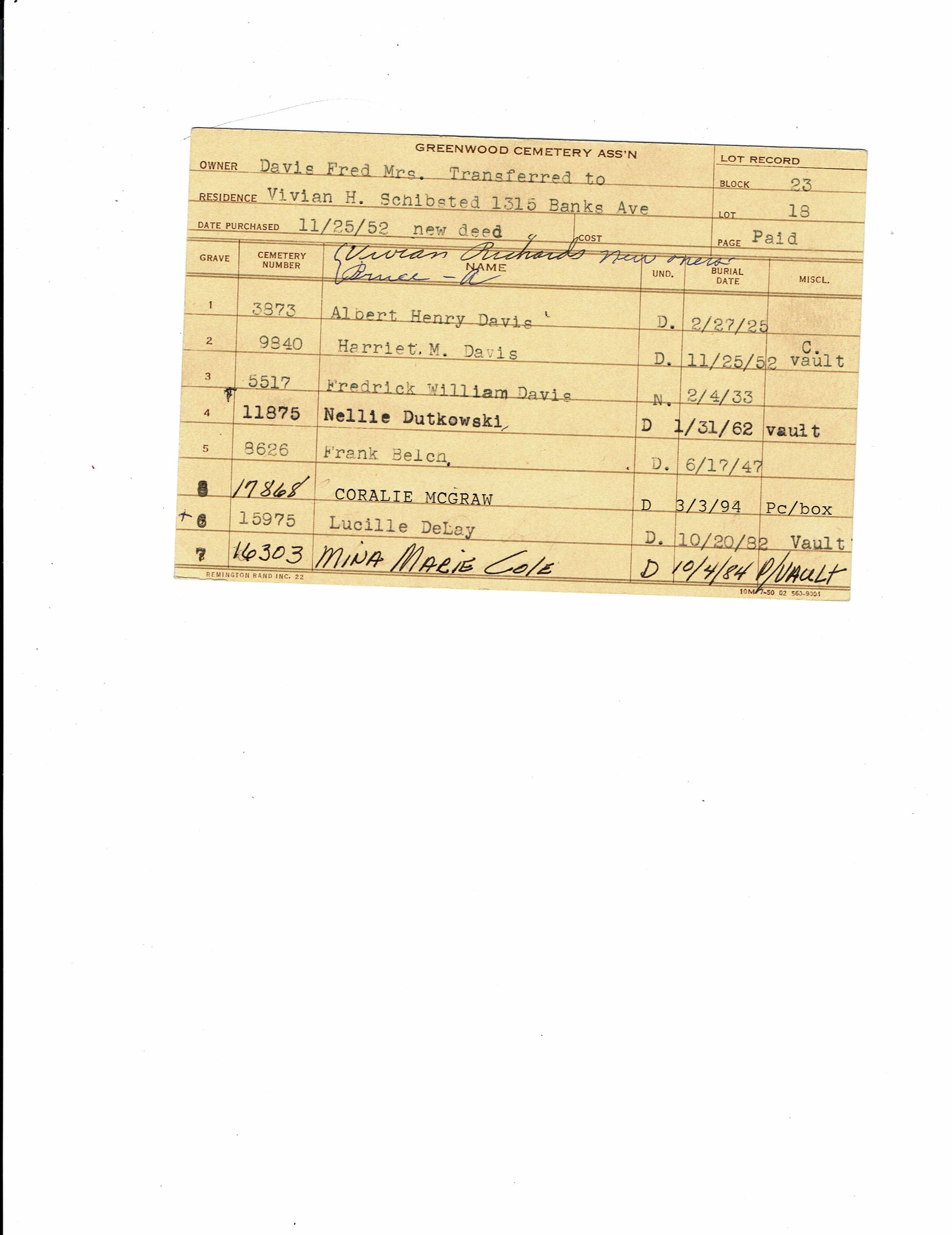 Greenwood Cemetery Association Online Records