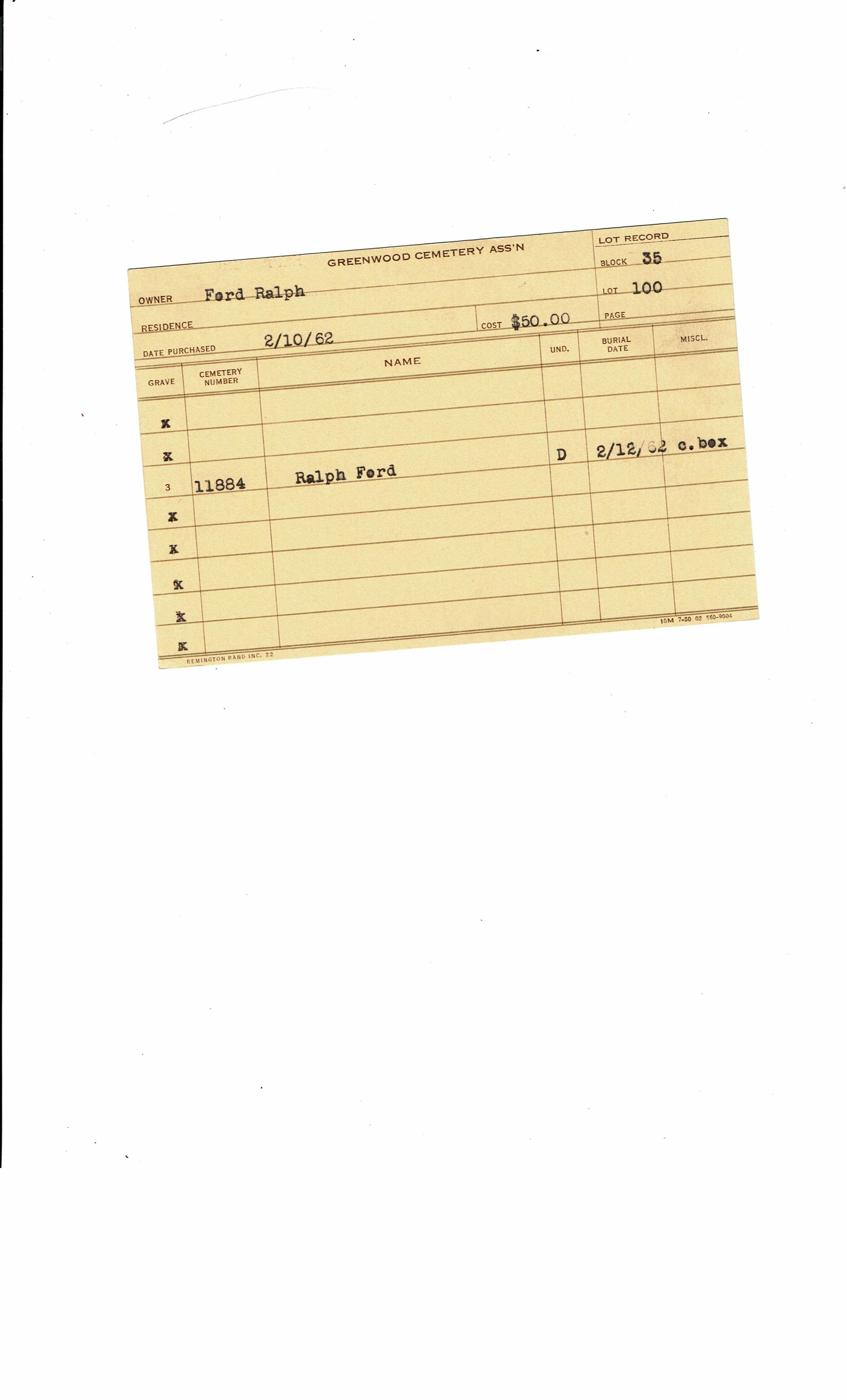 Block 21, Tier 10, Lot 1, Grave 36