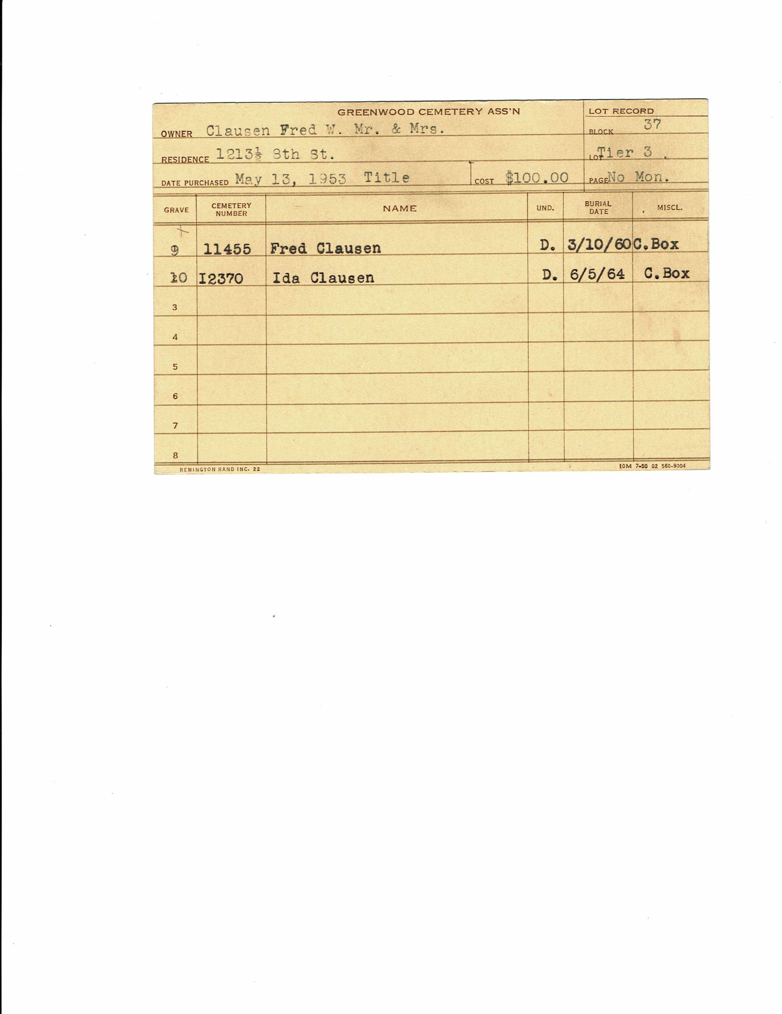 Block 37, Tier 14, Lot 1, Grave 10