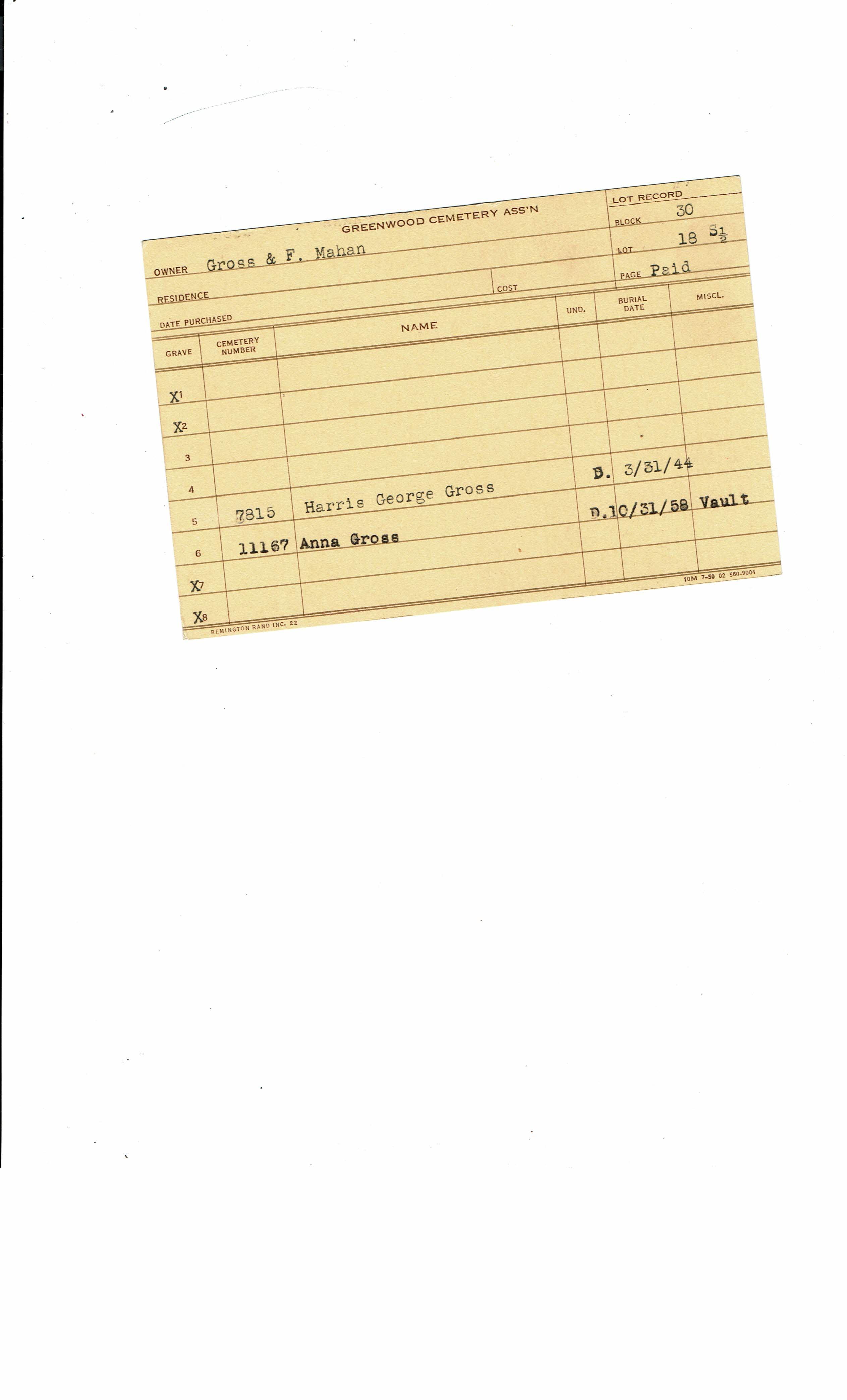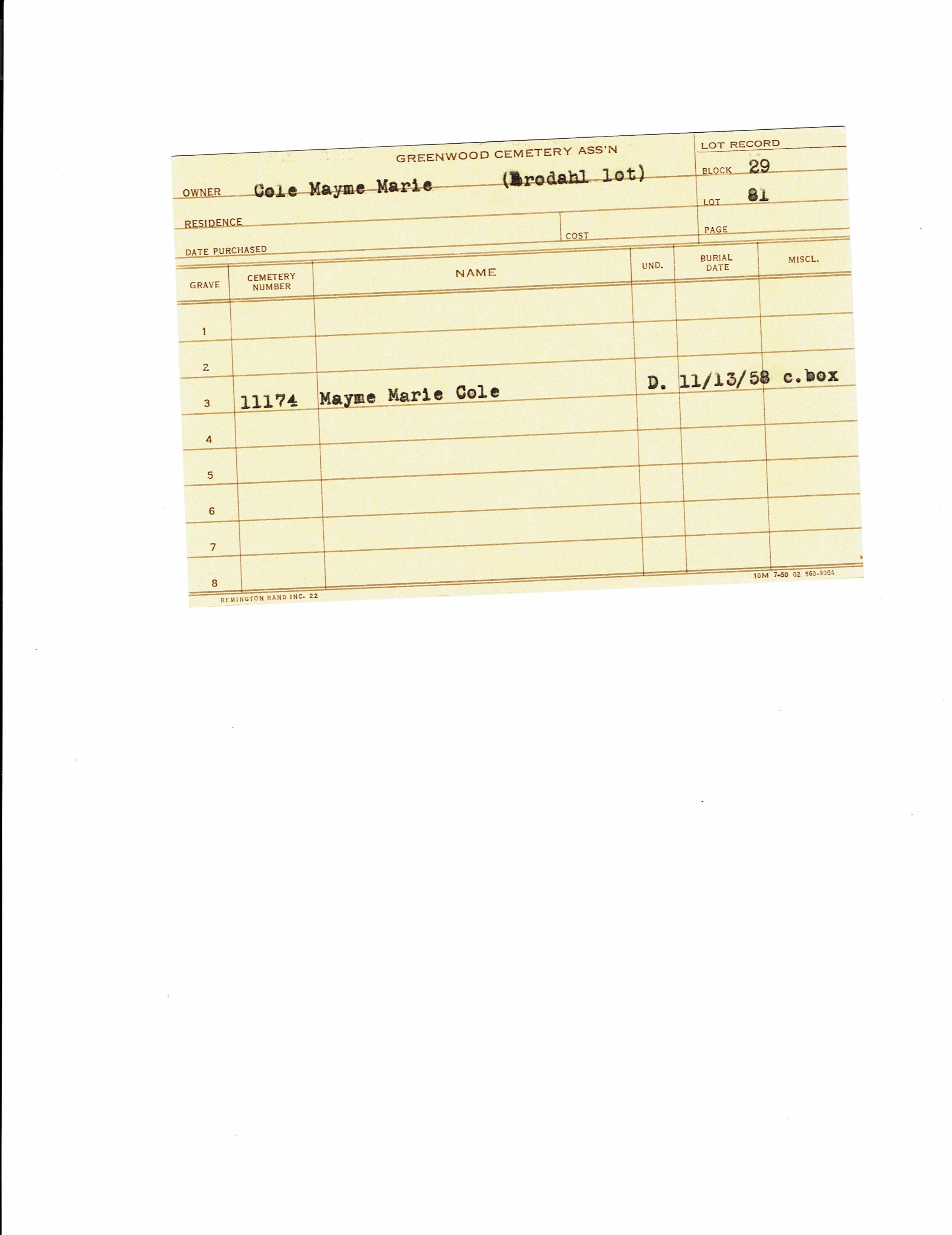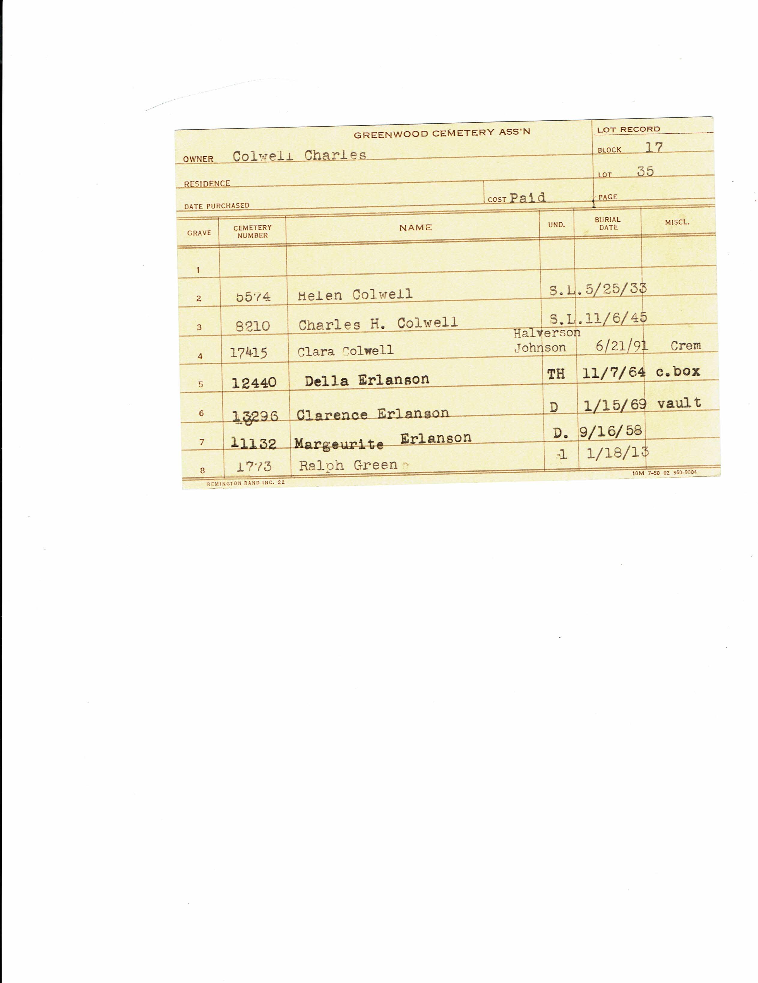 Greenwood Cemetery Association Online Records