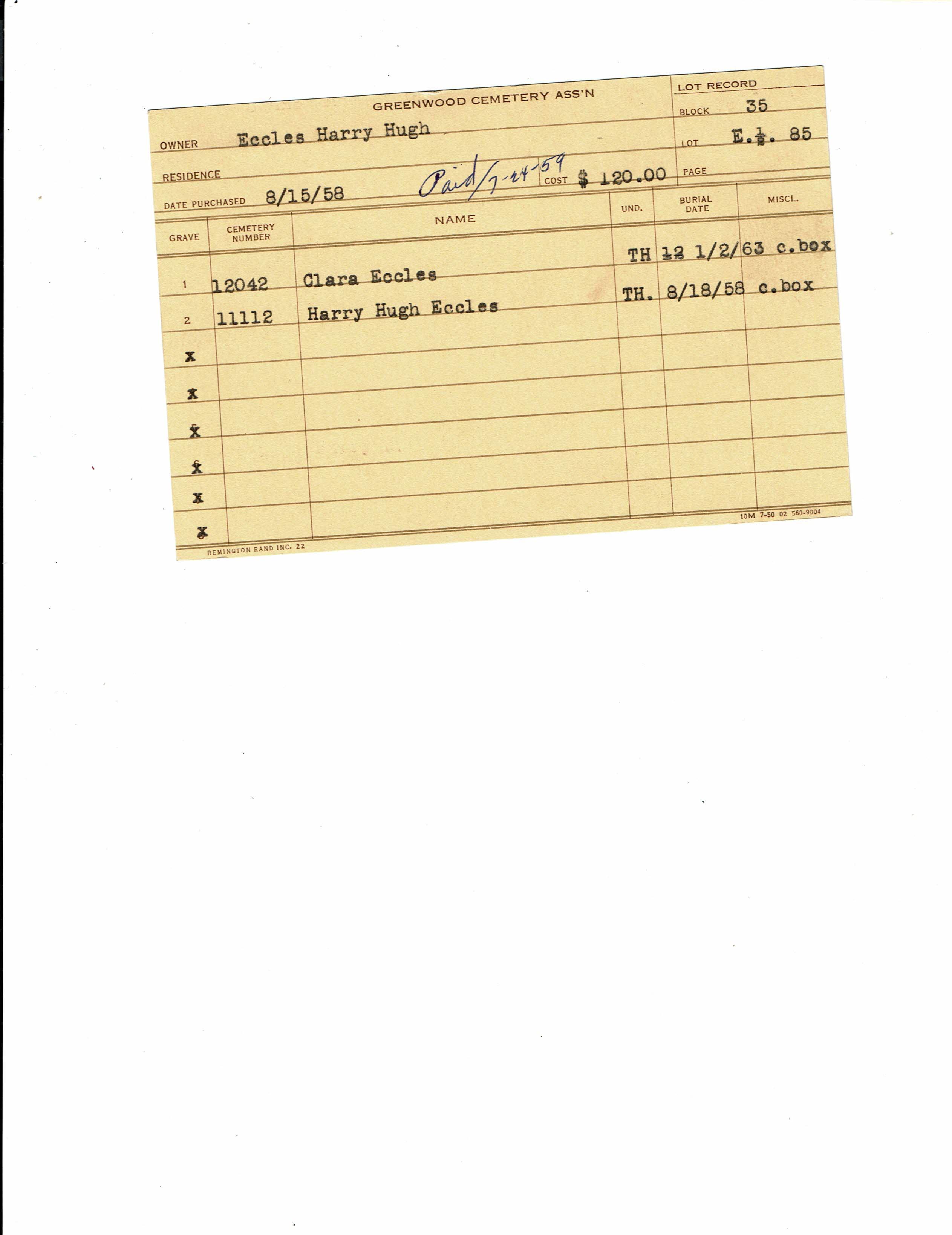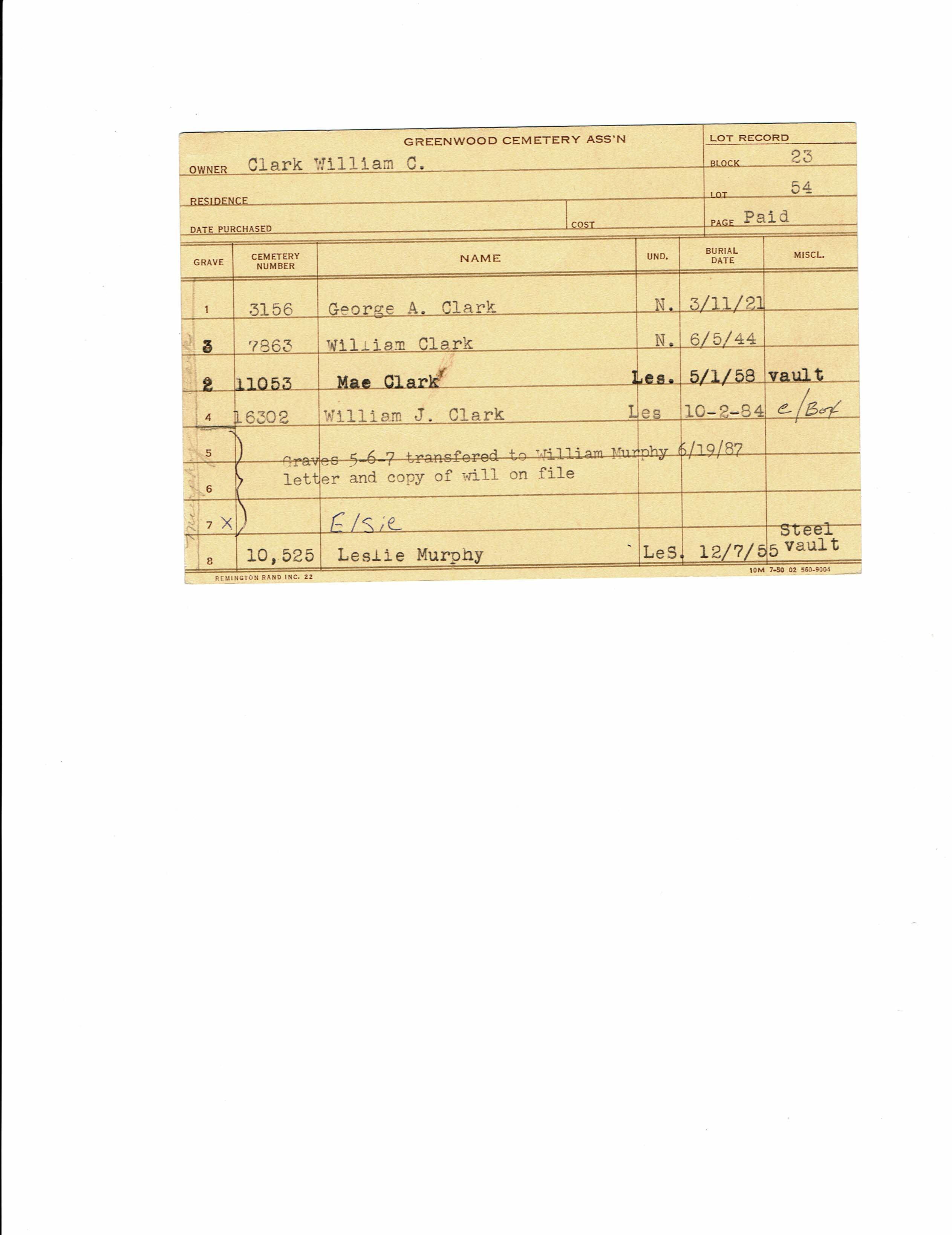 Block 7 Lo, Tier 1, Lot 23, Grave 2