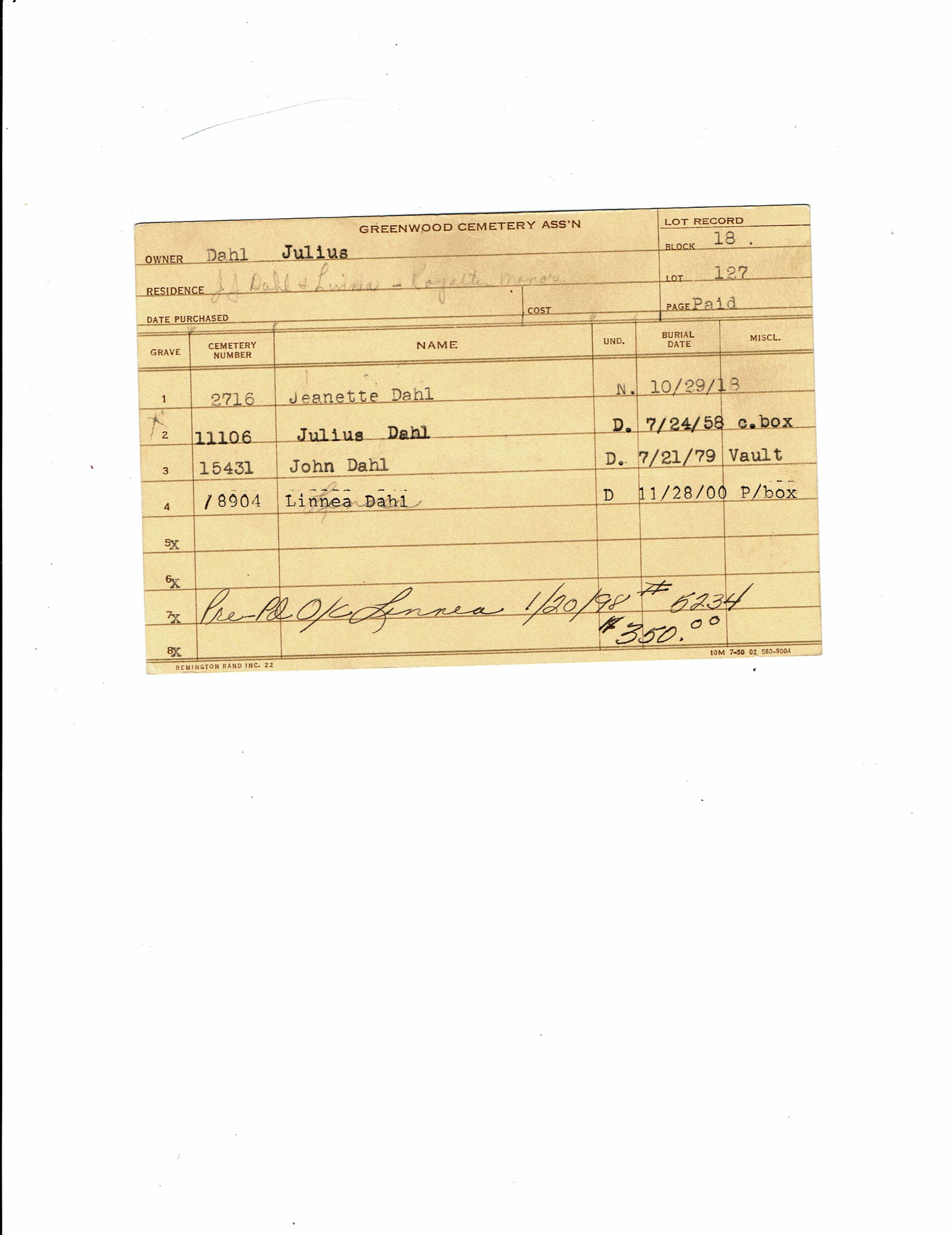 Greenwood Cemetery Association Online Records