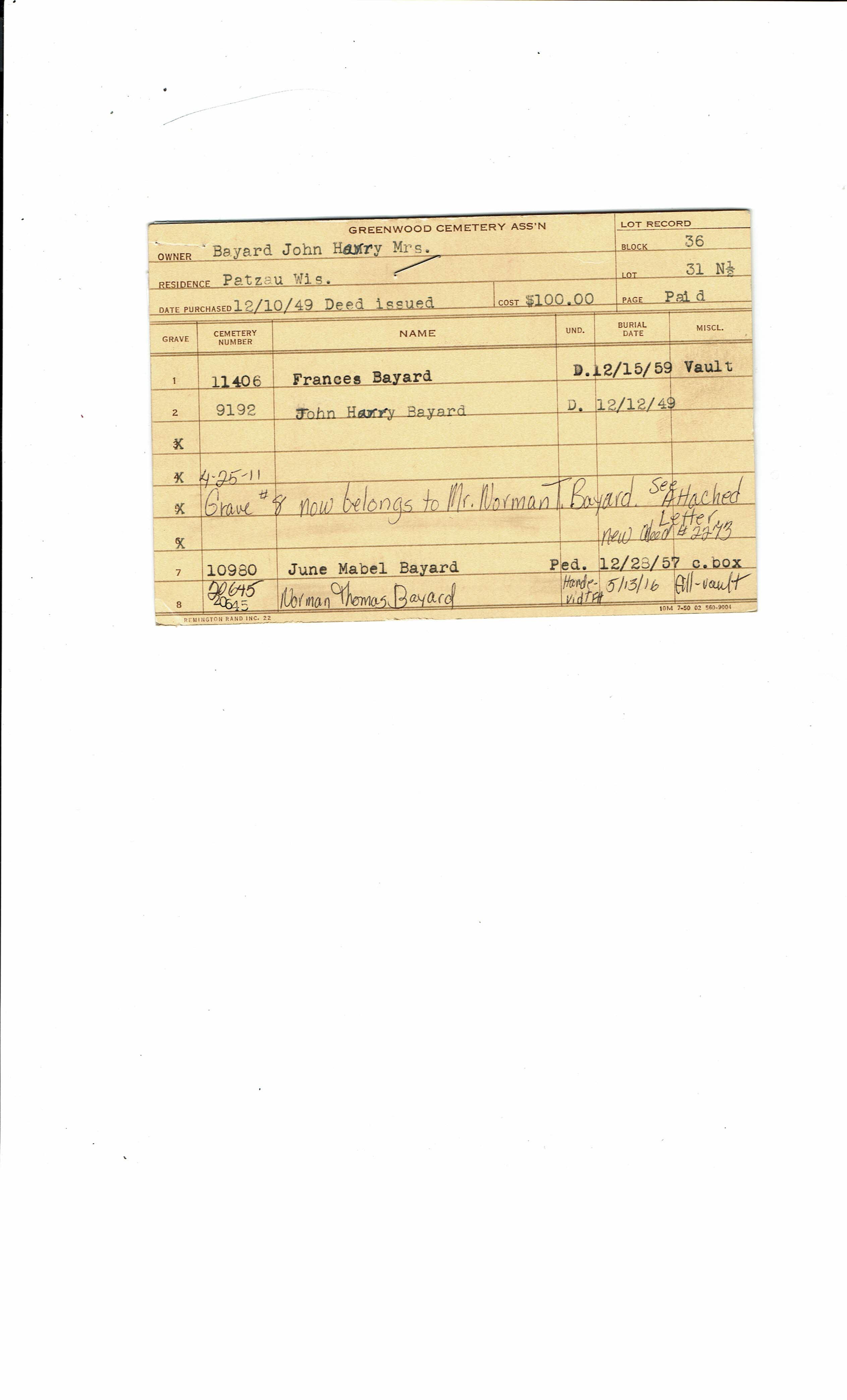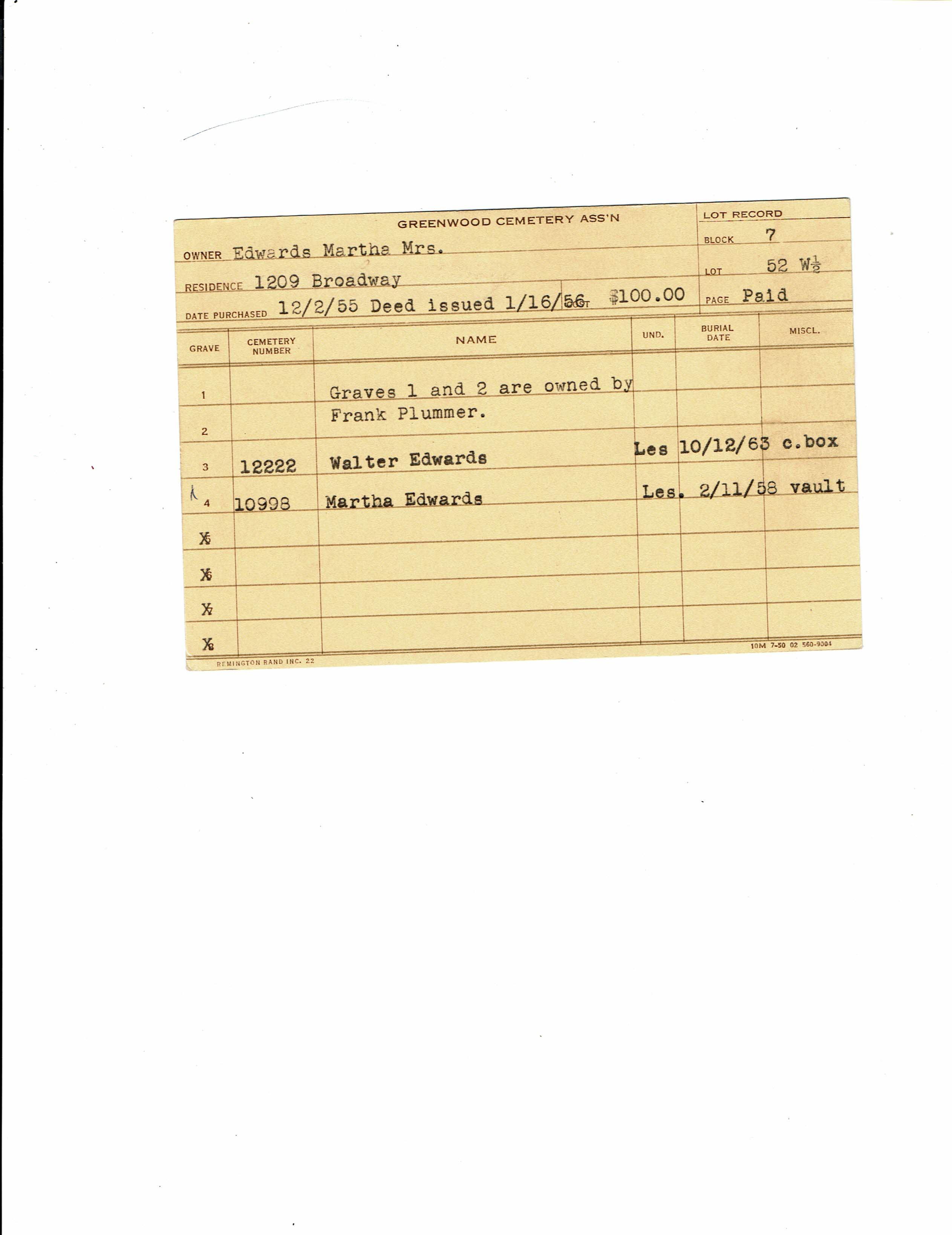 Greenwood Cemetery Association Online Records
