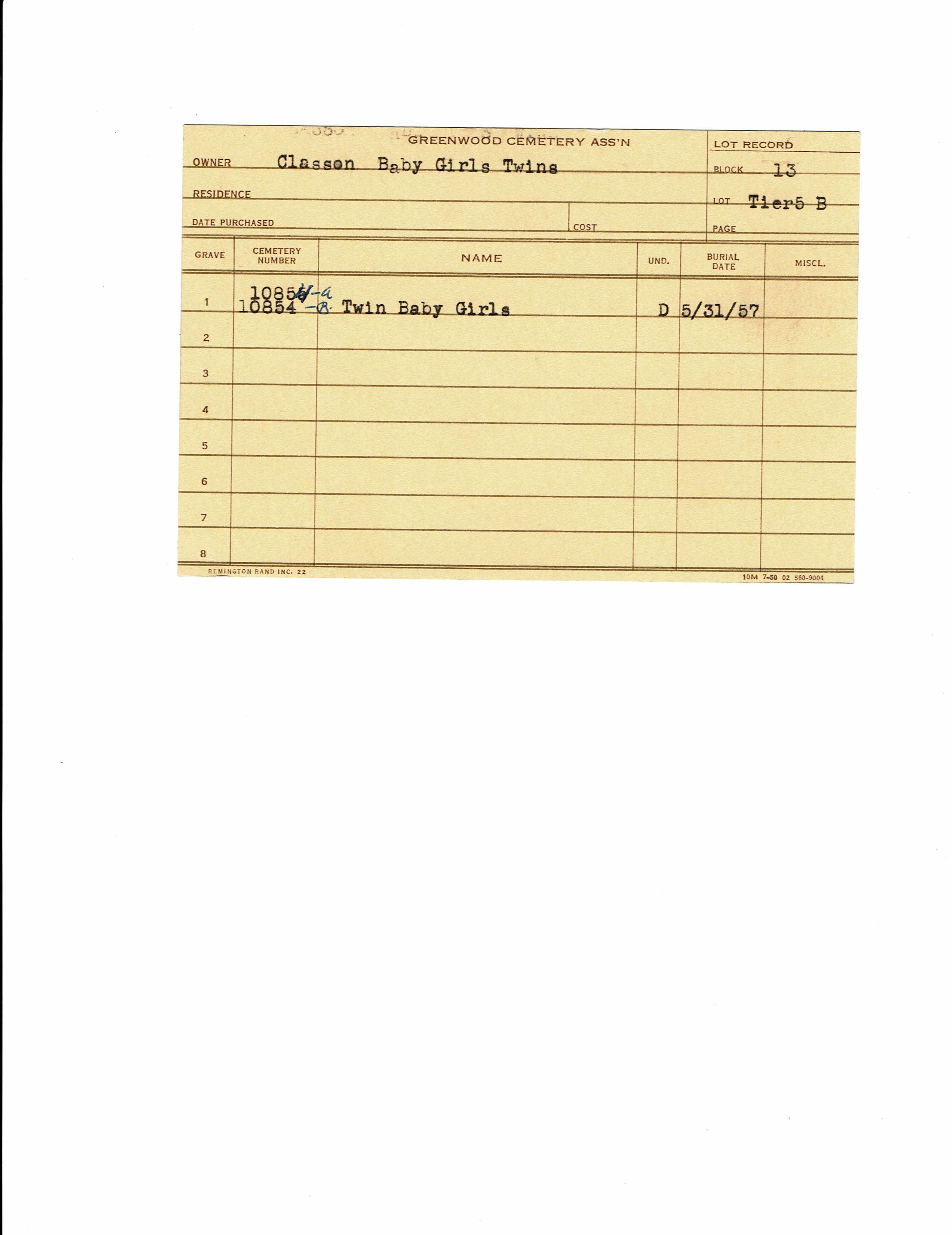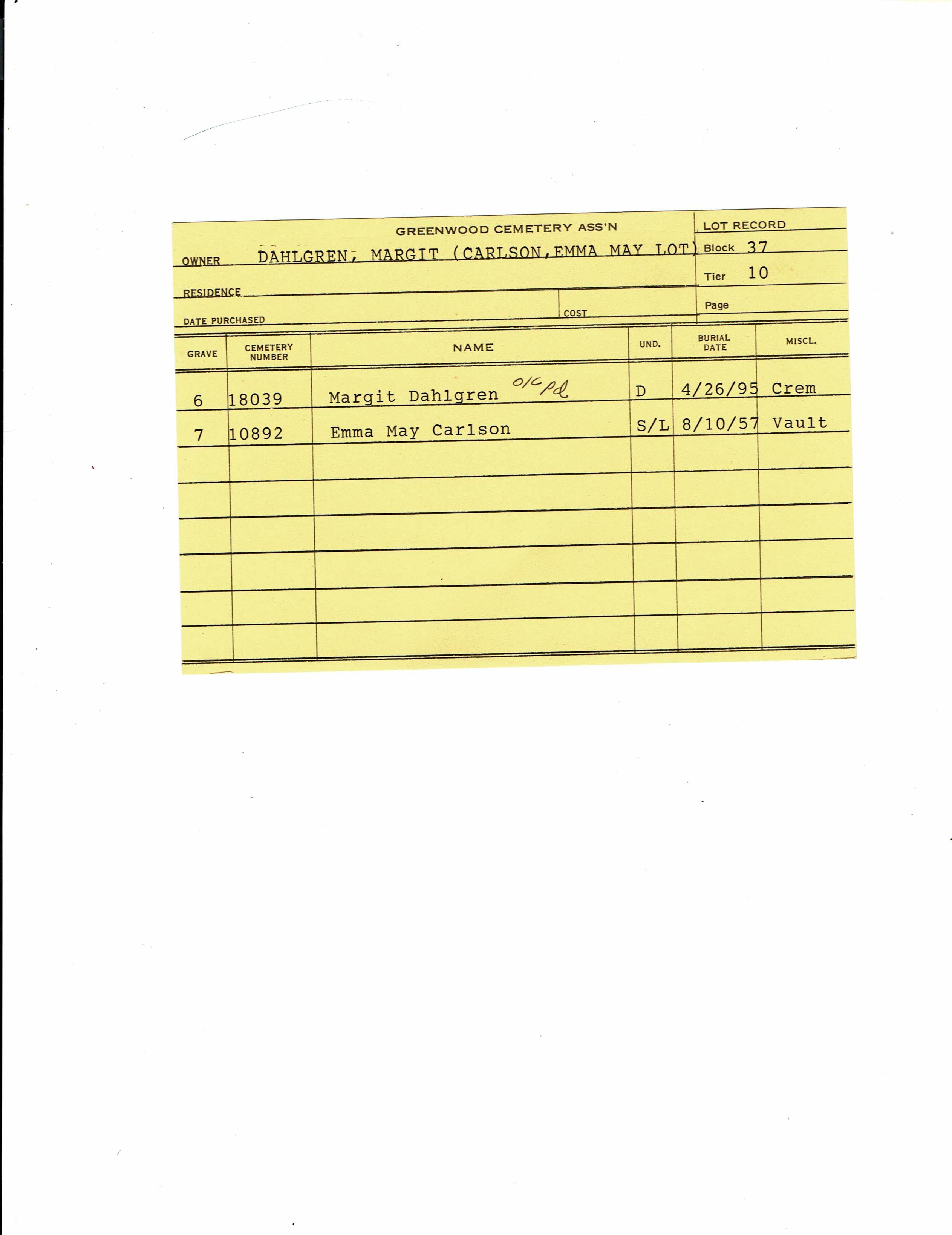 Block 7 Lo, Tier 1, Lot 08, Grave 1