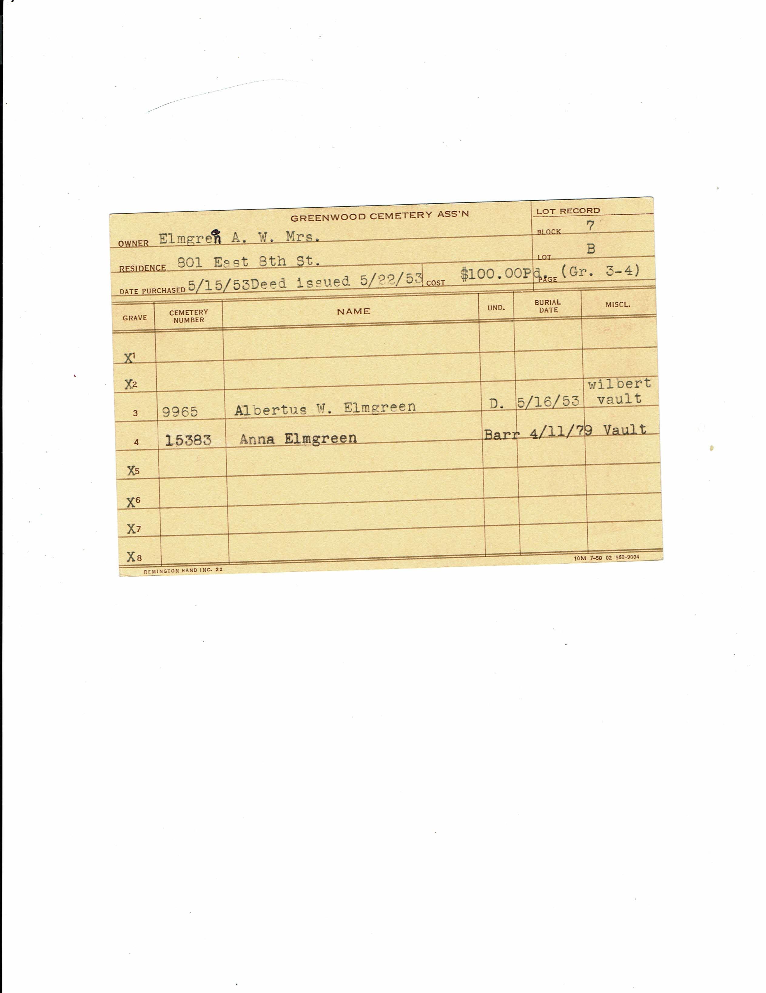 Greenwood Cemetery Association Online Records