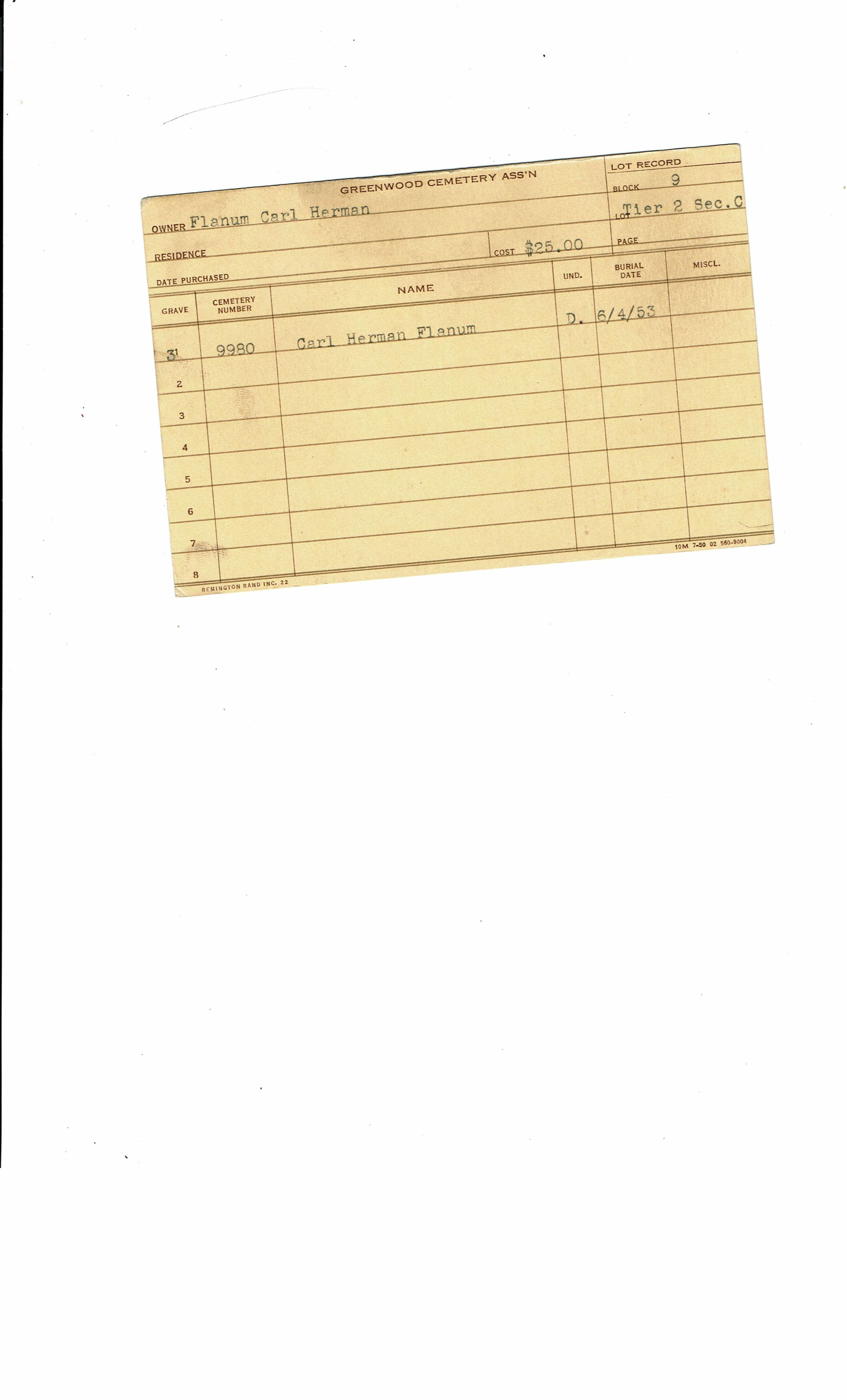 Block 7 Lo, Tier 1, Lot 58, Grave 2