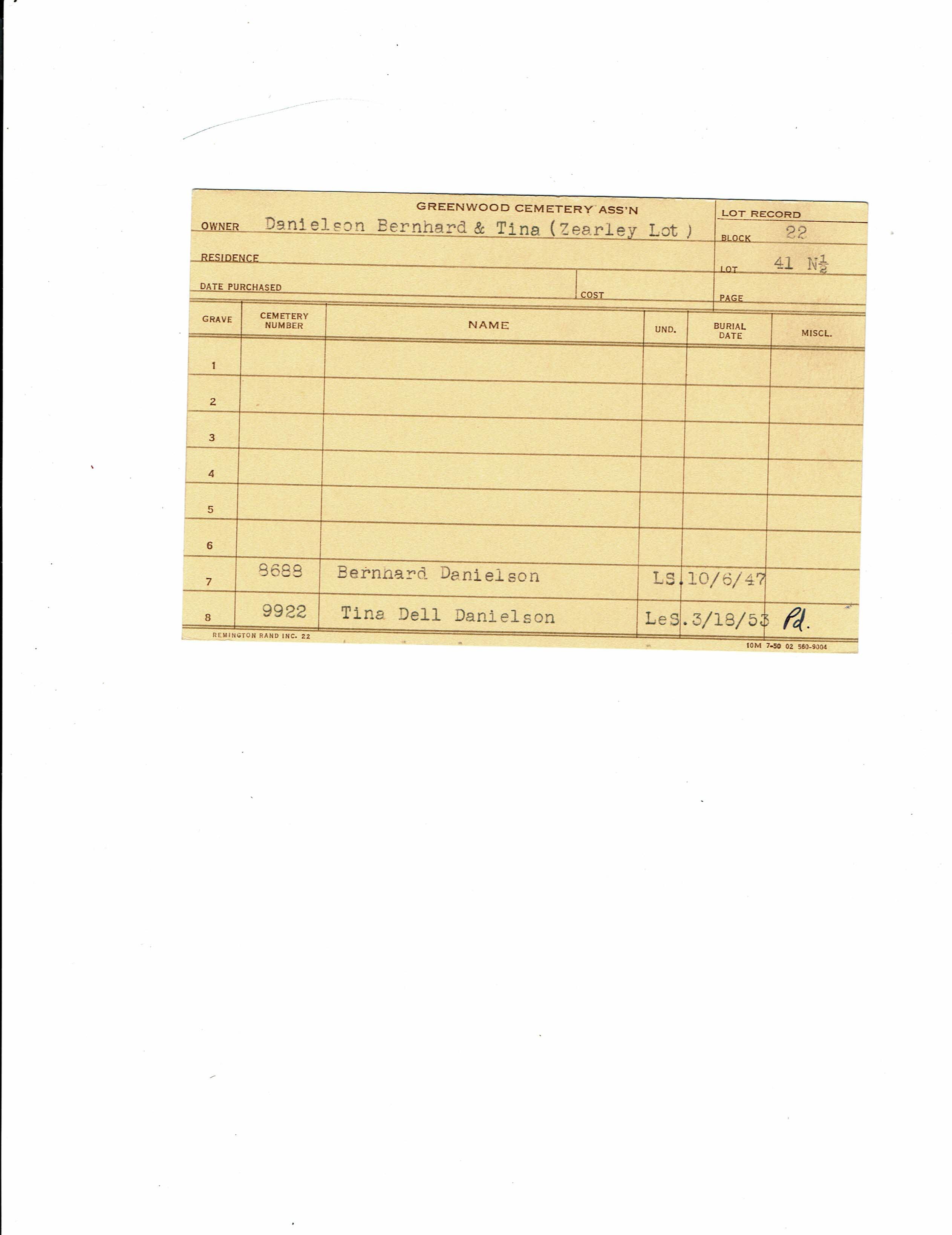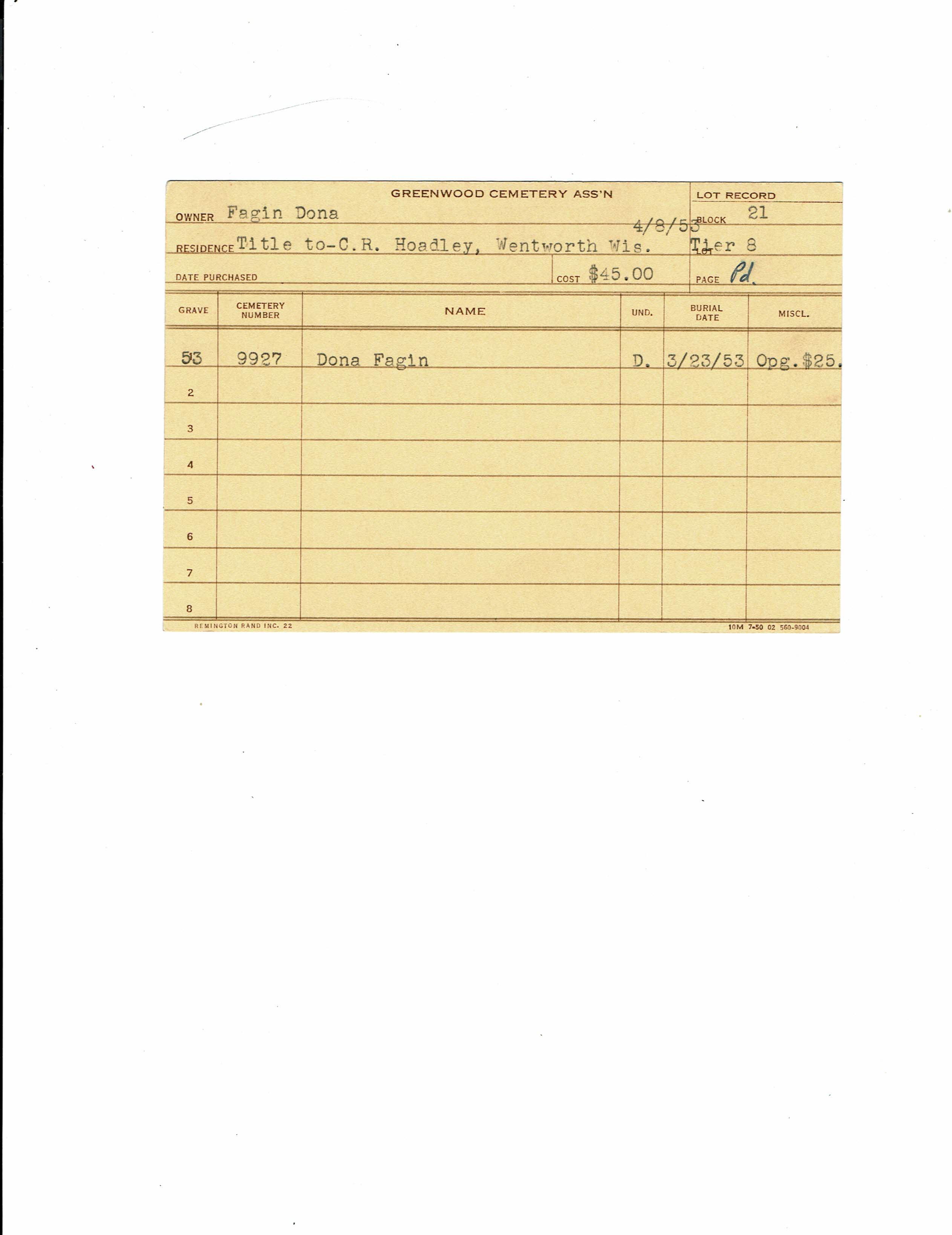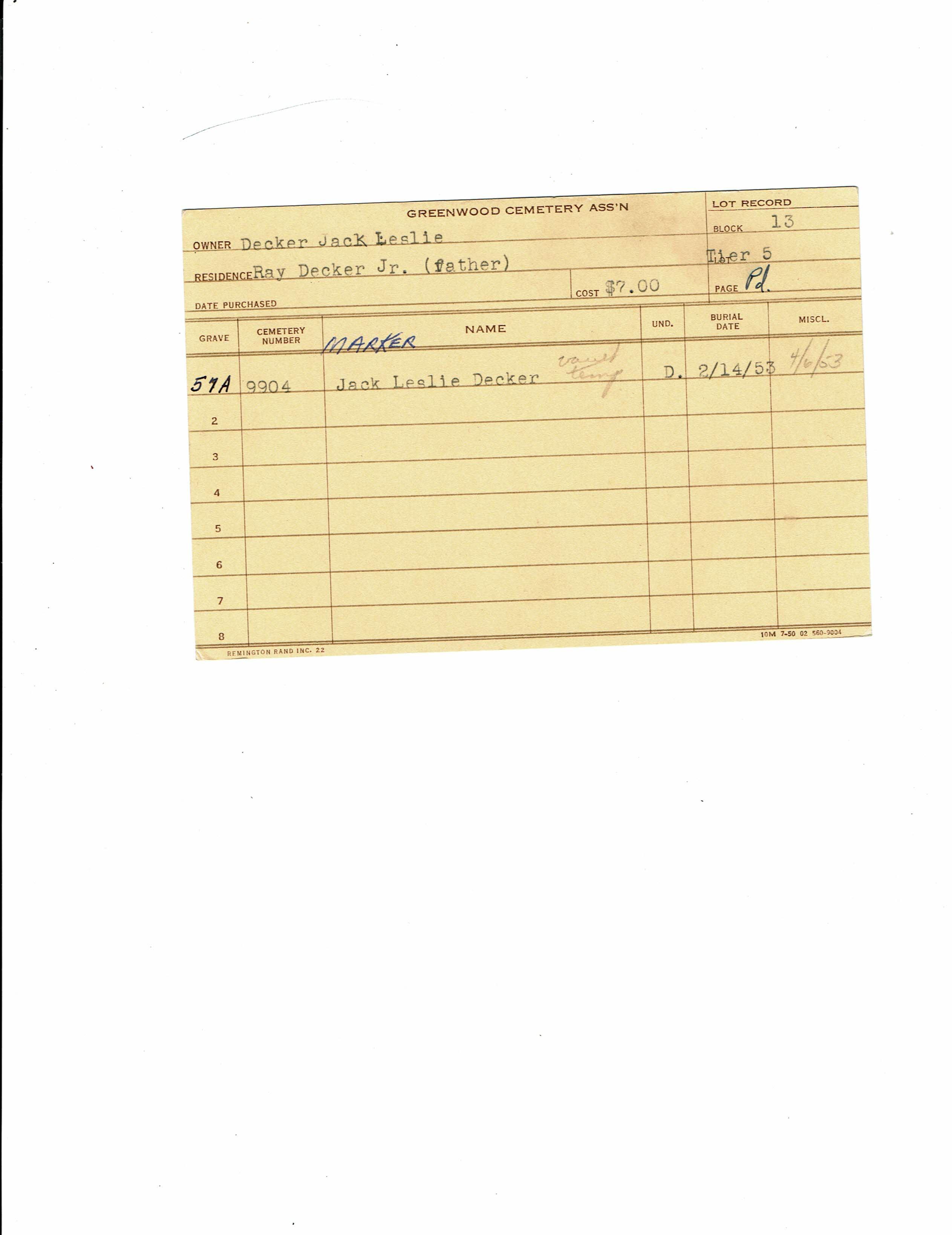 Block 29, Tier 1, Lot 52, Grave 1