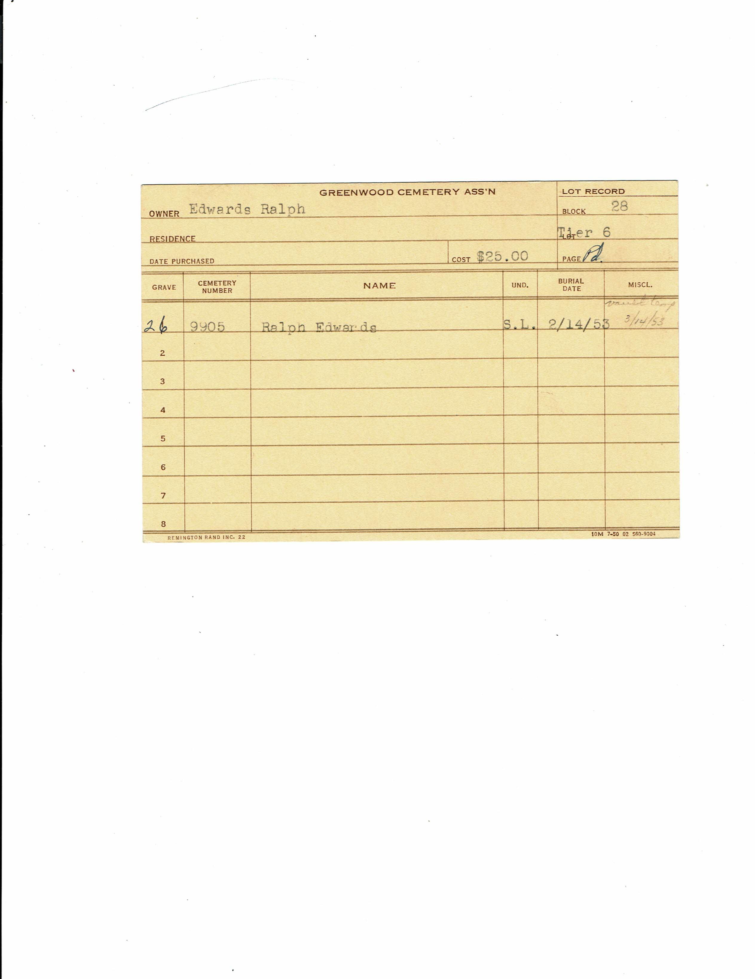 Greenwood Cemetery Association Online Records