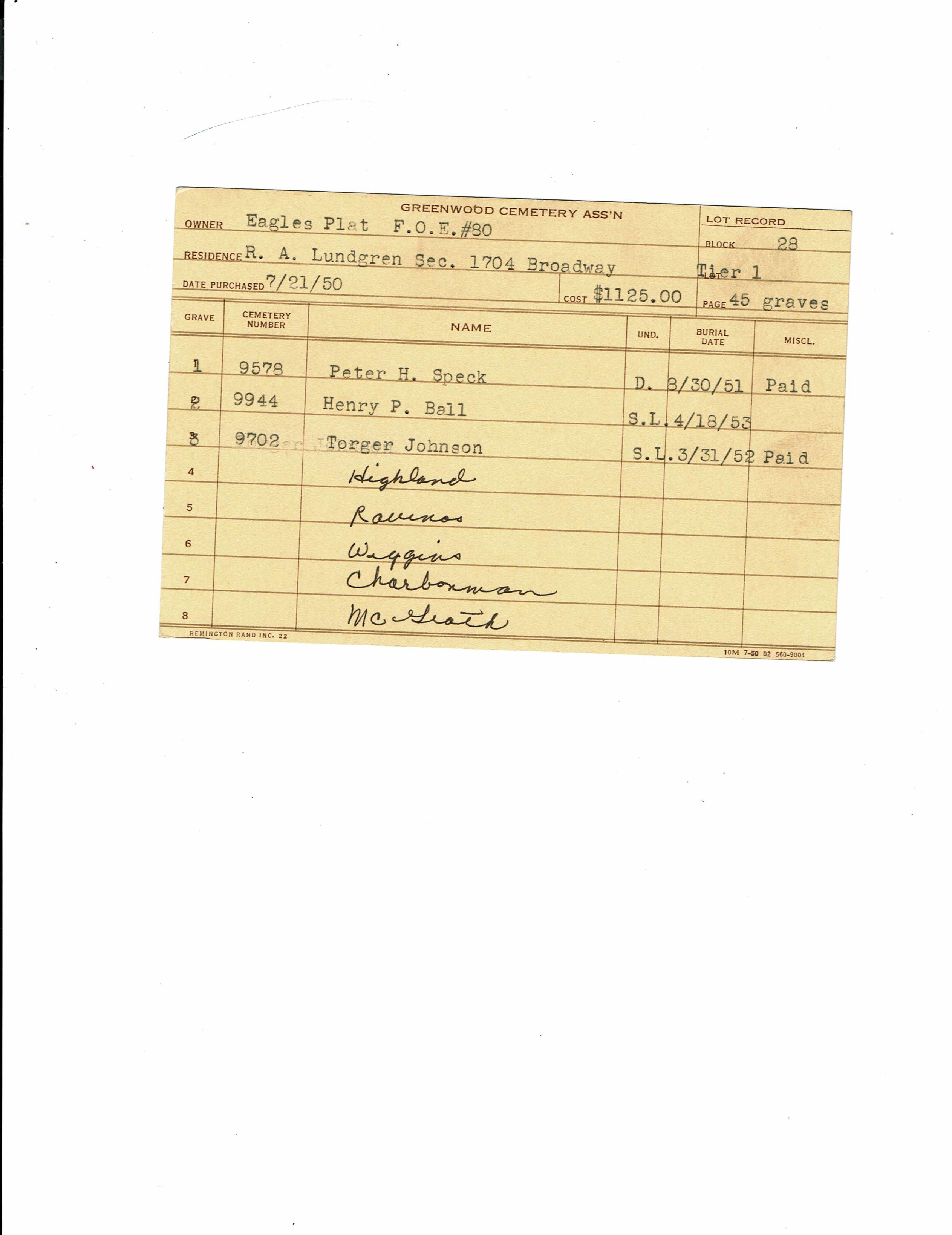 Block 21, Tier 6, Lot 1, Grave 26