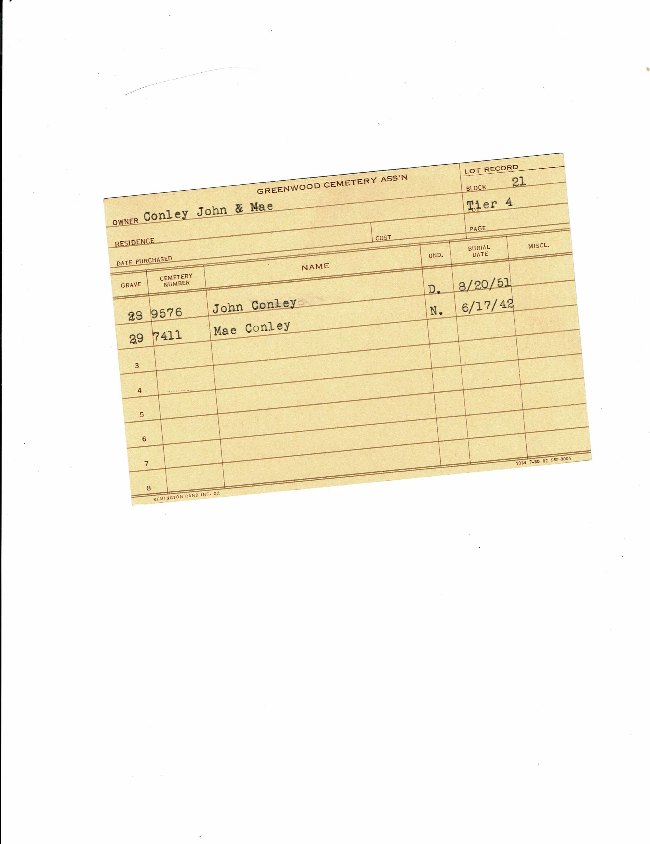 Block 13, Tier 20, Lot 1, Grave 12
