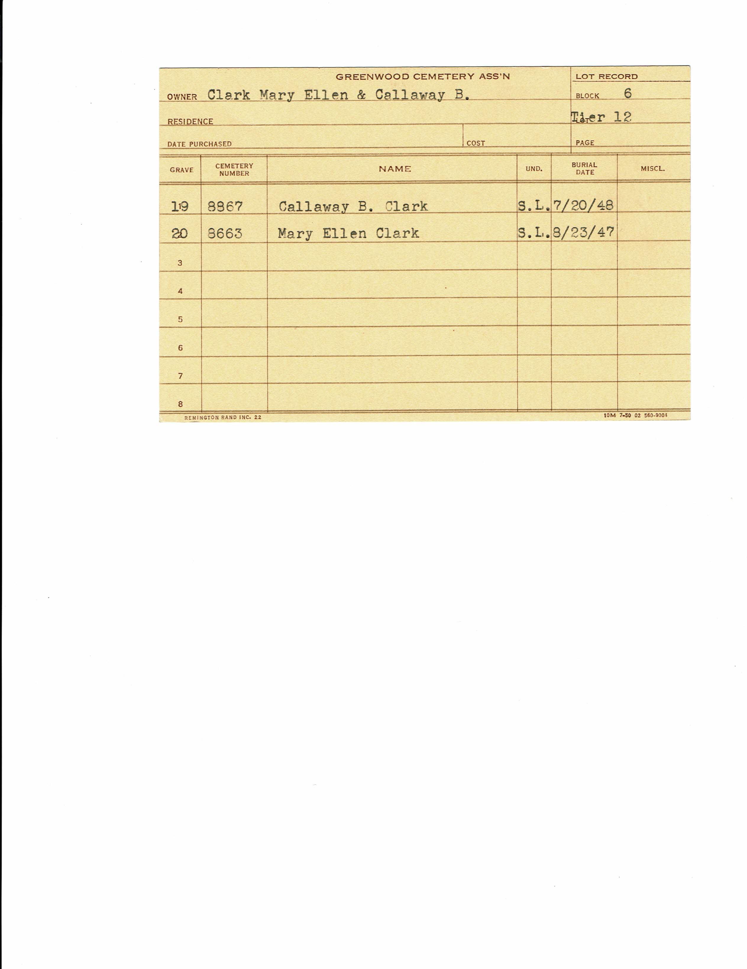Block 6, Tier 12, Lot 1, Grave 33