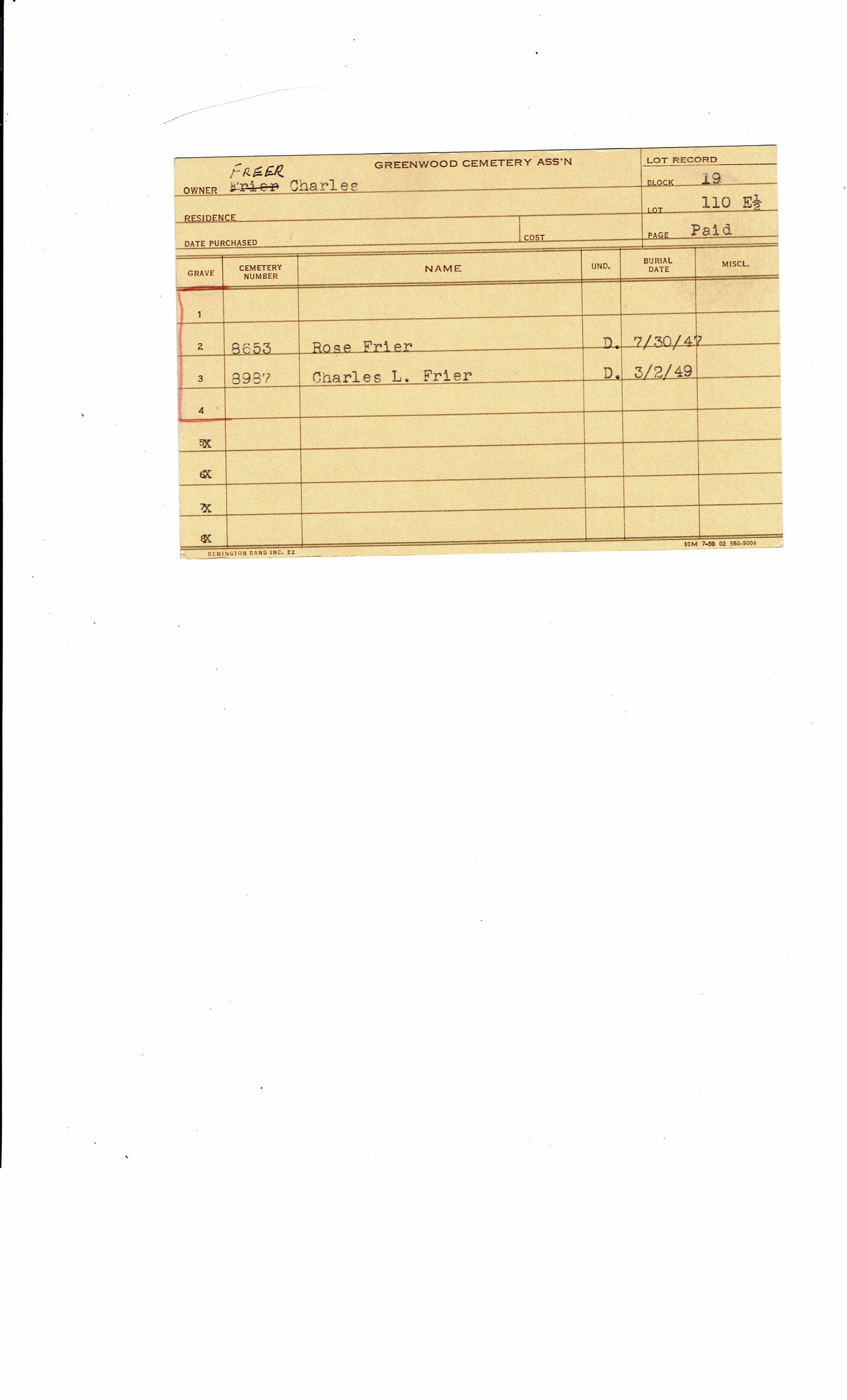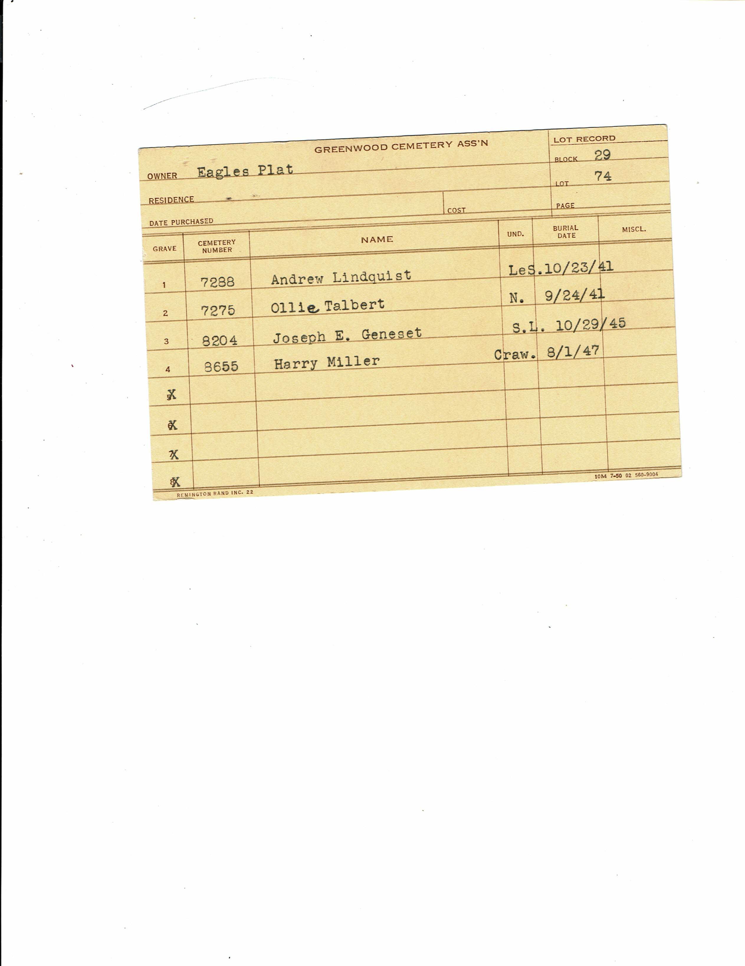Greenwood Cemetery Association Online Records