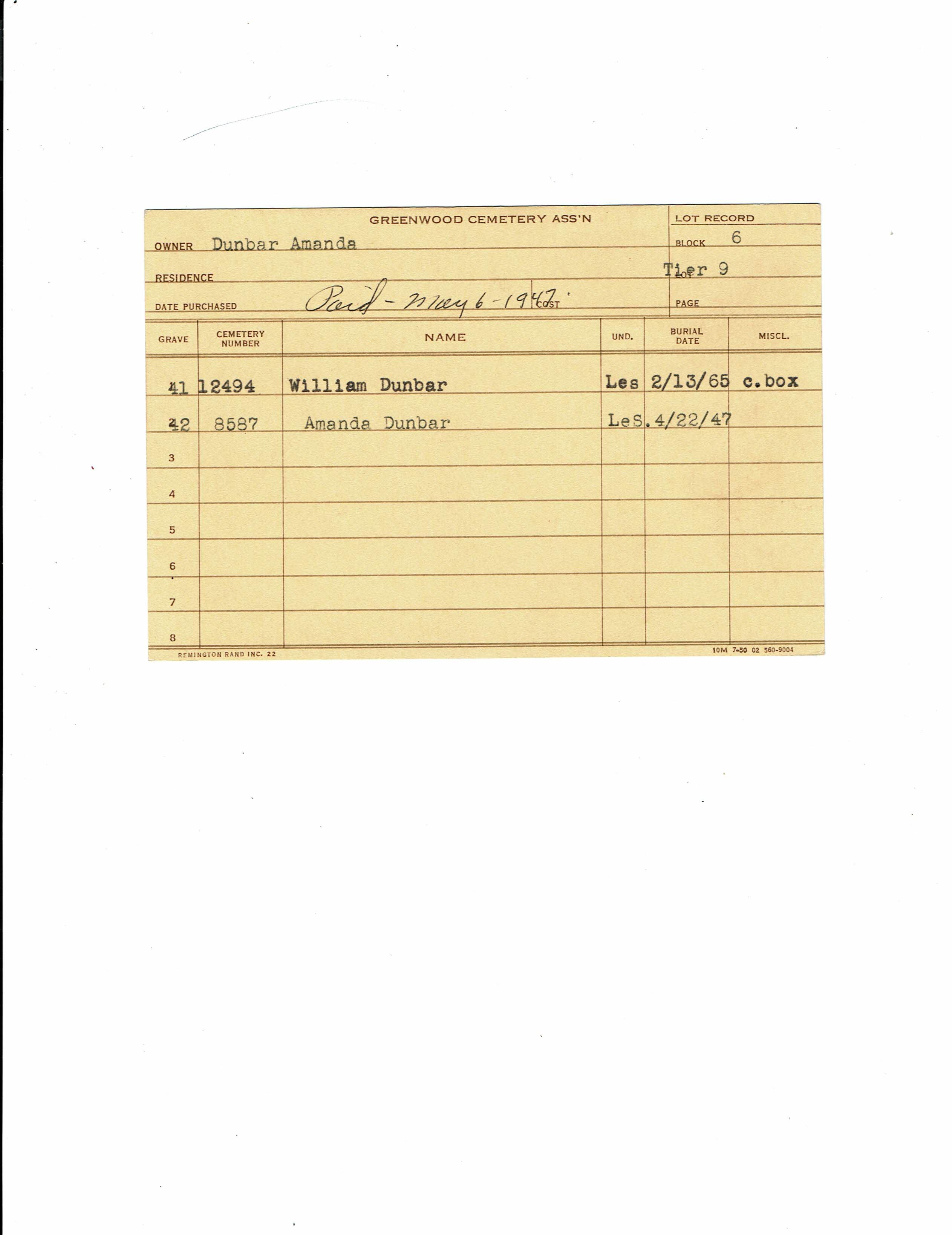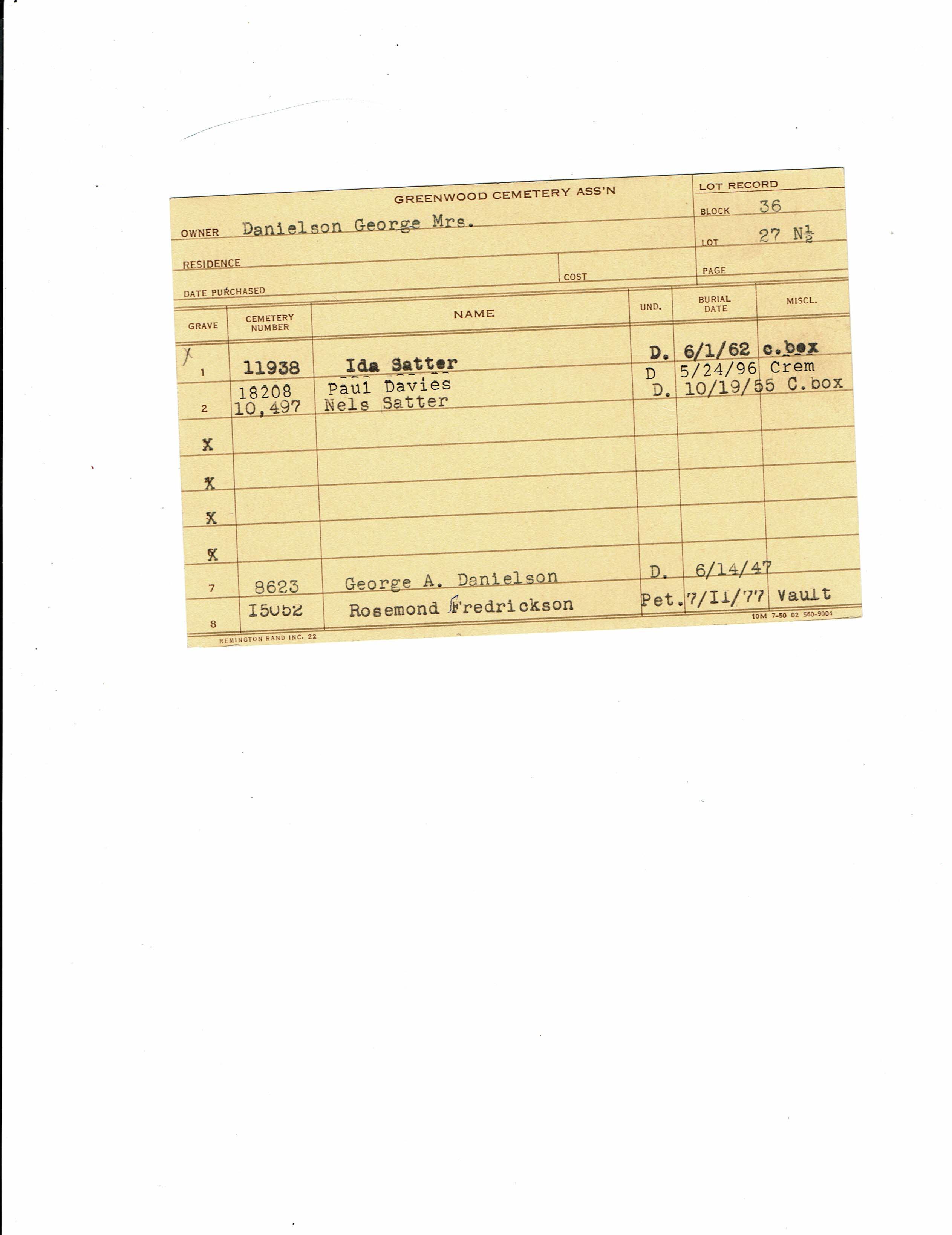 Greenwood Cemetery Association Online Records