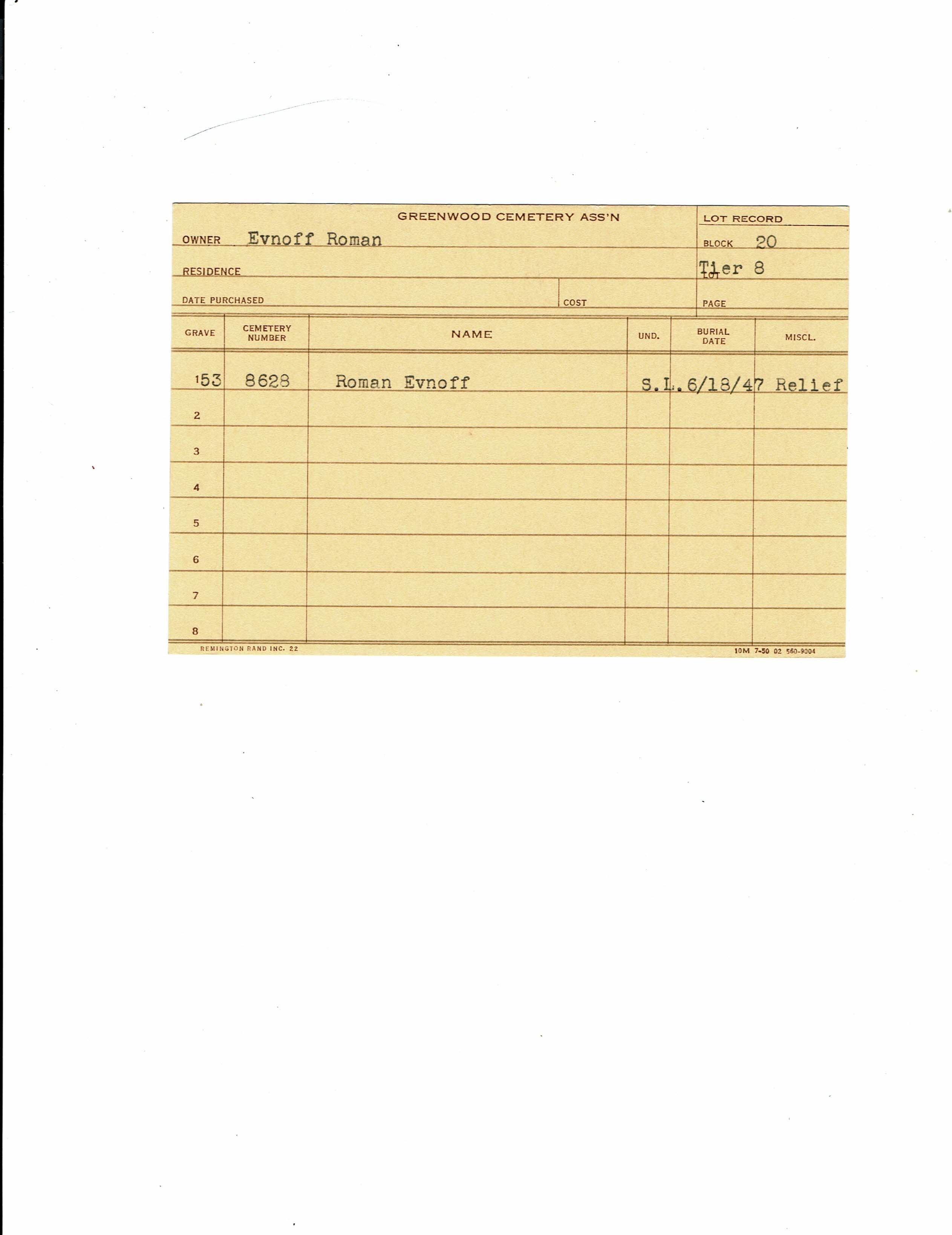 Block 22, Tier 1, Lot 099, Grave 1