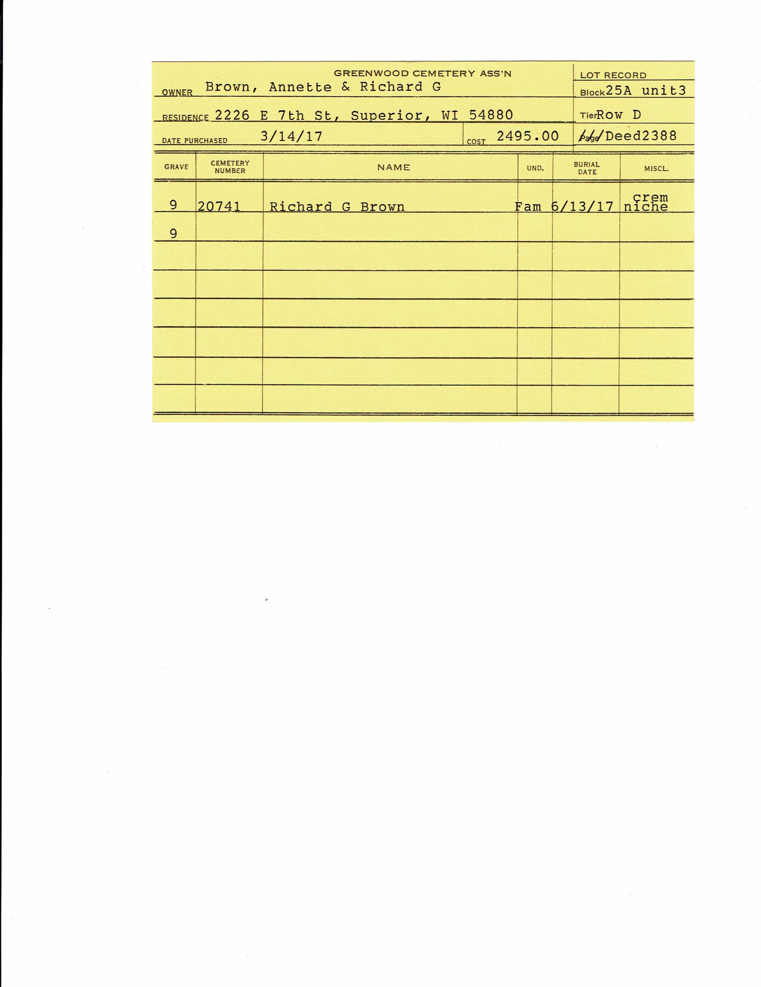 Block 25A, Tier Unit 3, Lot D, Grave 9