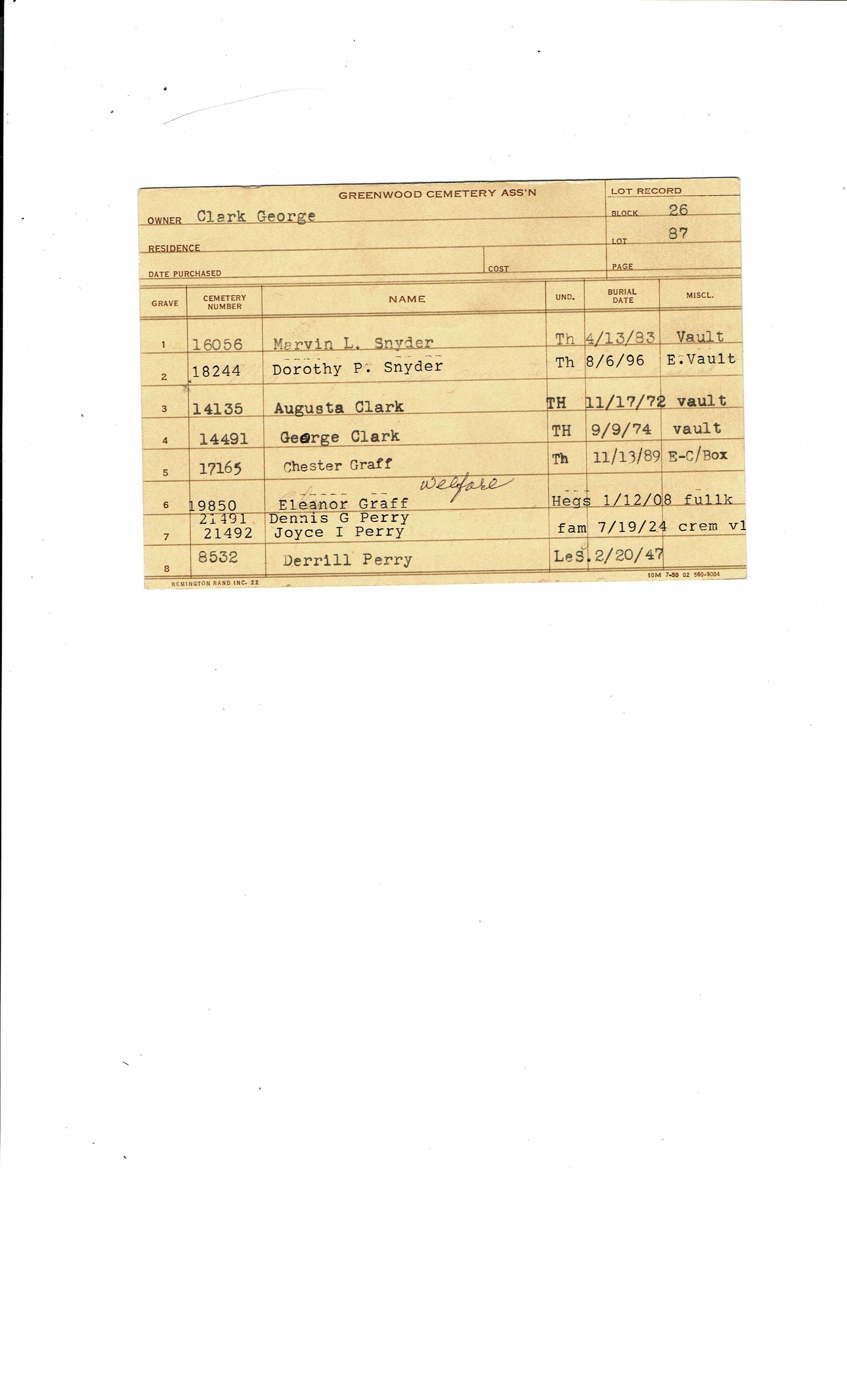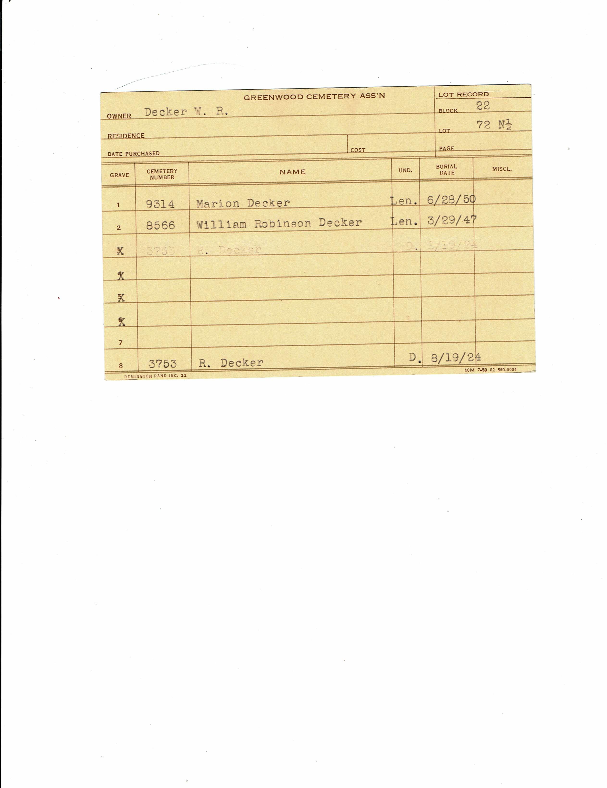 Greenwood Cemetery Association Online Records