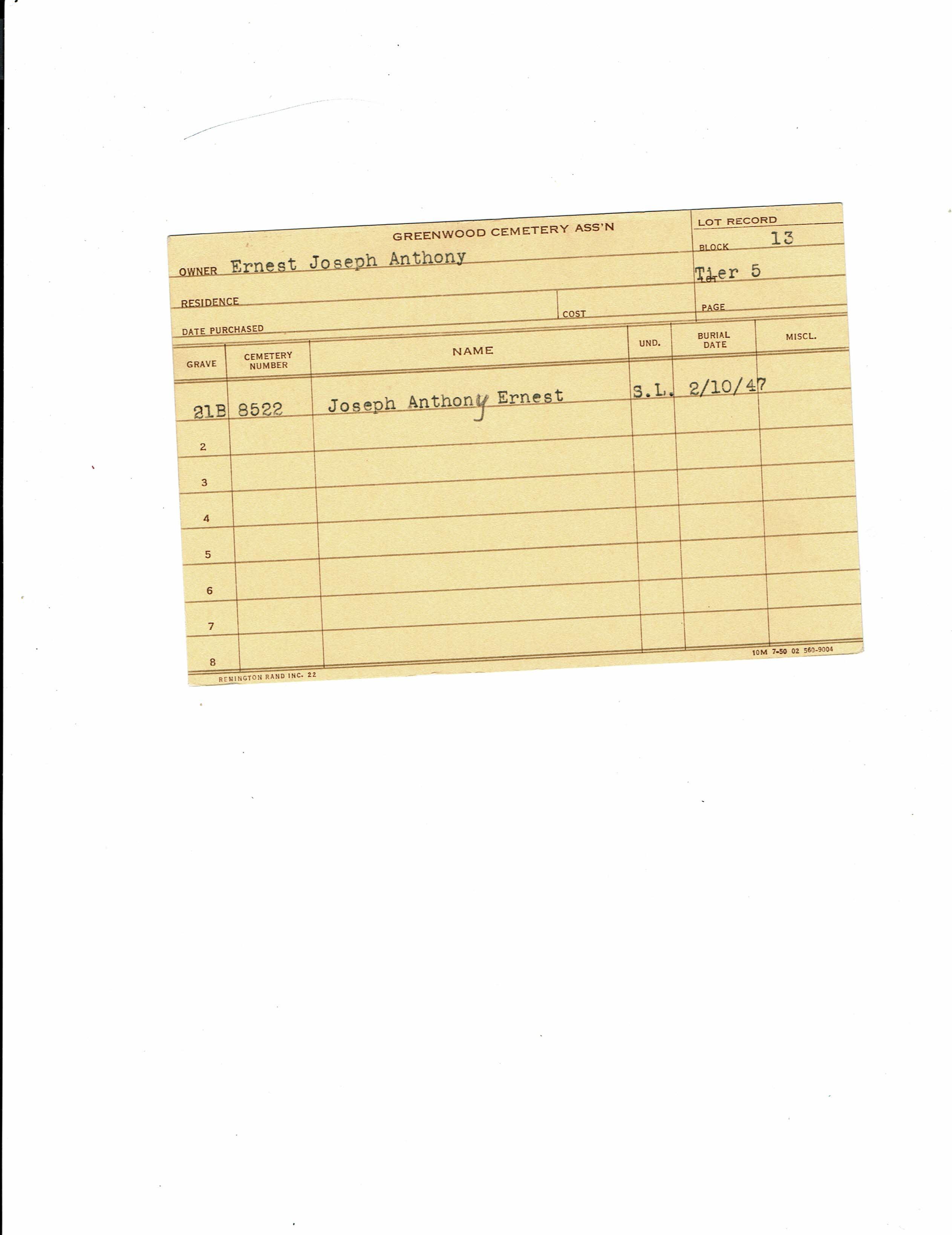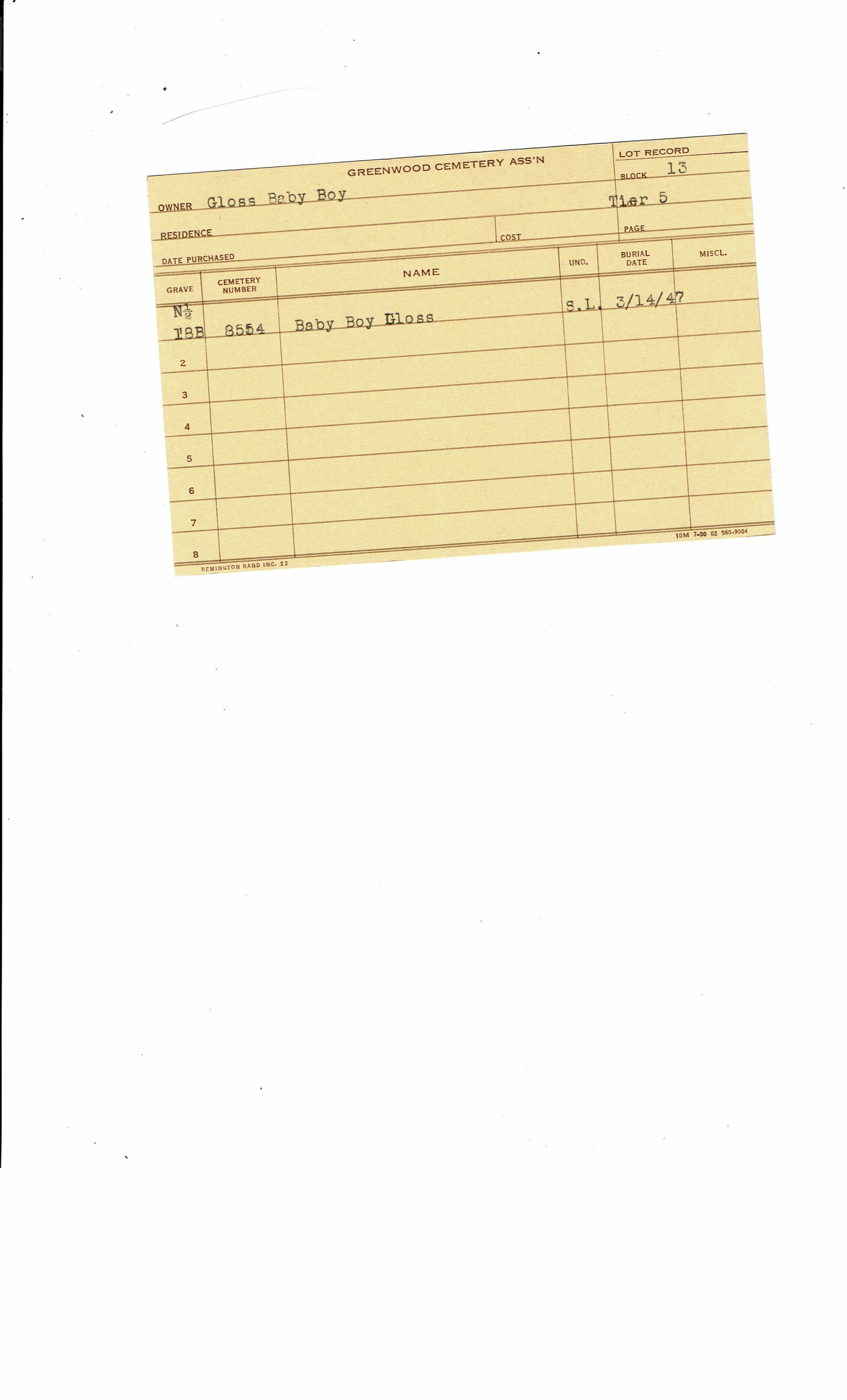 Block 13, Tier 5B, Lot 1, Grave 18
