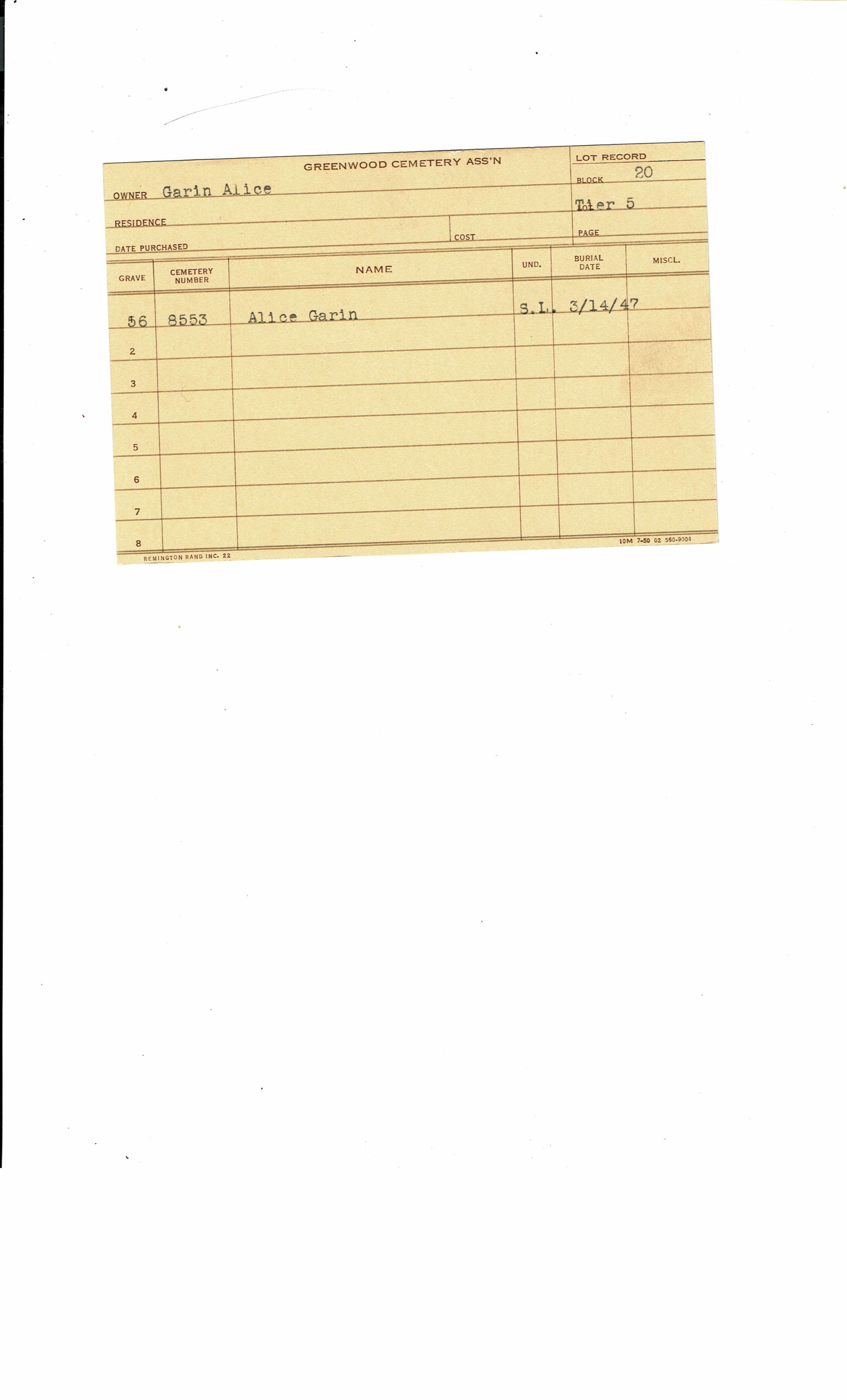 Block 20, Tier 08, Lot 1, Grave 28