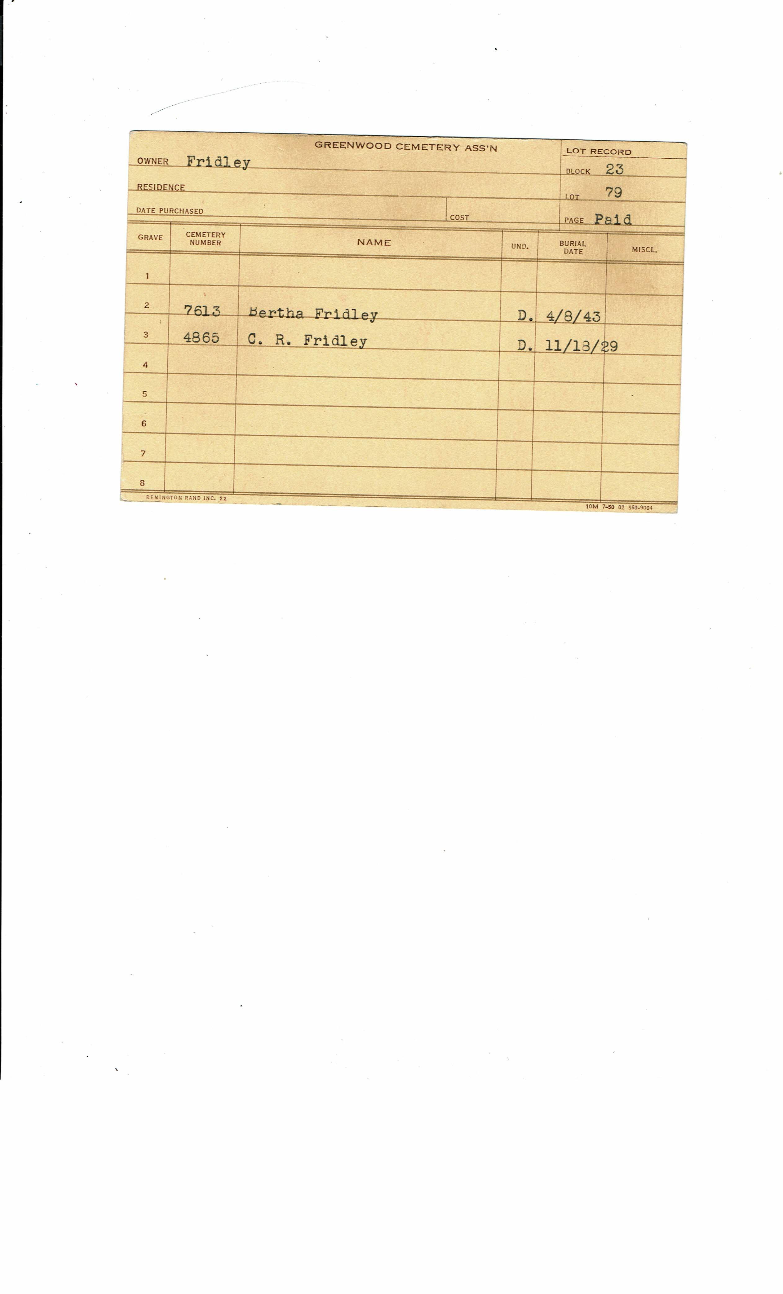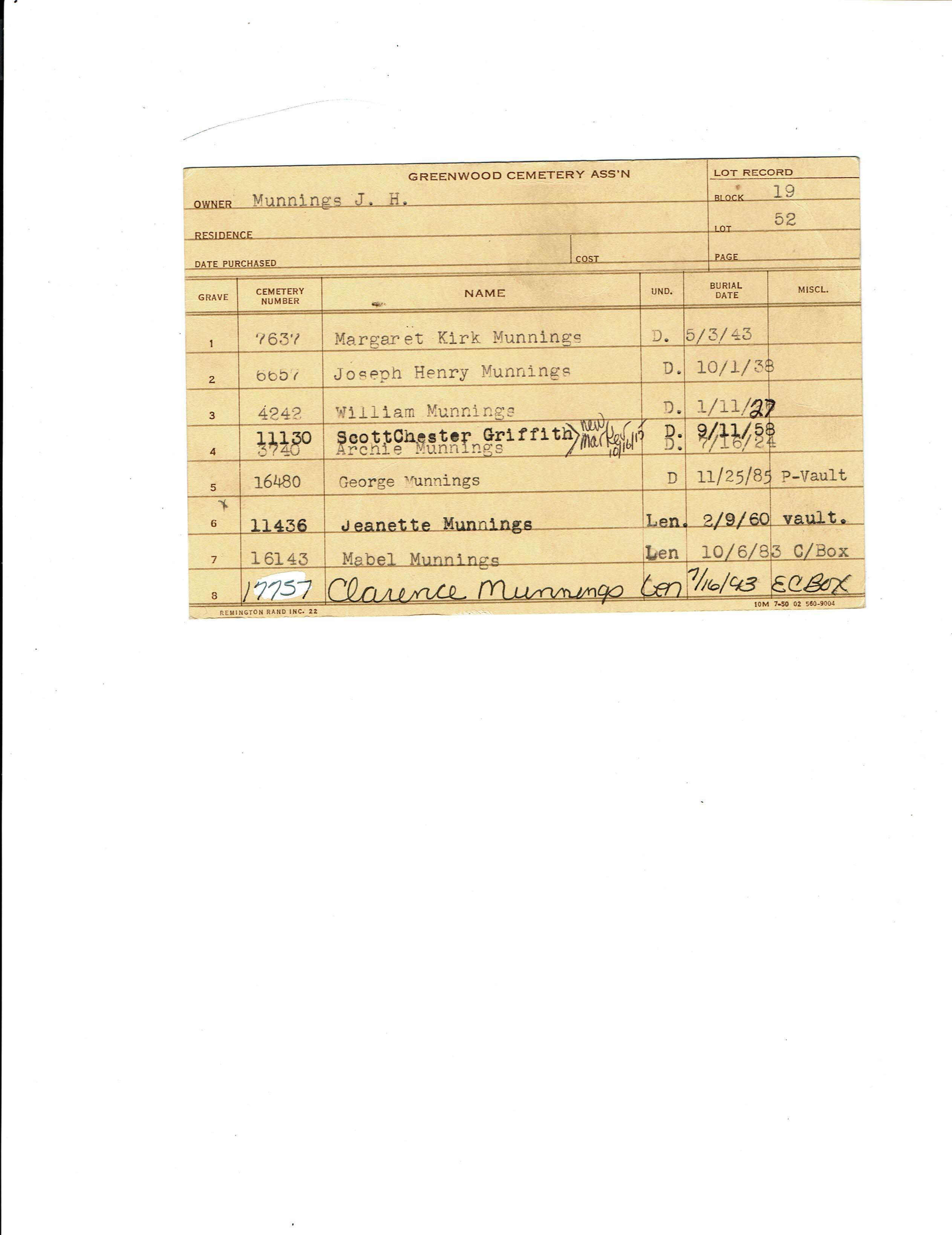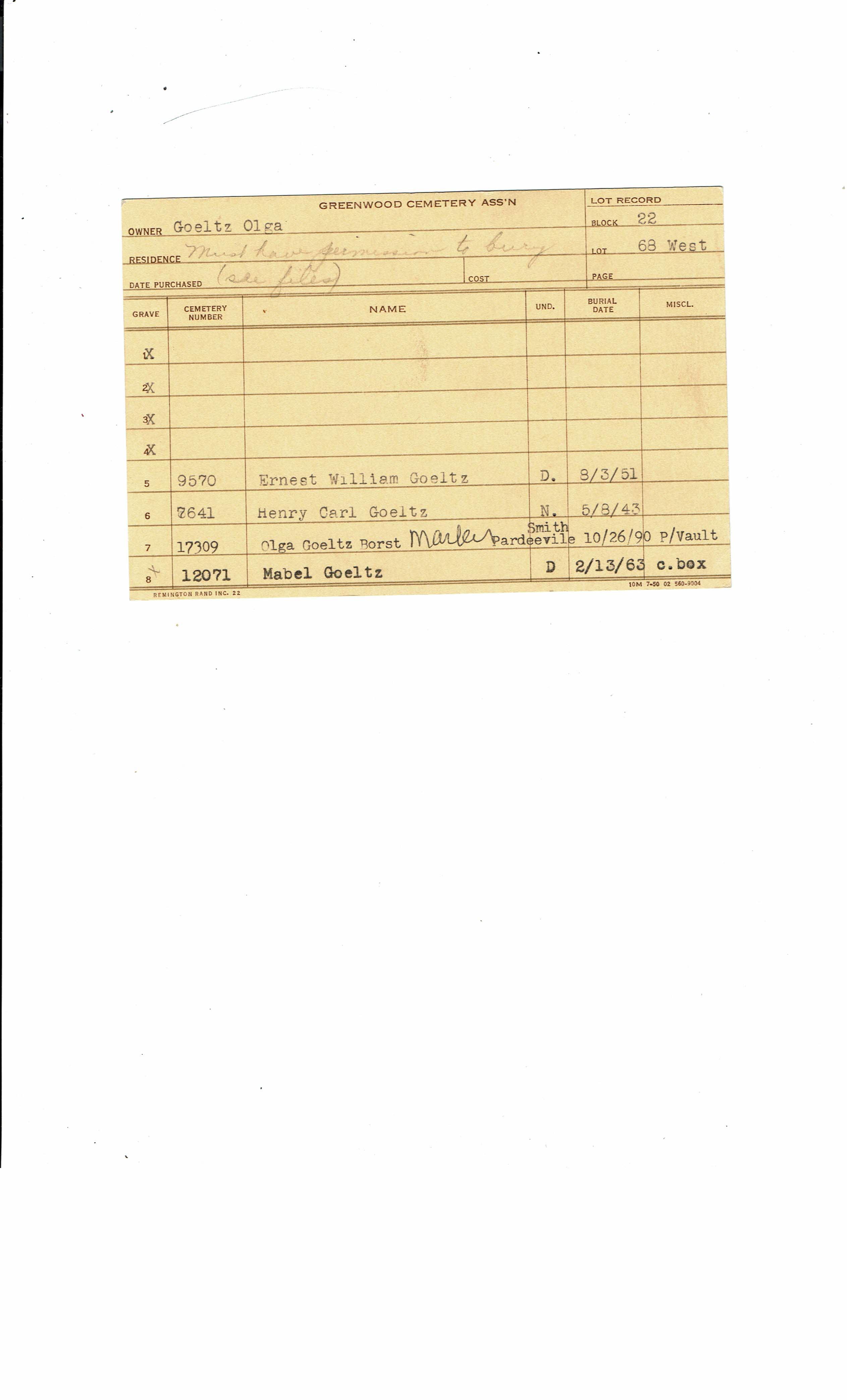 Greenwood Cemetery Association Online Records