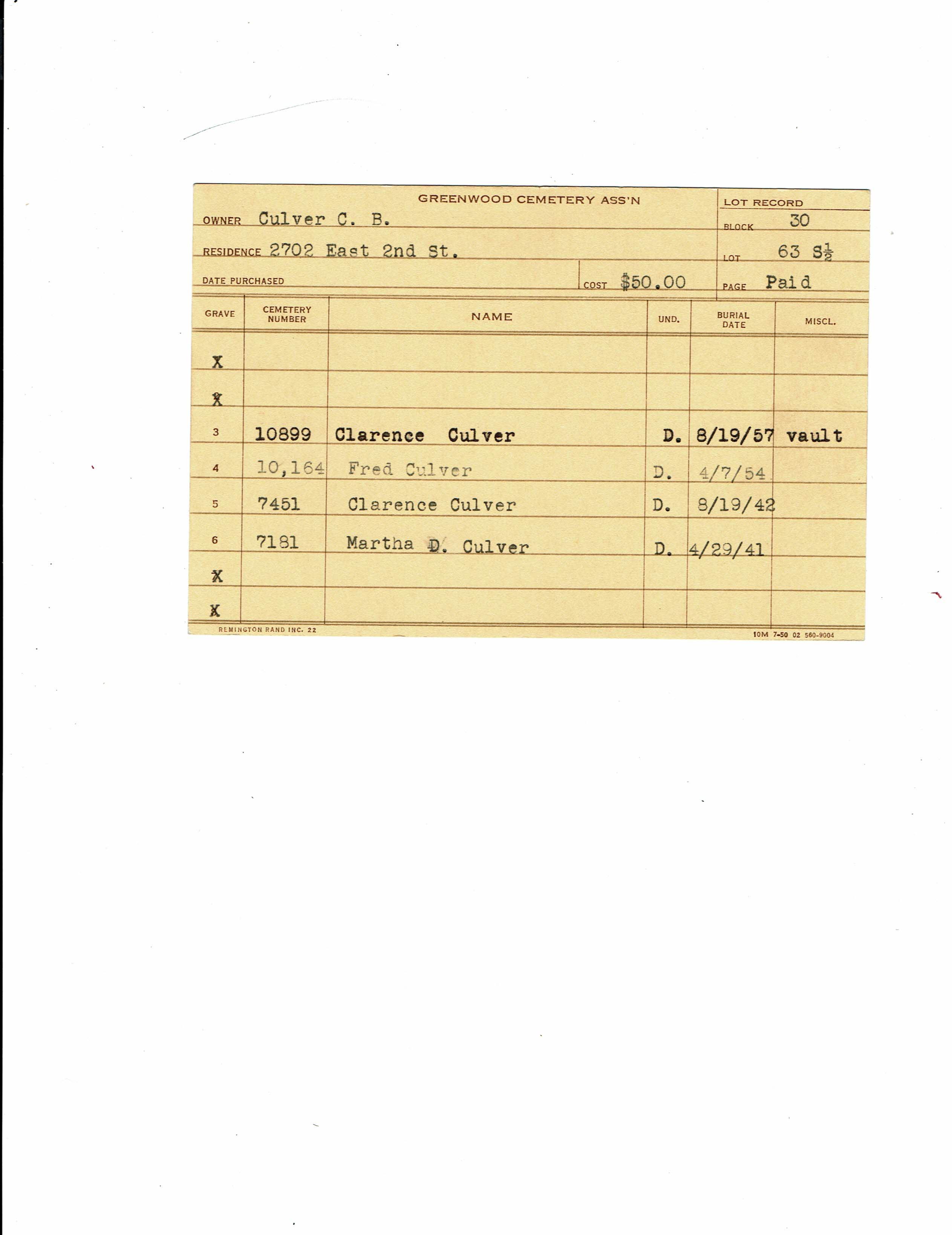 Block 1, Tier 1, Lot 30, Grave 5