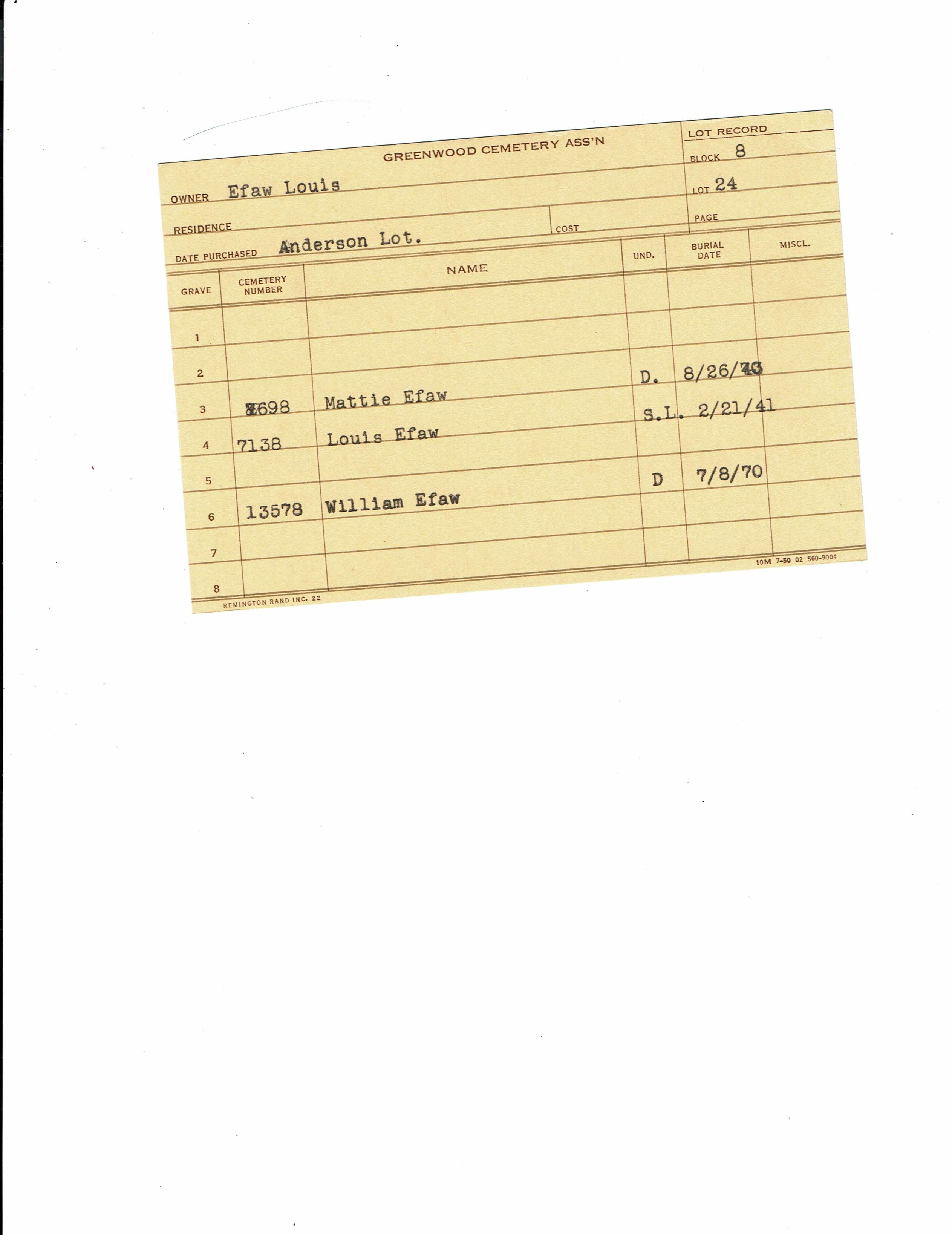 Block 17, Tier 1, Lot 52, Grave 6