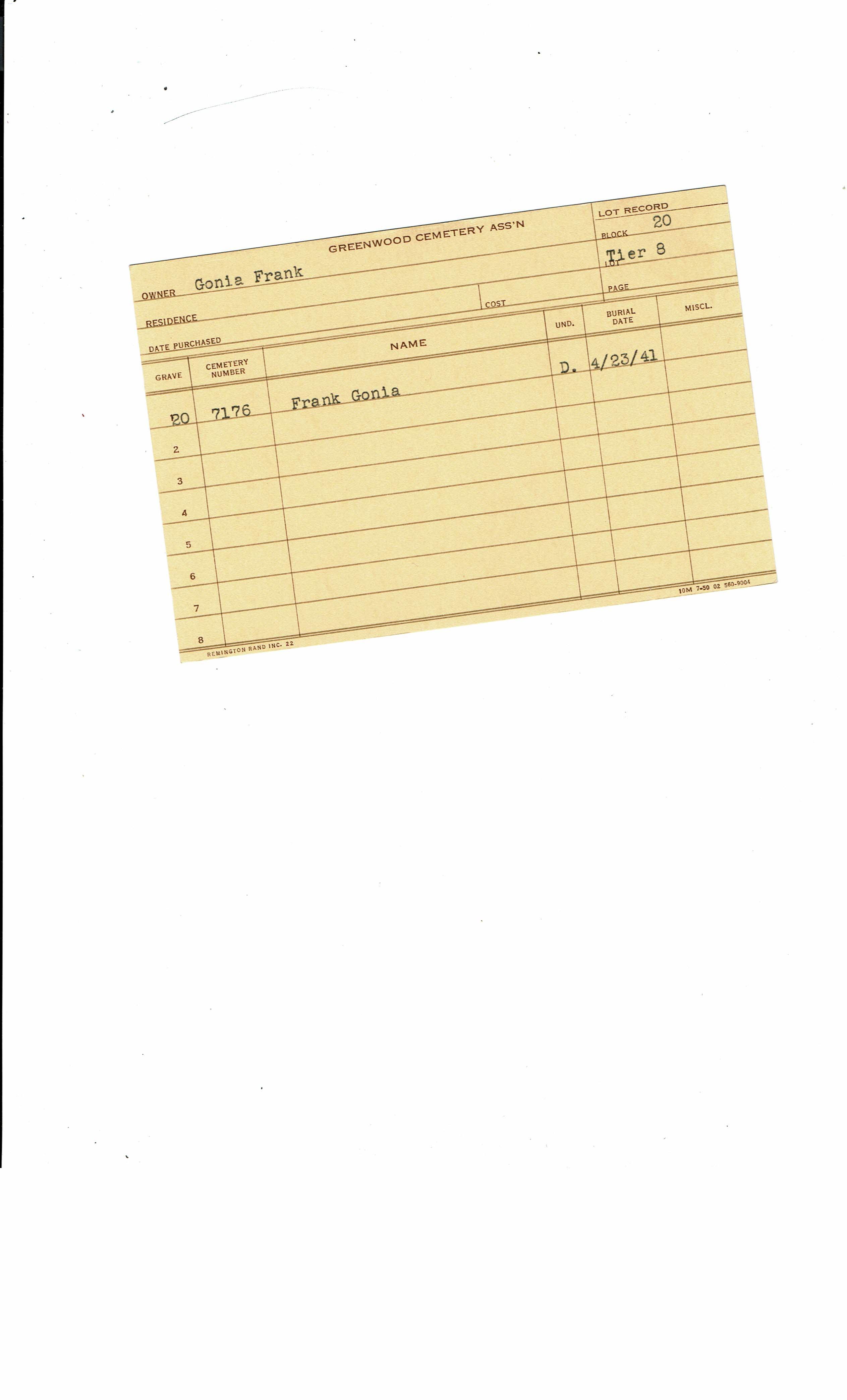 Block 20, Tier 07, Lot 1, Grave 17