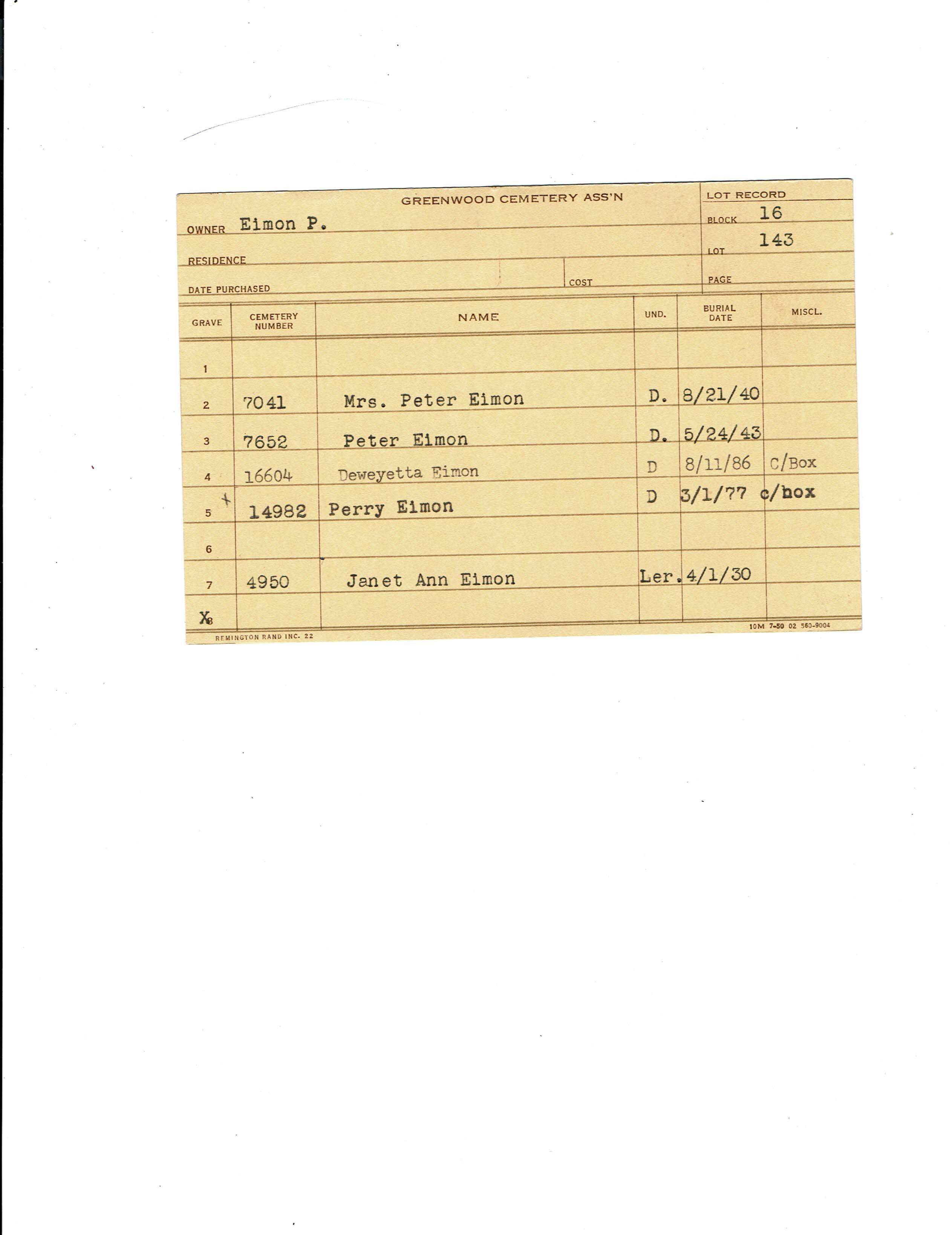 Greenwood Cemetery Association Online Records