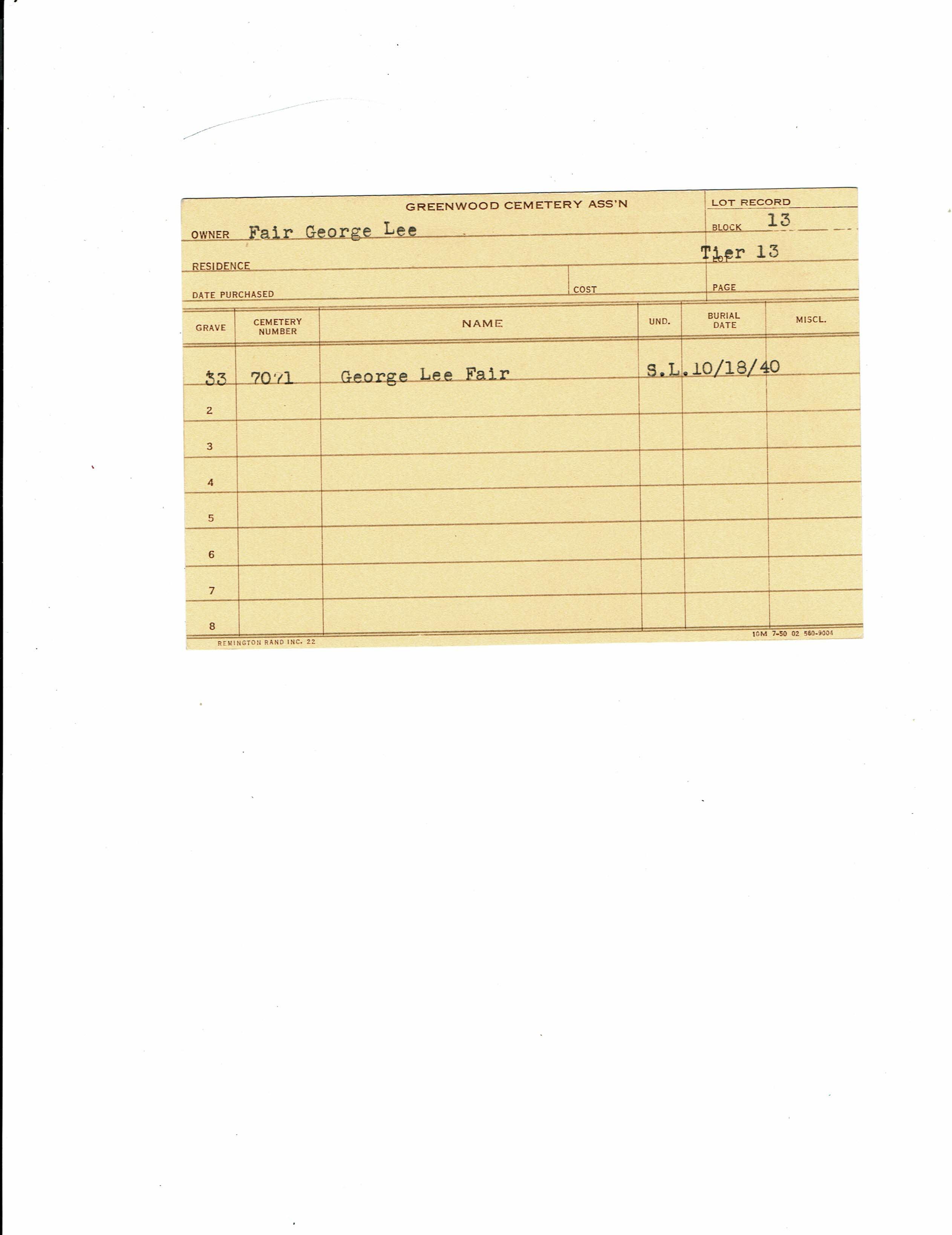 Block 29, Tier 1, Lot 81, Grave 1