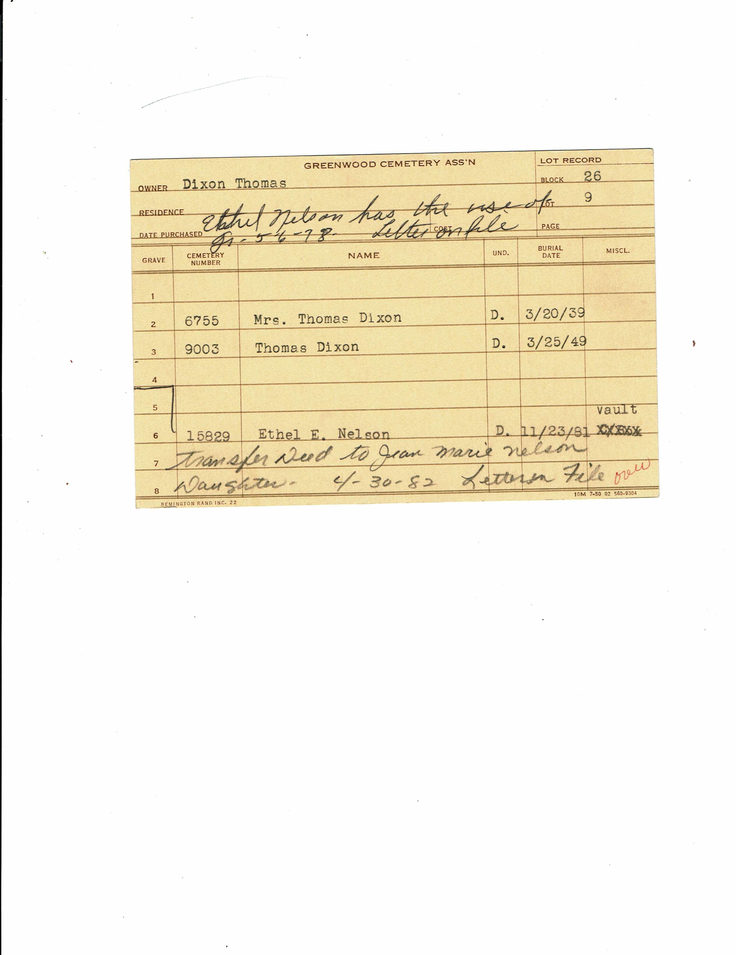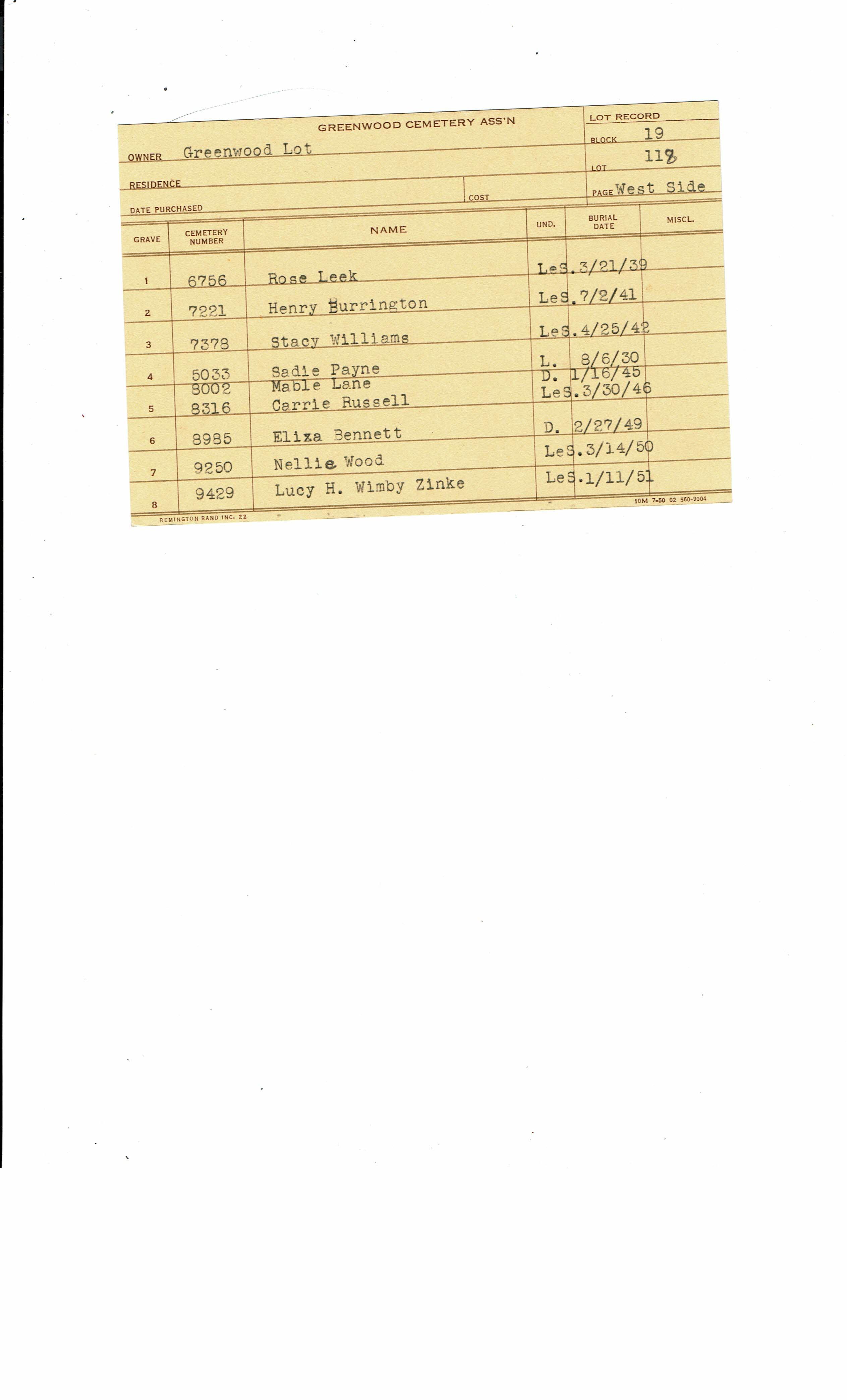 Greenwood Cemetery Association Online Records