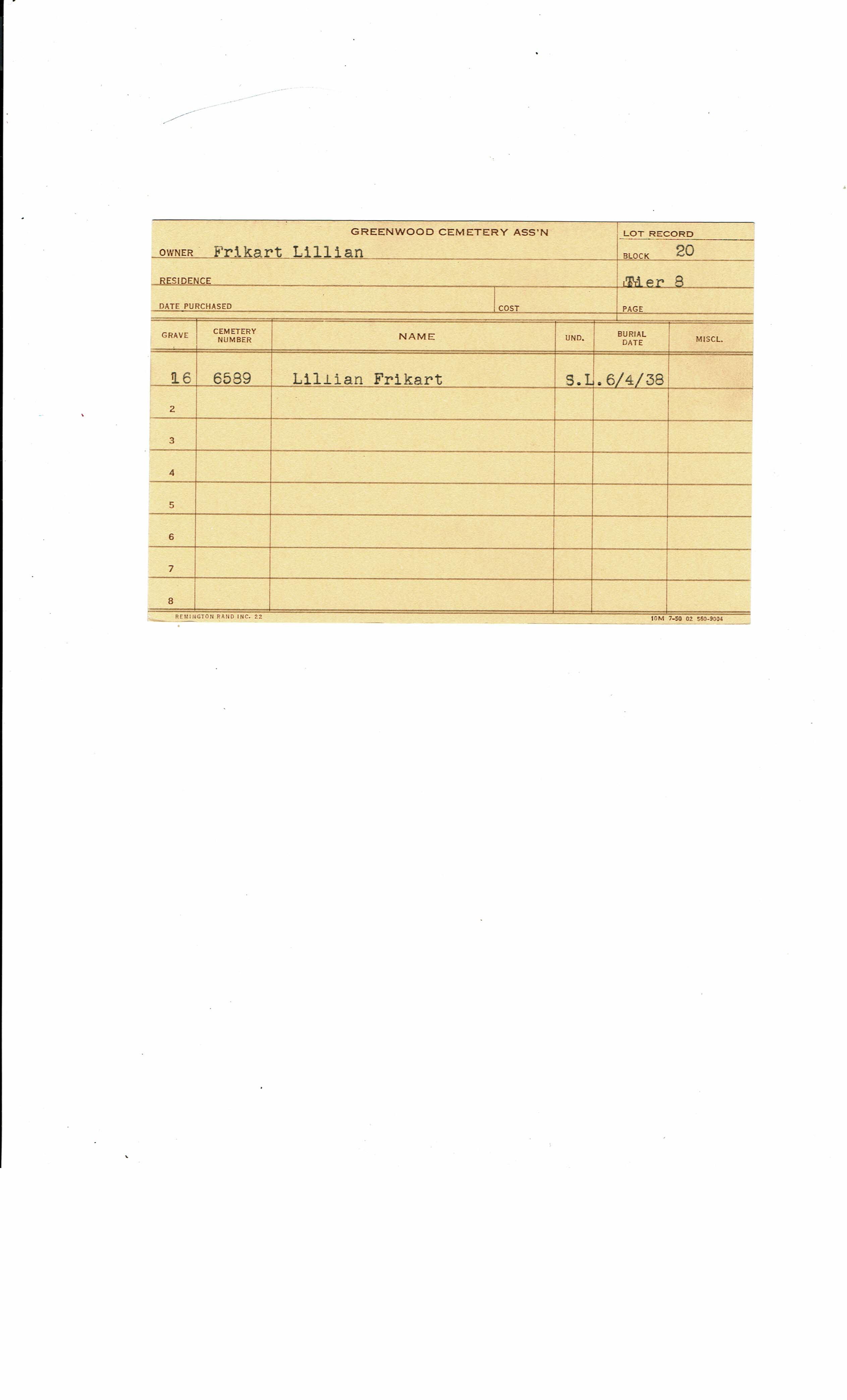 Block 20, Tier 16 1/2, Lot 1, Grave 10