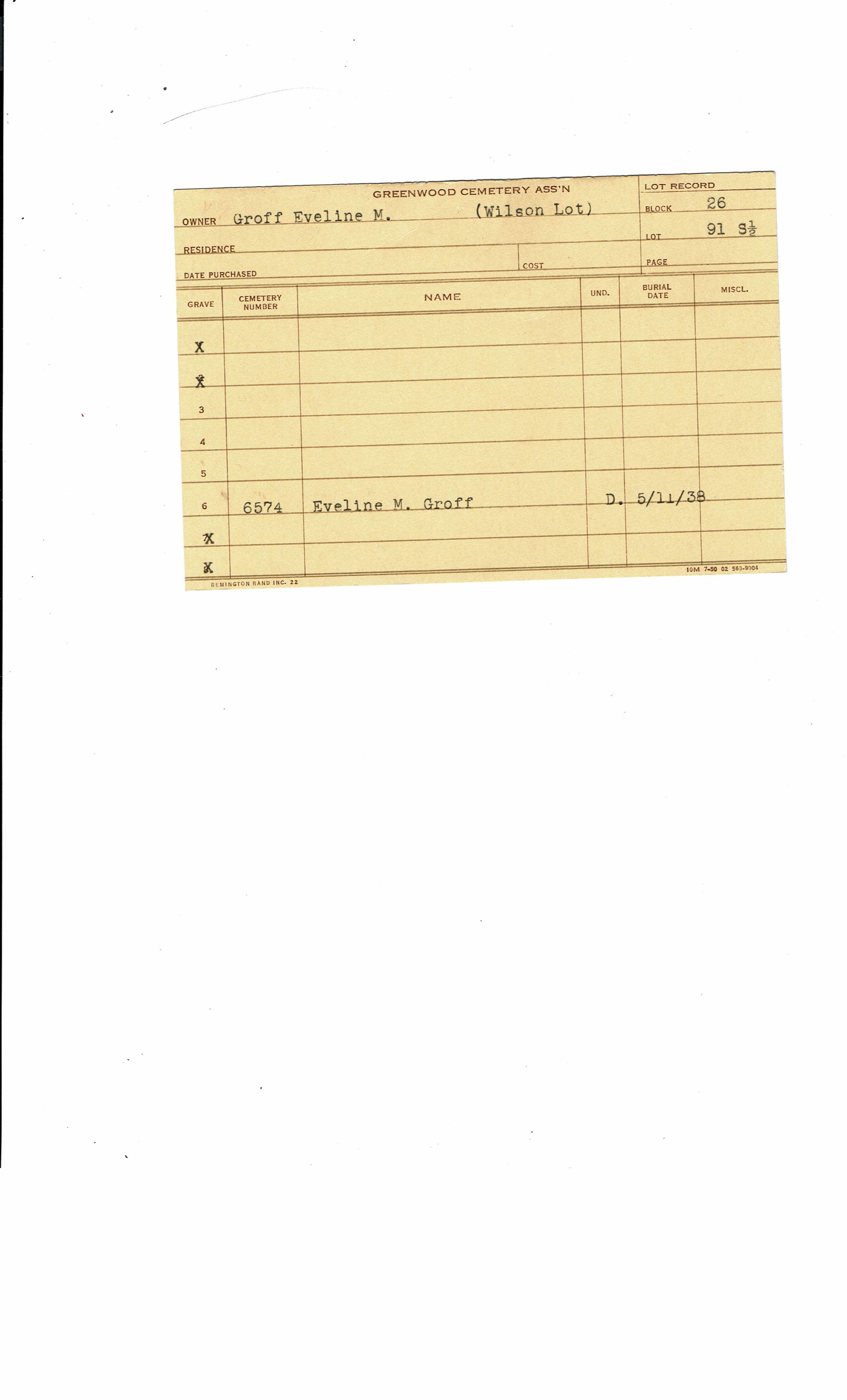 Block 26, Tier 1, Lot 085, Grave 6