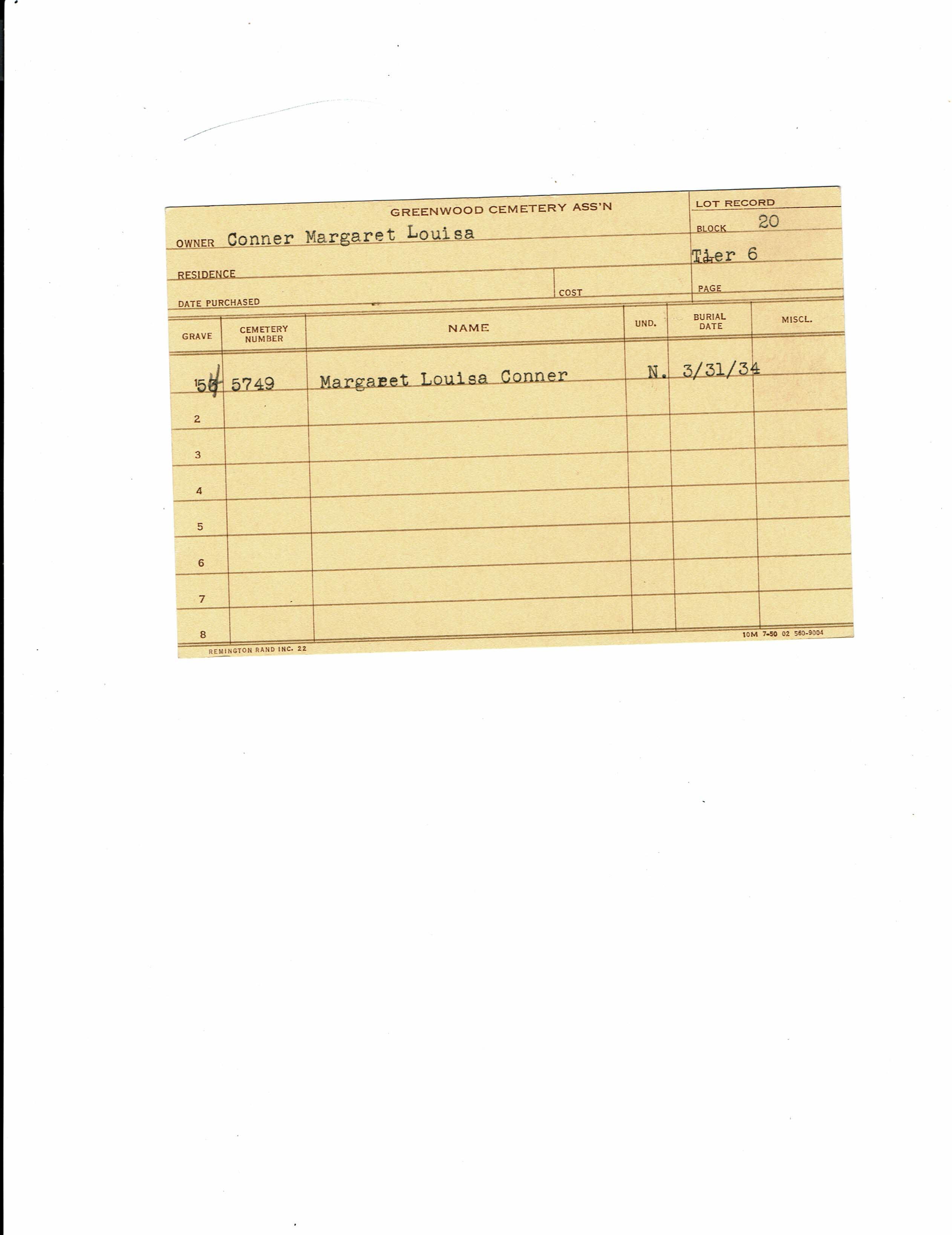 Block 20, Tier 15, Lot 1, Grave 14