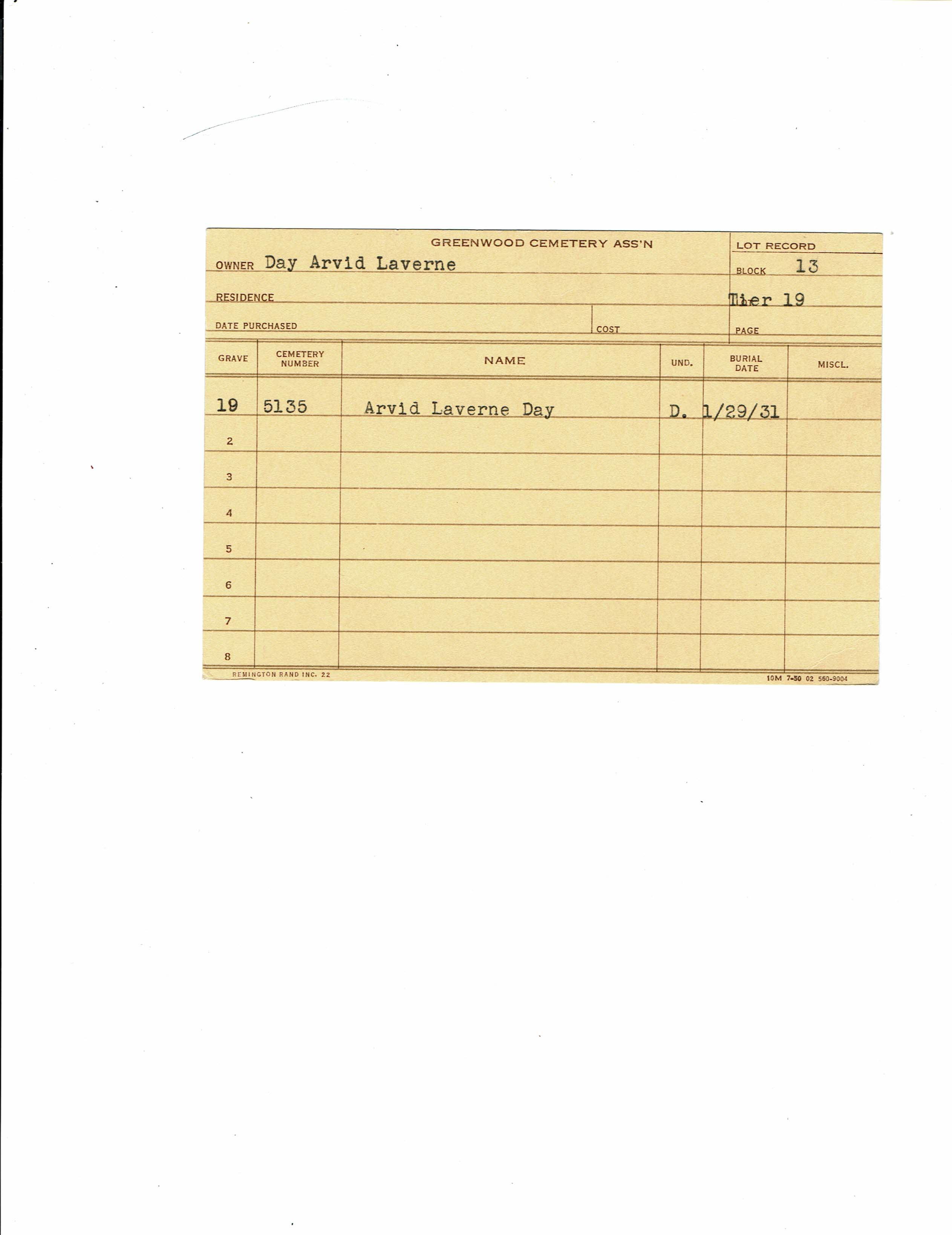 Block 20, Tier 13, Lot 1, Grave 72