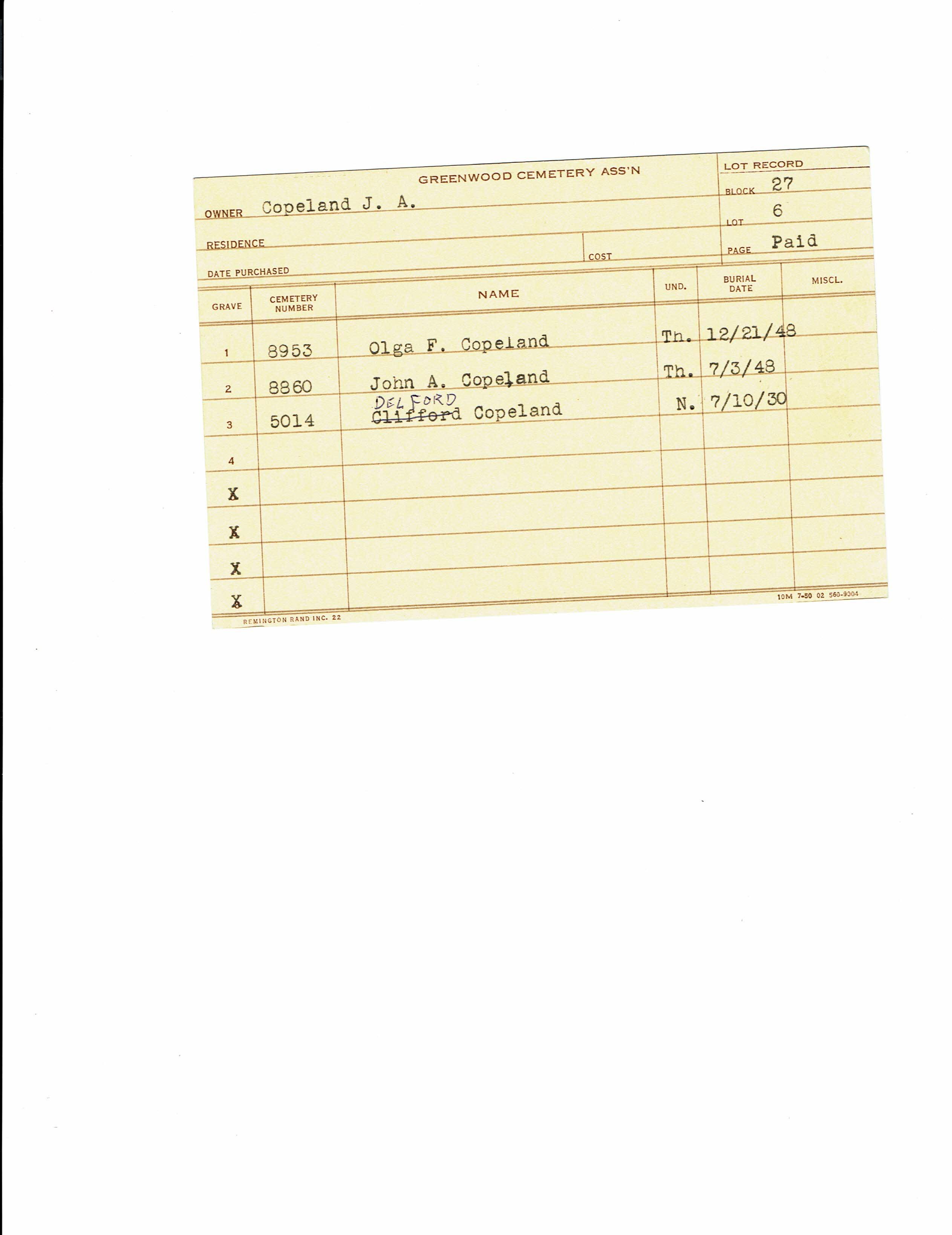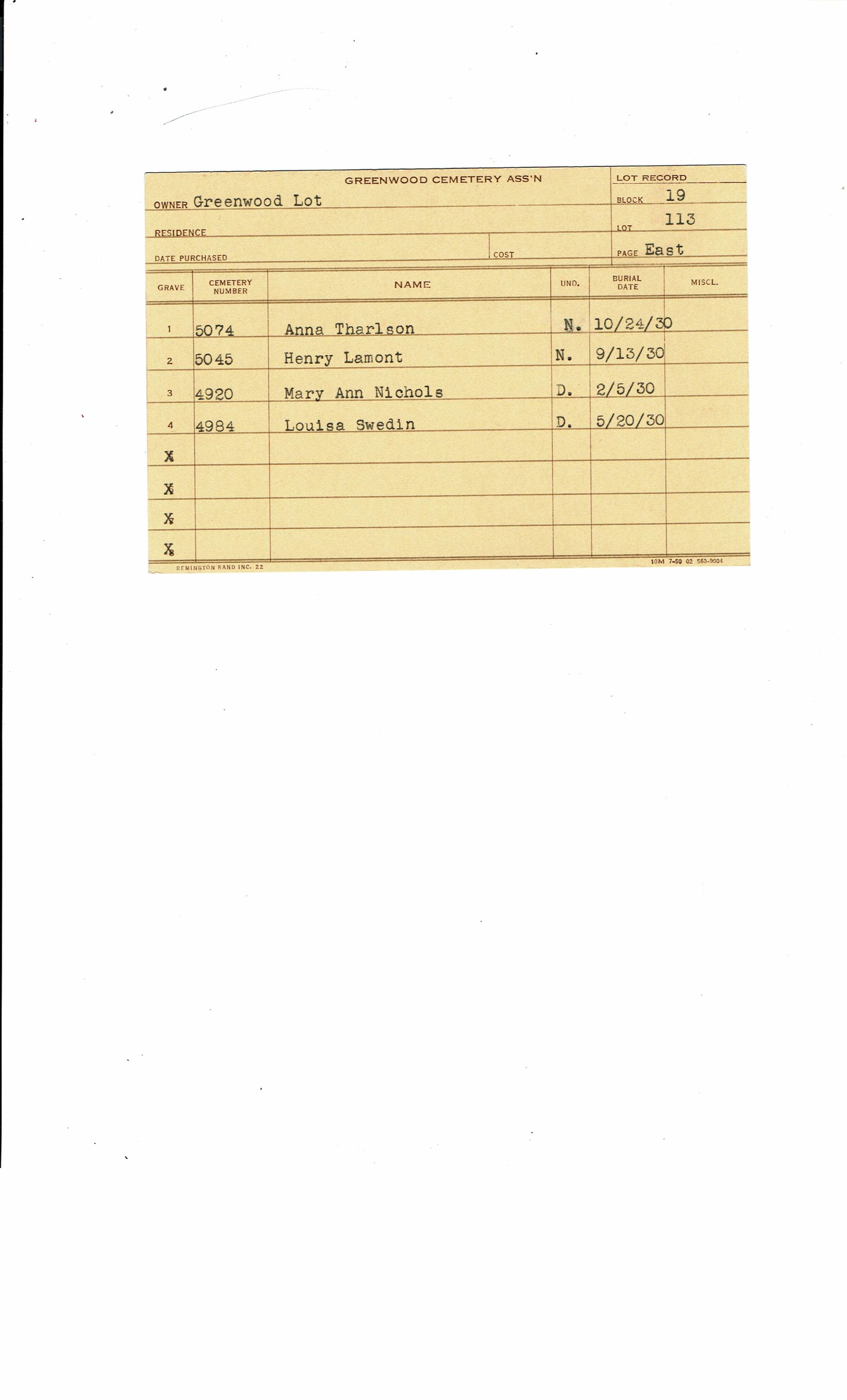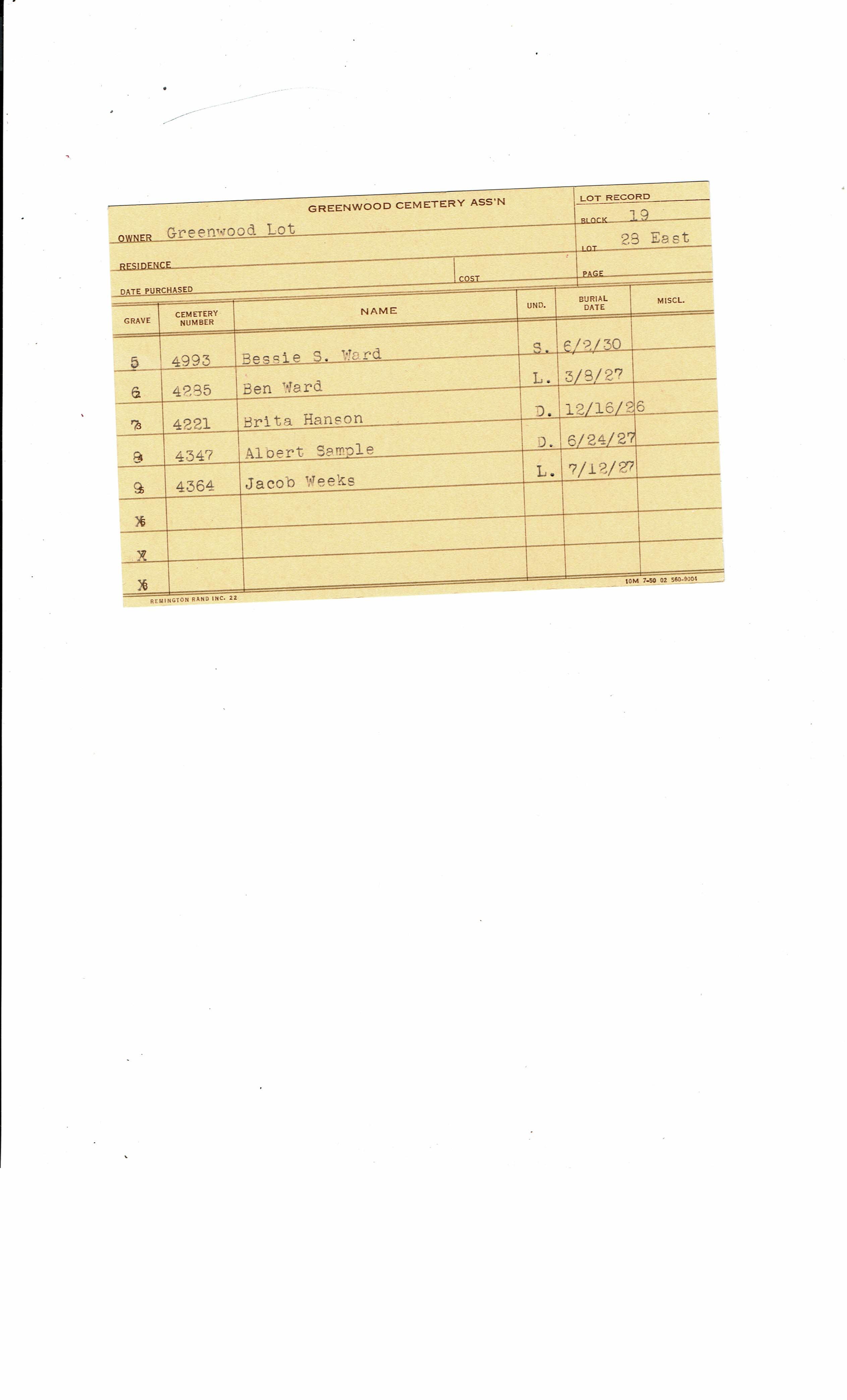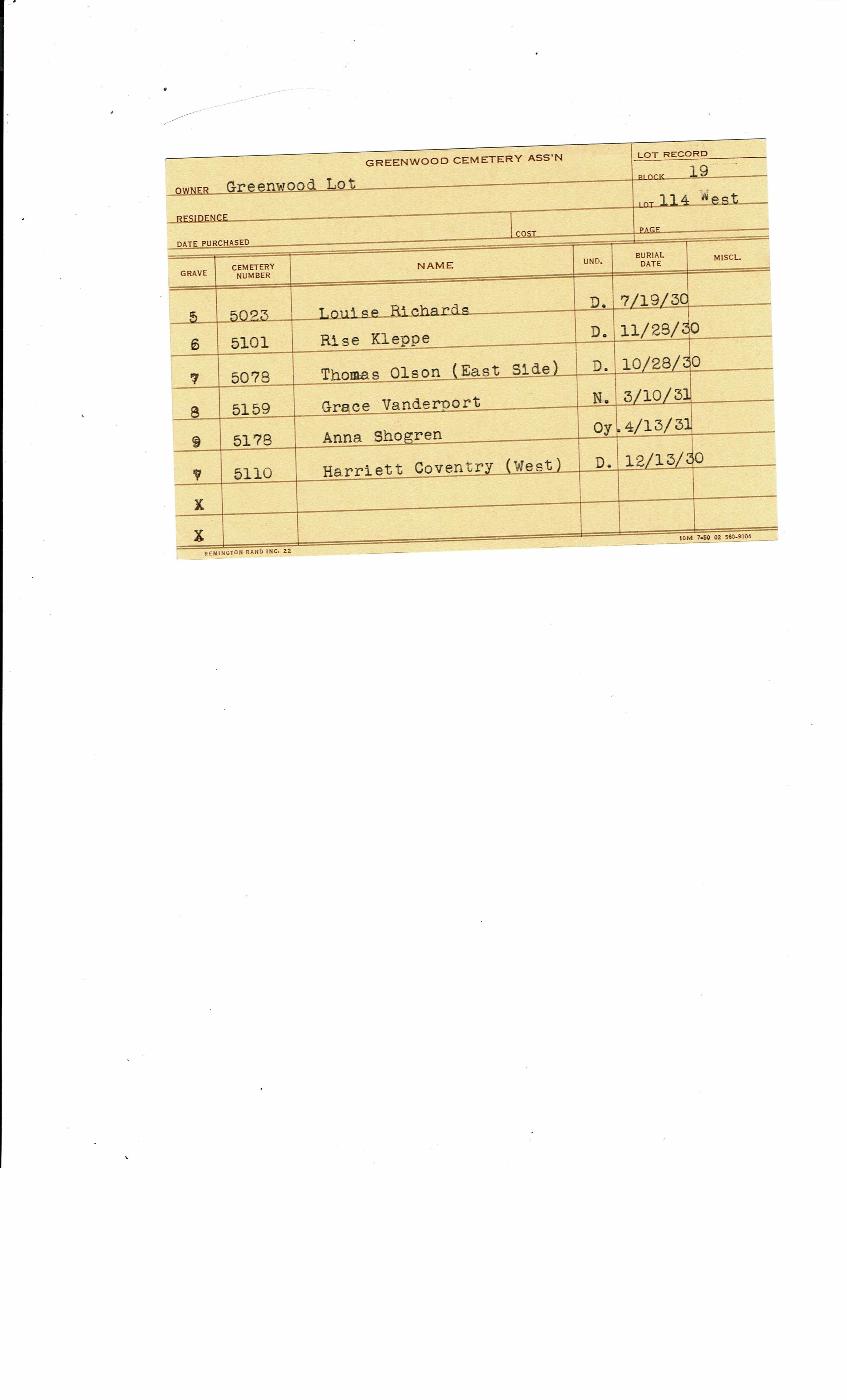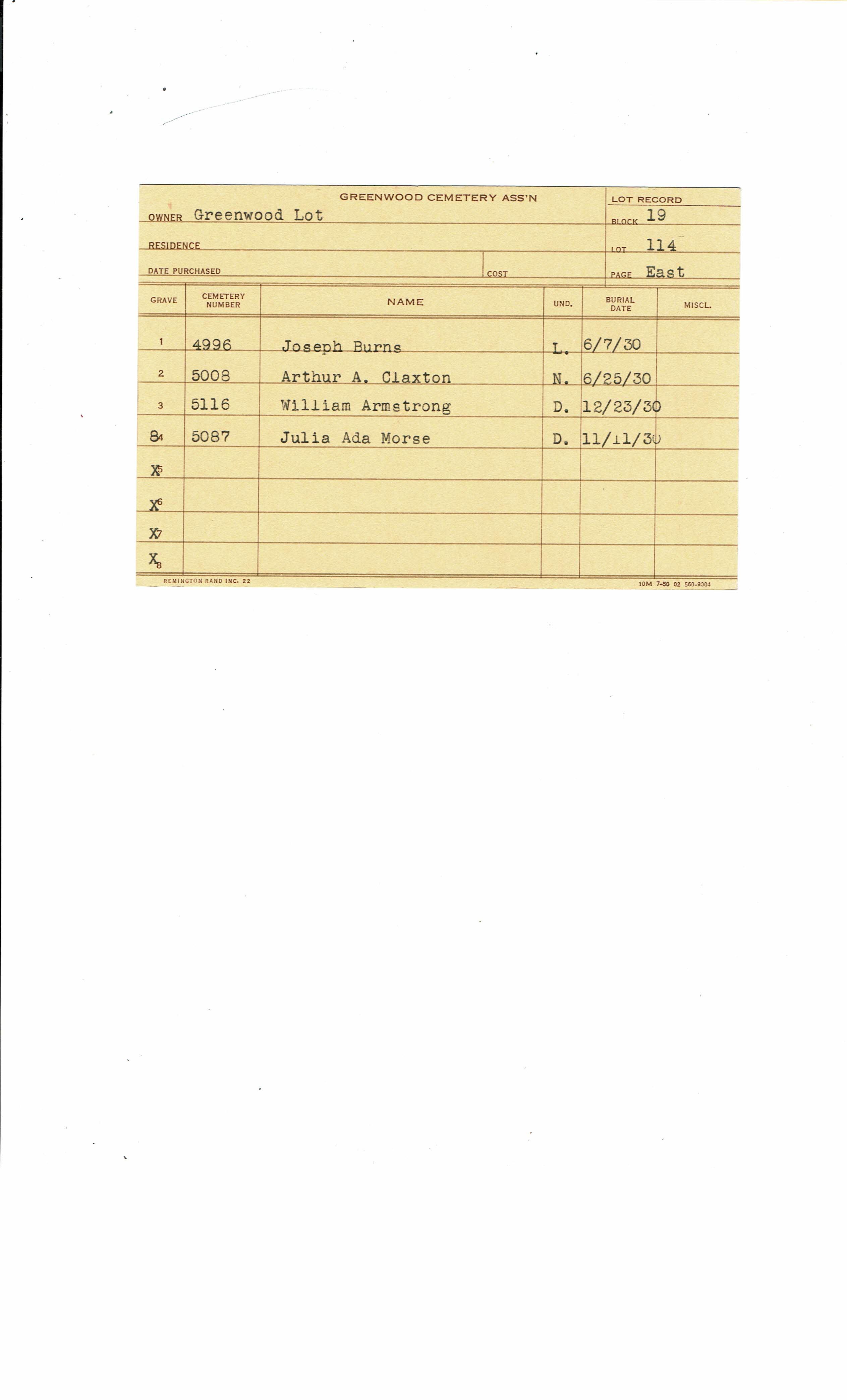 Greenwood Cemetery Association Online Records