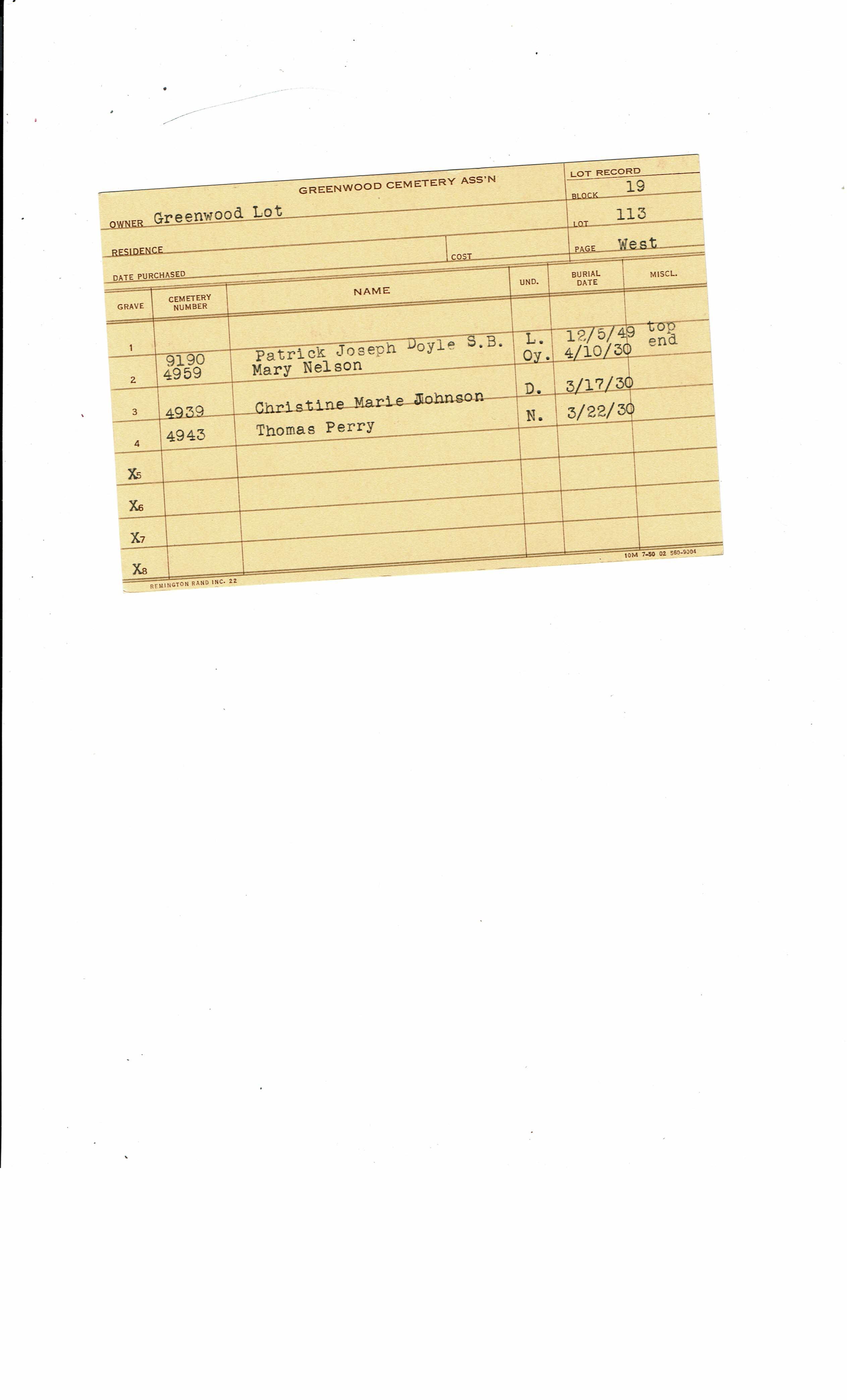 Block 19, Tier 1, Lot 069, Grave 8