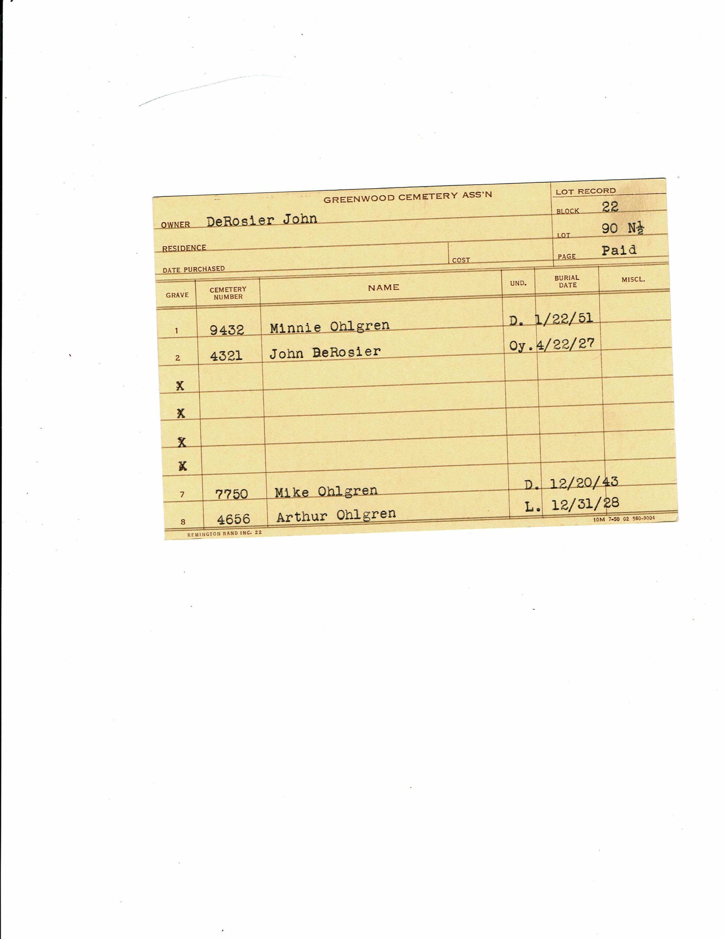 Block 22, Tier 1, Lot 113, Grave 2