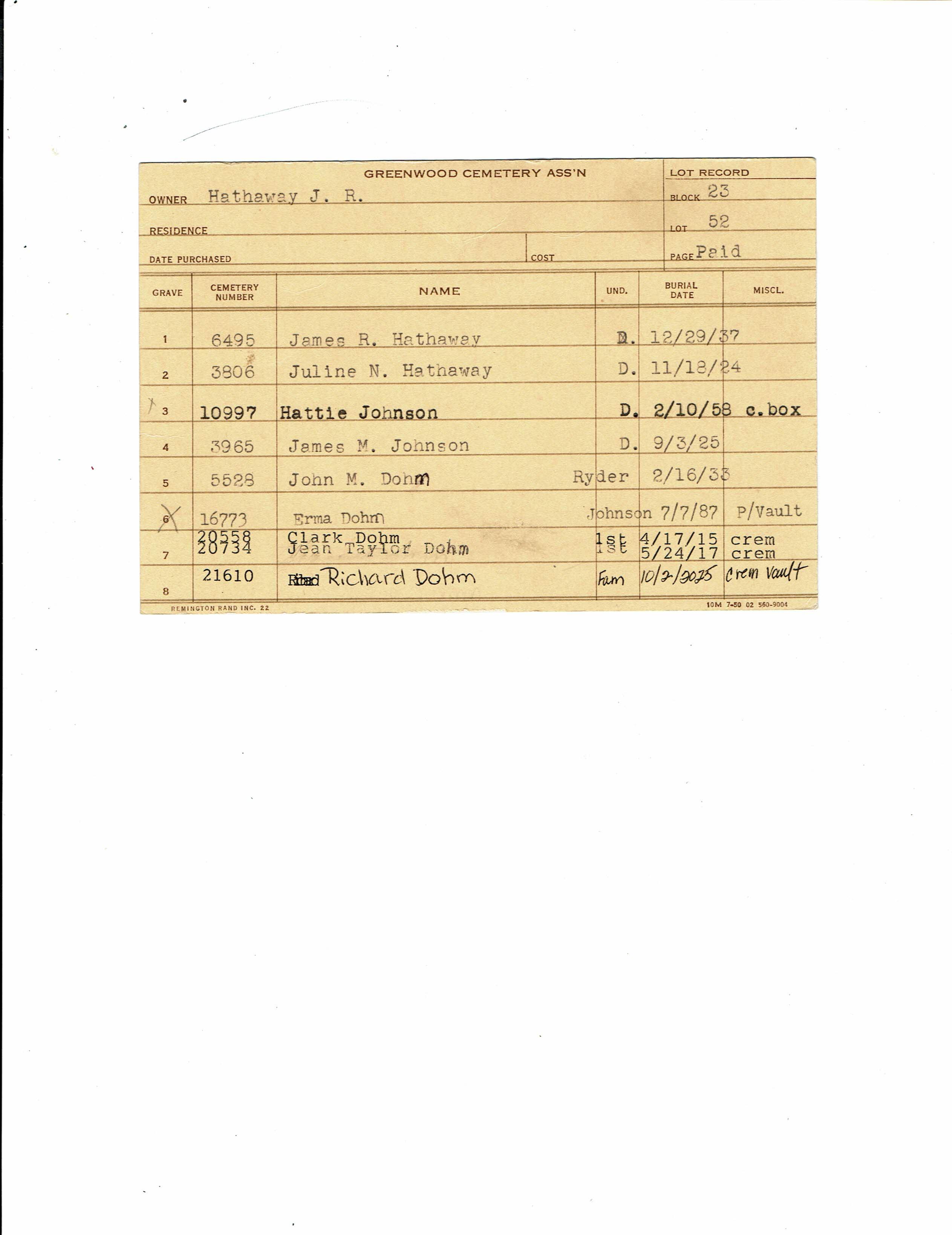 Greenwood Cemetery Association Online Records
