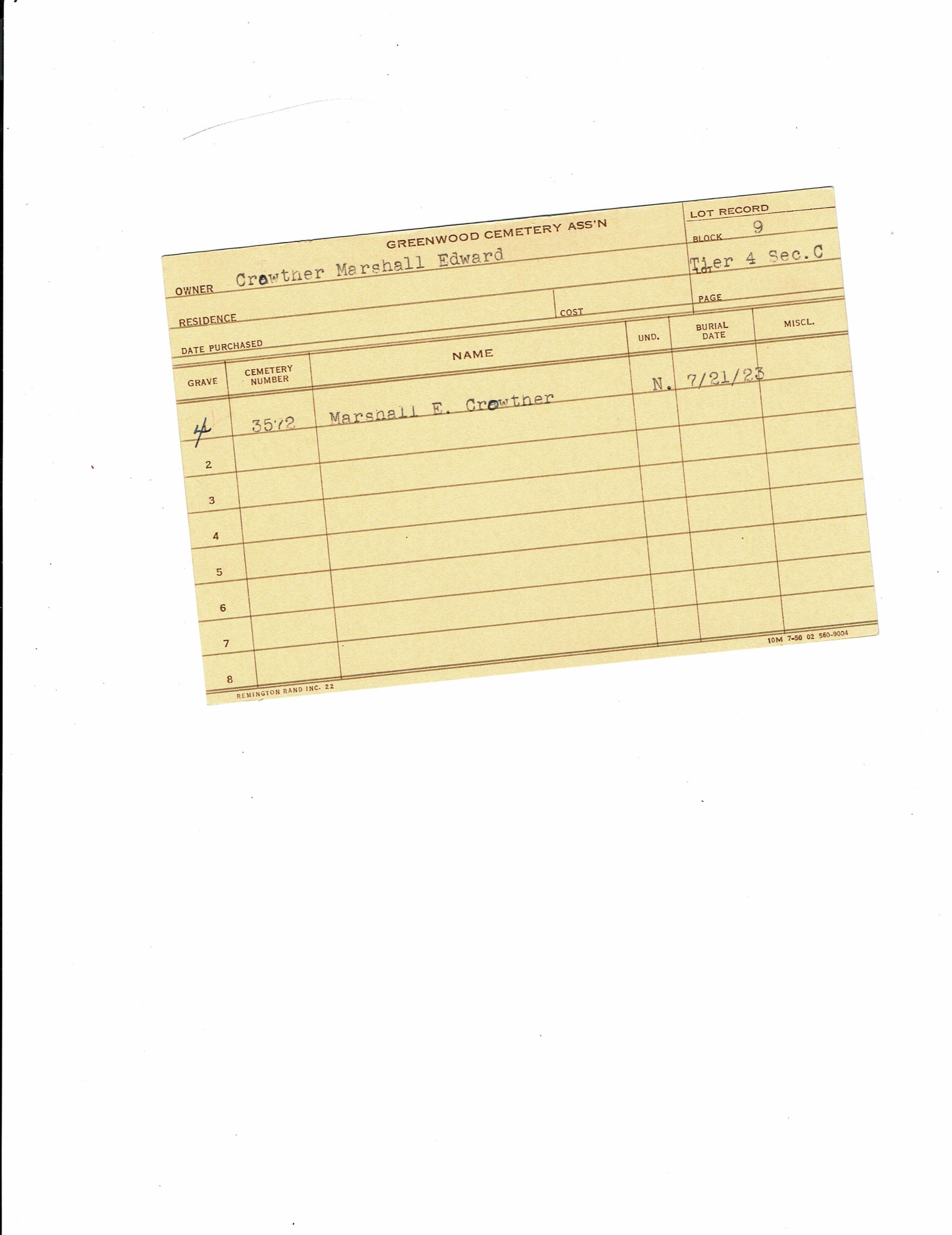 Block 22, Tier 1, Lot 057, Grave 4